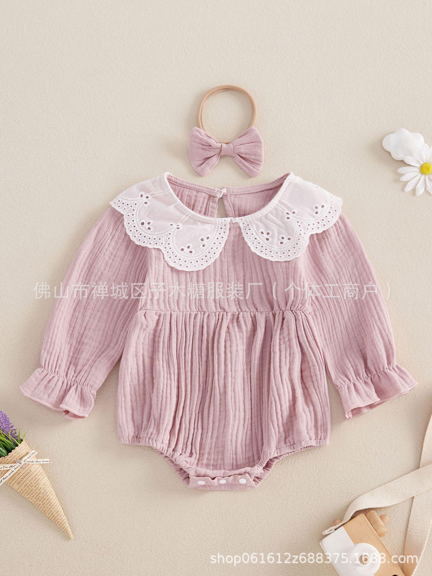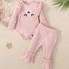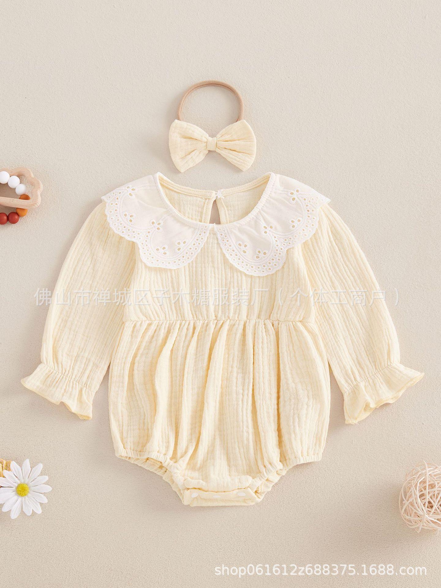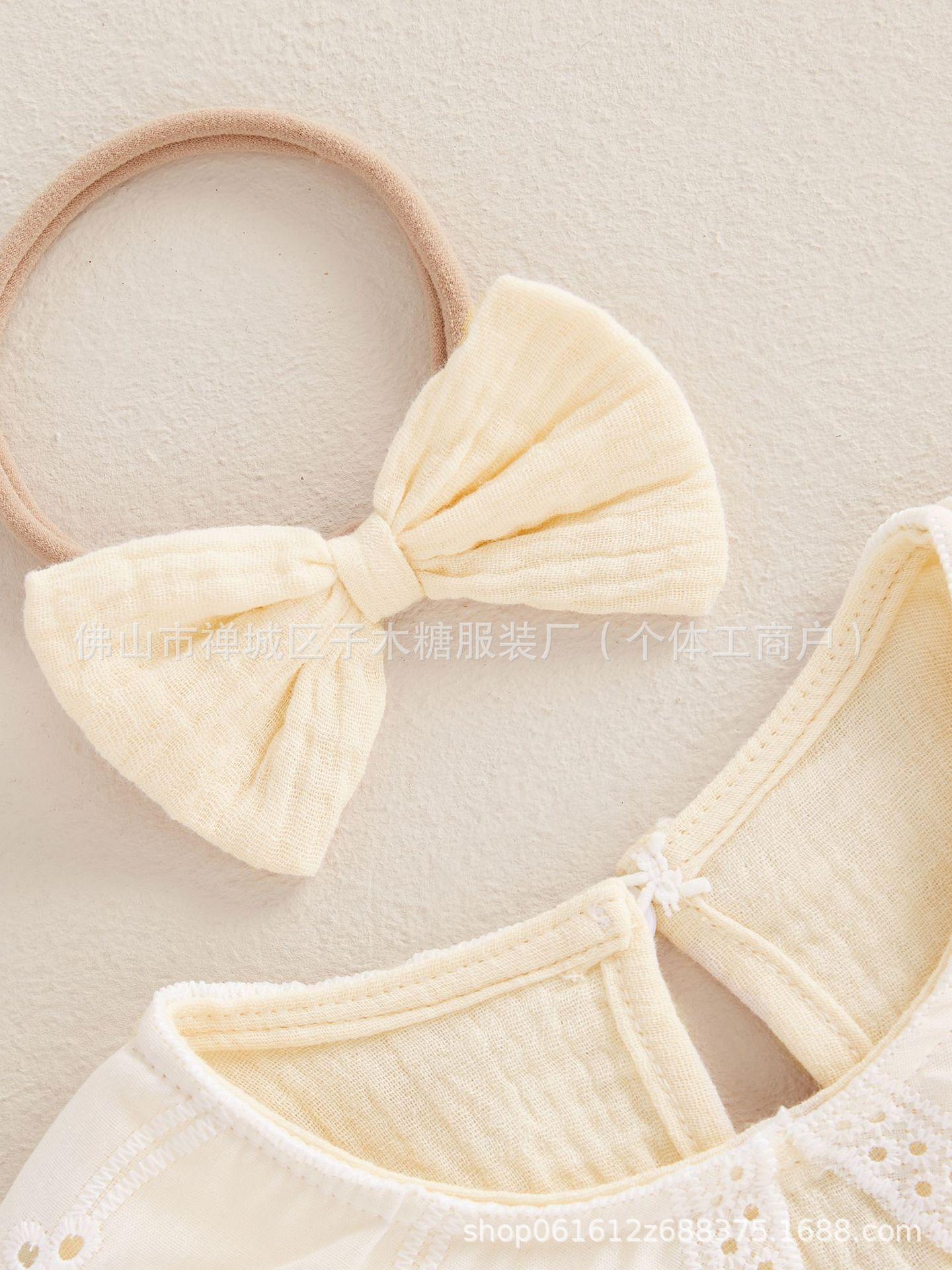 Conjunto de dos piezas transfronterizo para bebé niña con encaje, manga trompeta, versátil, anillo para el cabello de liebre