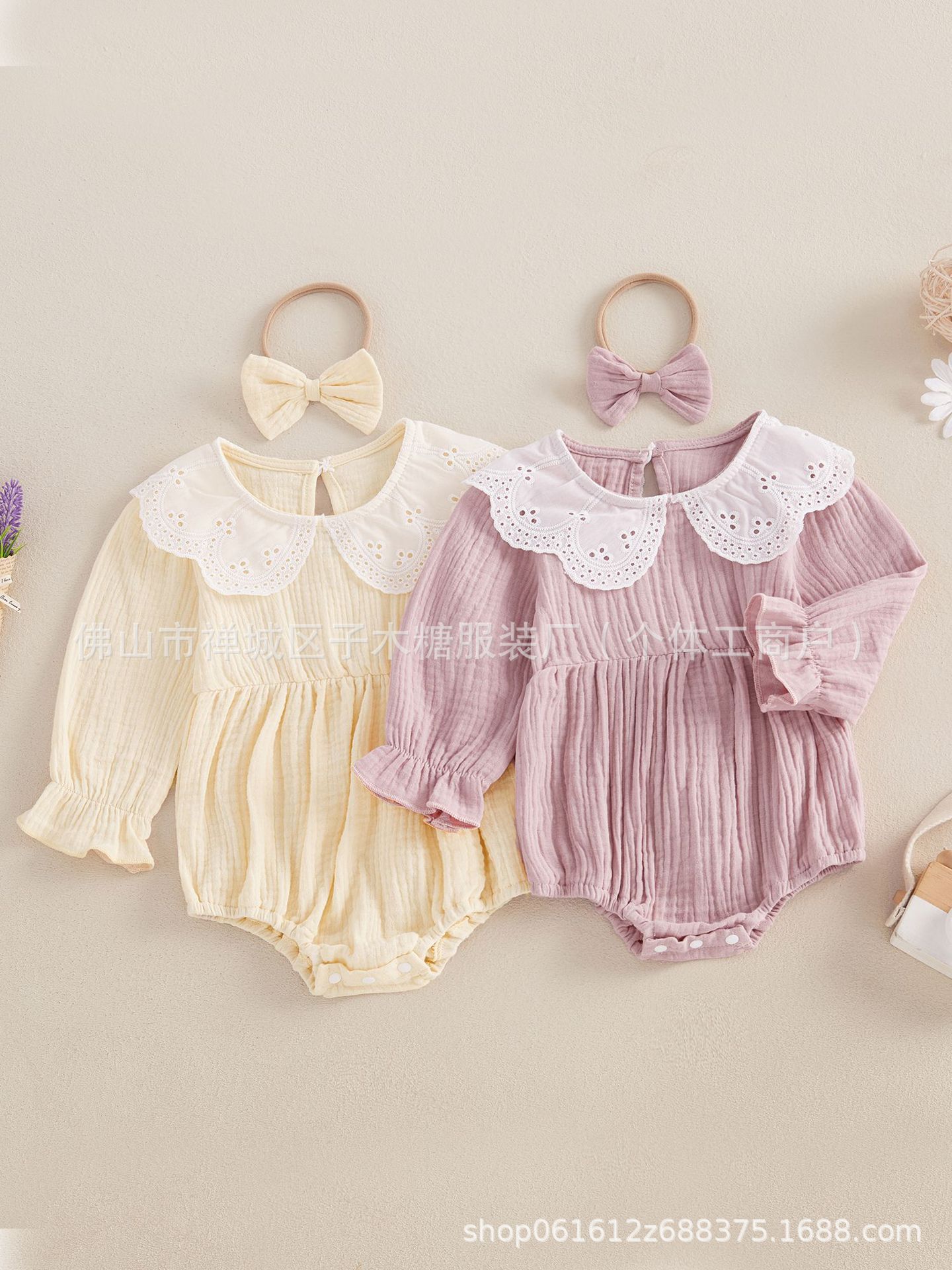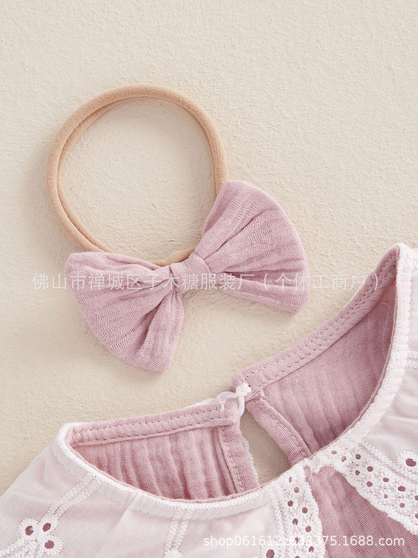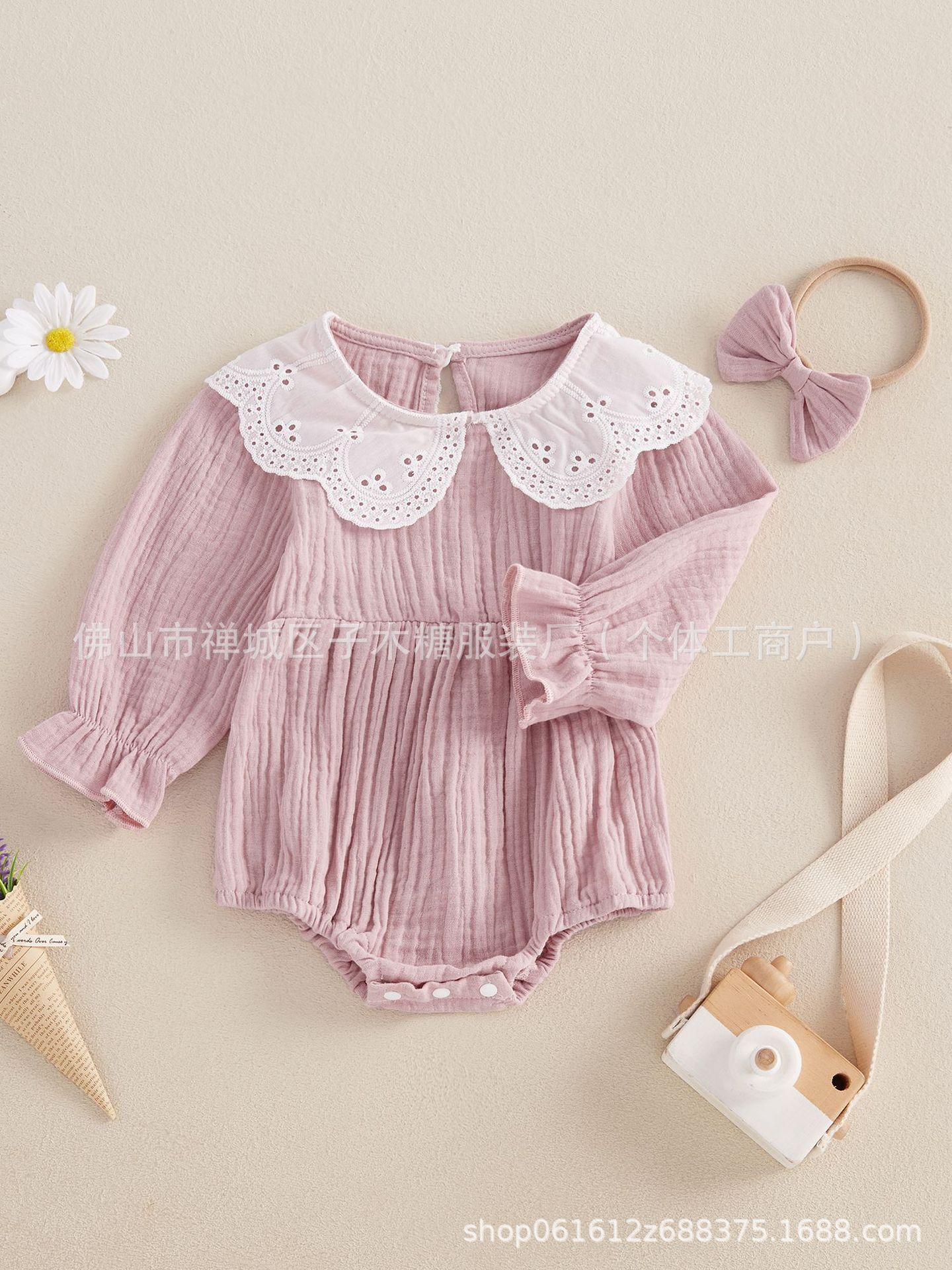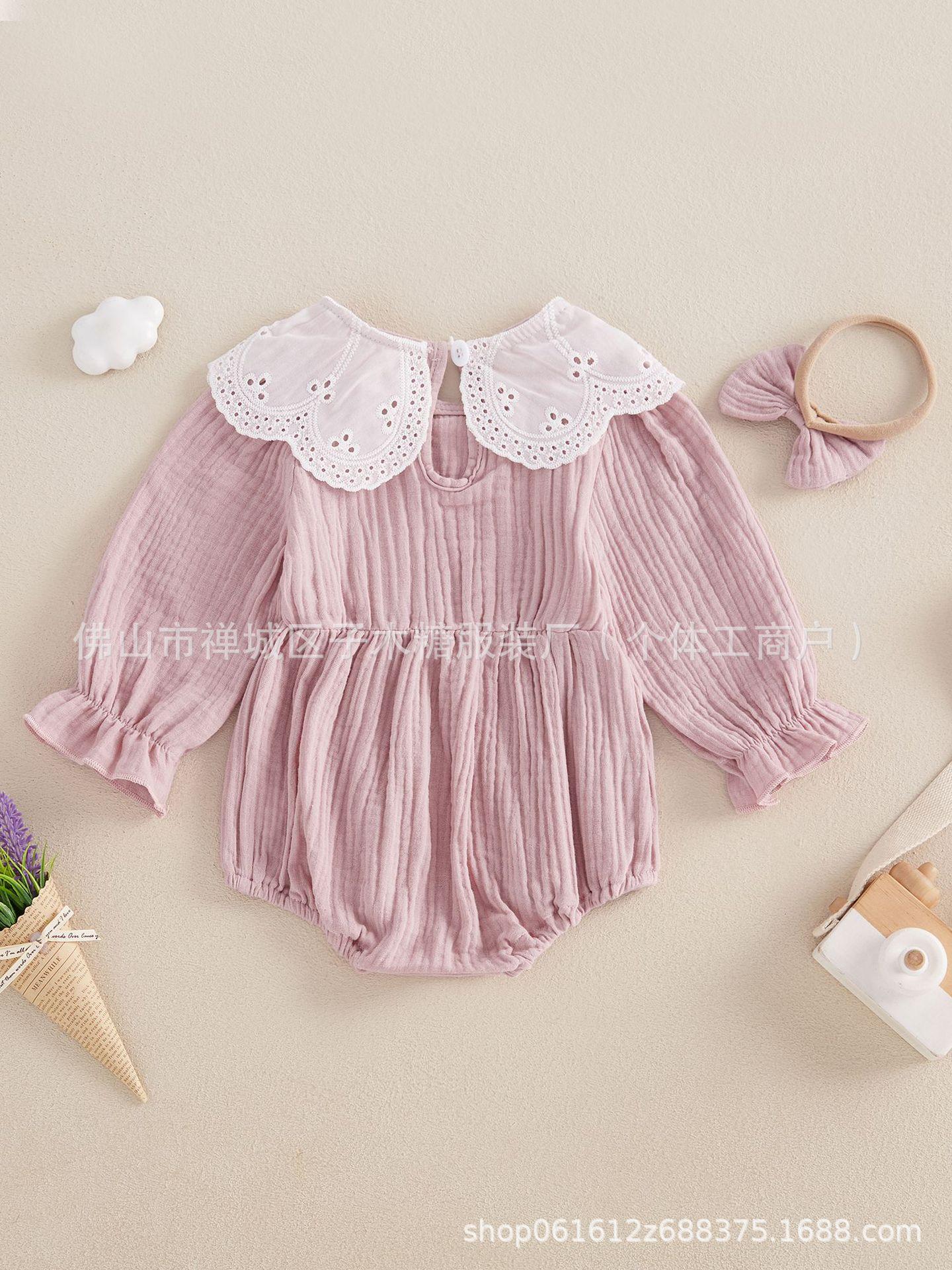 Conjunto de dos piezas transfronterizo para bebé niña con encaje, manga trompeta, versátil, anillo para el cabello de liebre