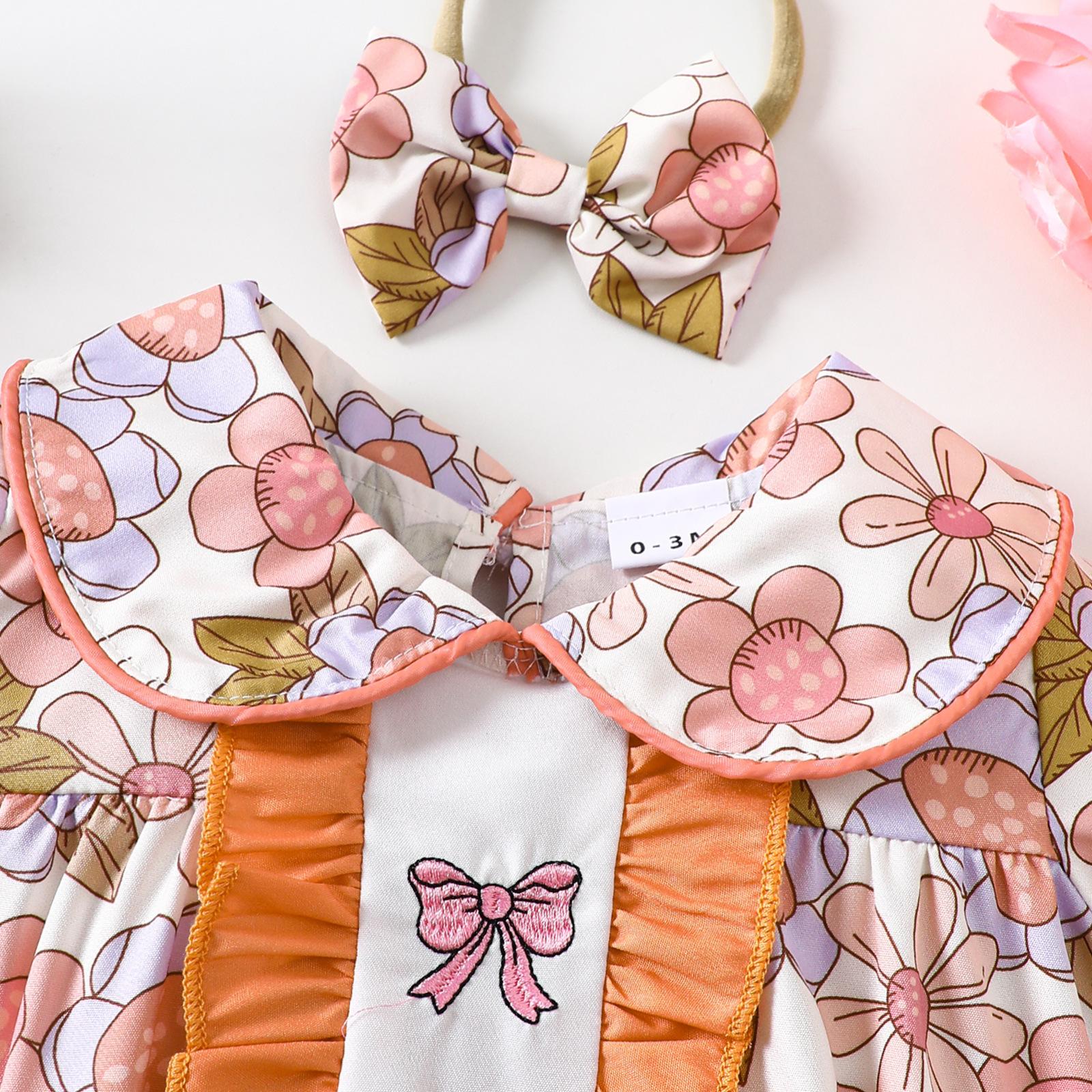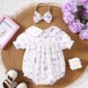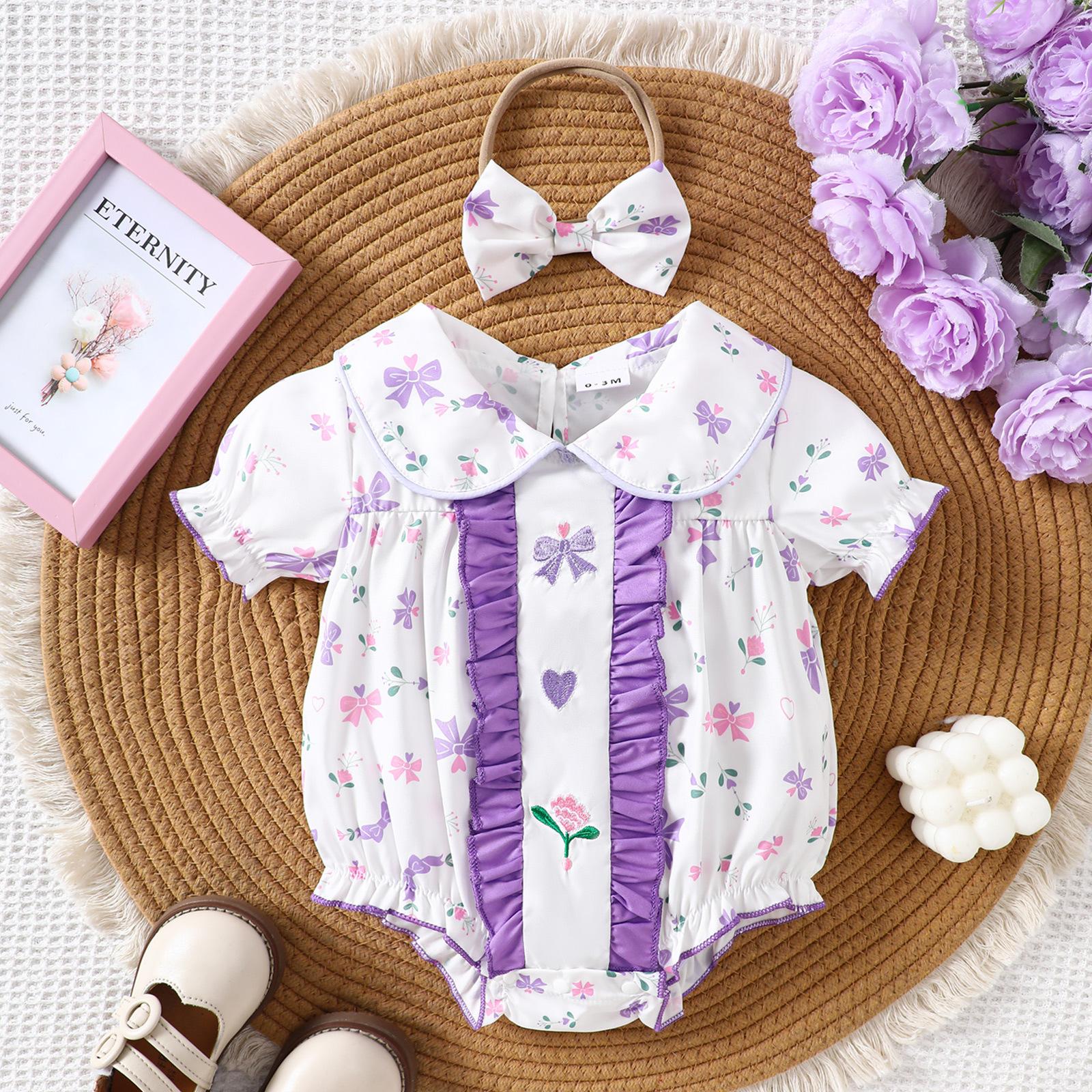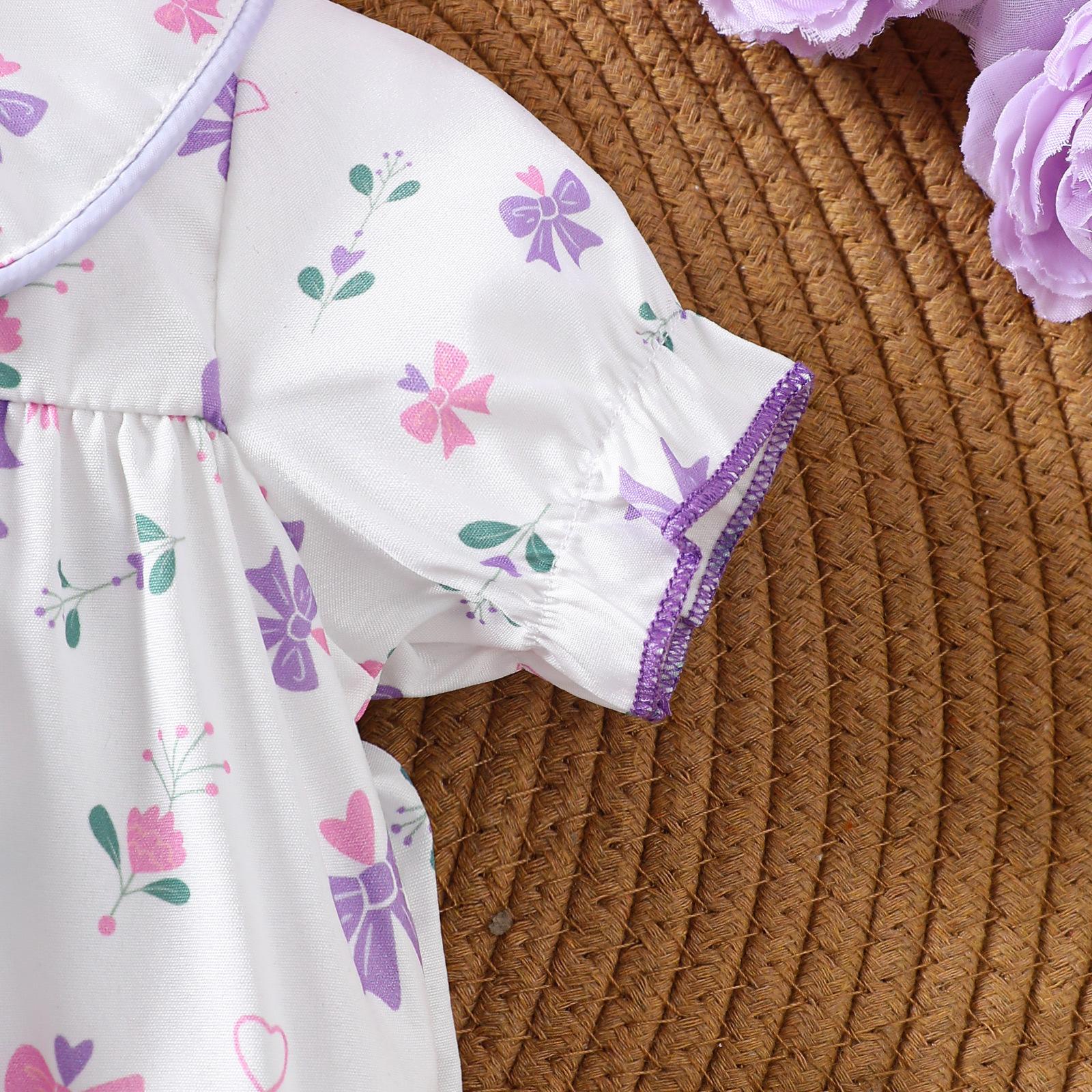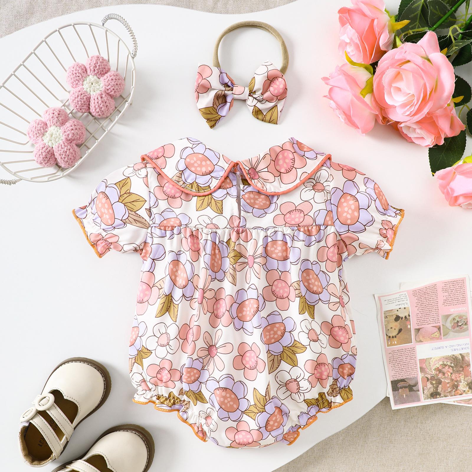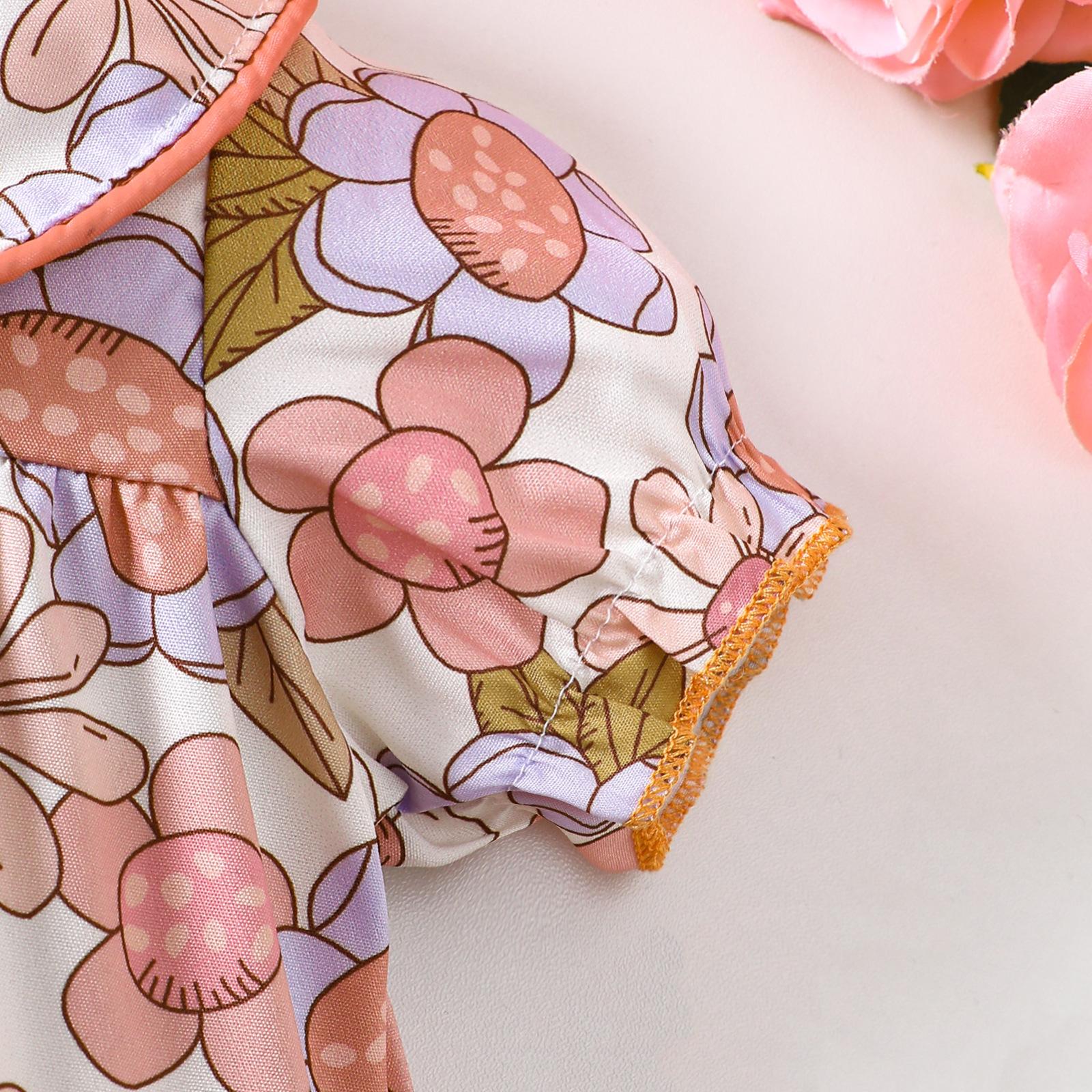 2025 Verano Nuevo Mujer Bebé Pequeño Estampado Fresco Bordado Manga Corta Cuello de Muñeca Triángulo Haggon en stock Cabello