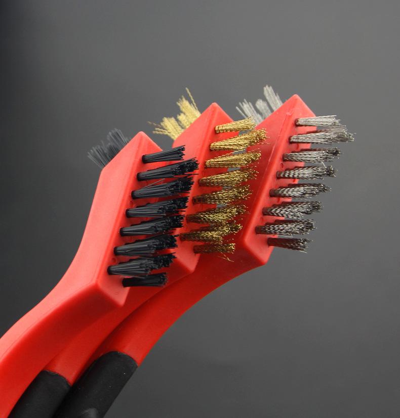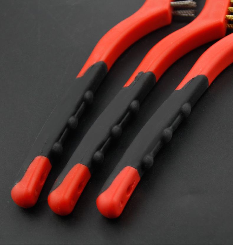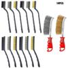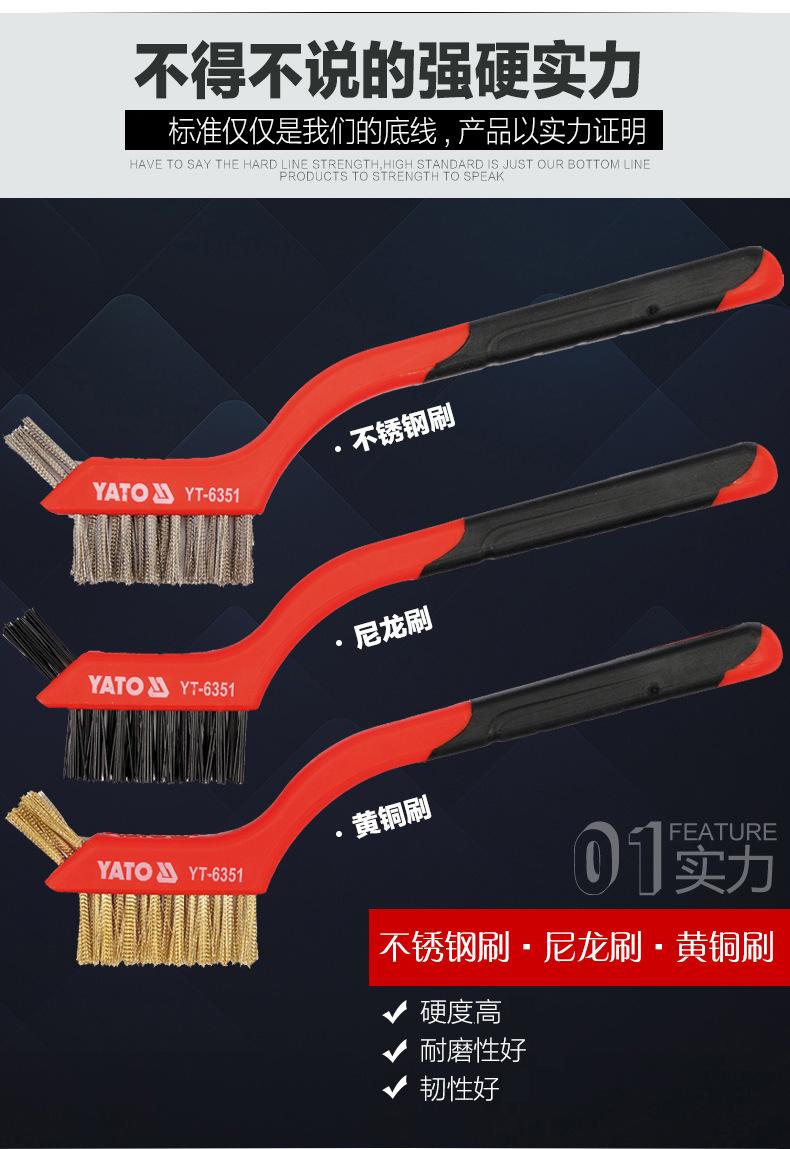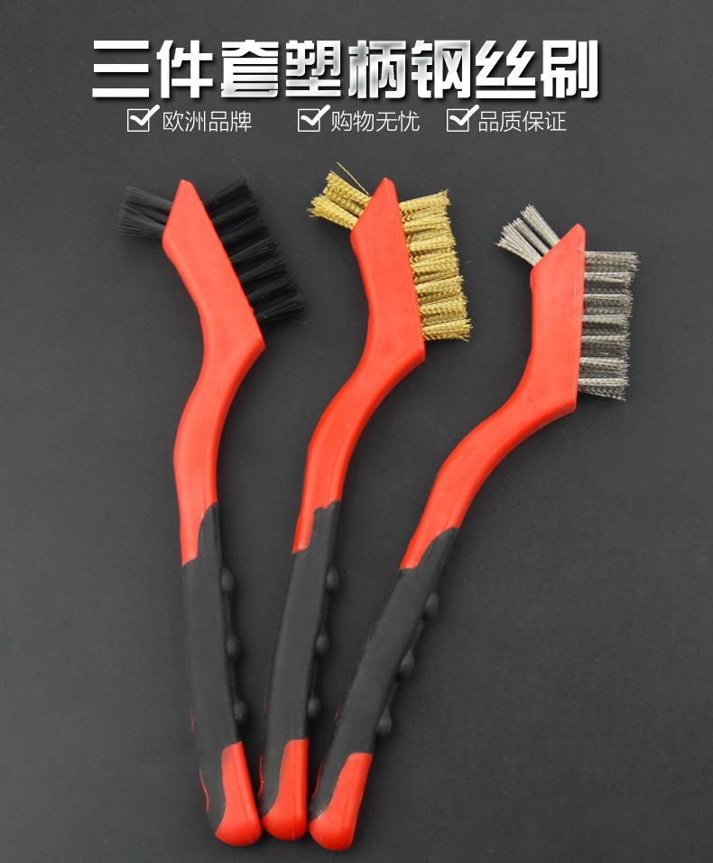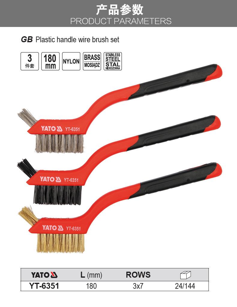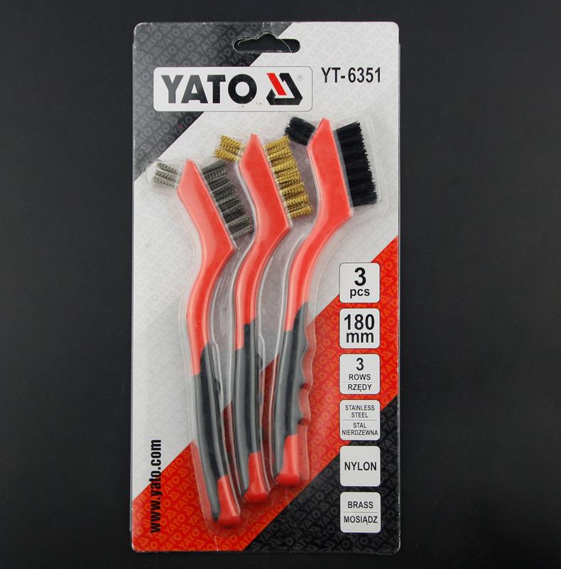 Cepillo de alambre YATO de tres piezas con mango de plástico, nailon, latón, acero inoxidable, herramienta de pulido, limpieza de metales