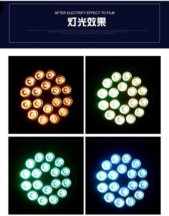 Iluminación de escenario, 18 luces par 4 en 1 teñidas, barra de actuación para bodas, KTV, boda, LED, venta al por mayor, luz de relleno en vivo, luces par, luces de ambiente para actuación en bodas, luces teñidas de colores, luces de superficie, iluminación de equipo de escenario