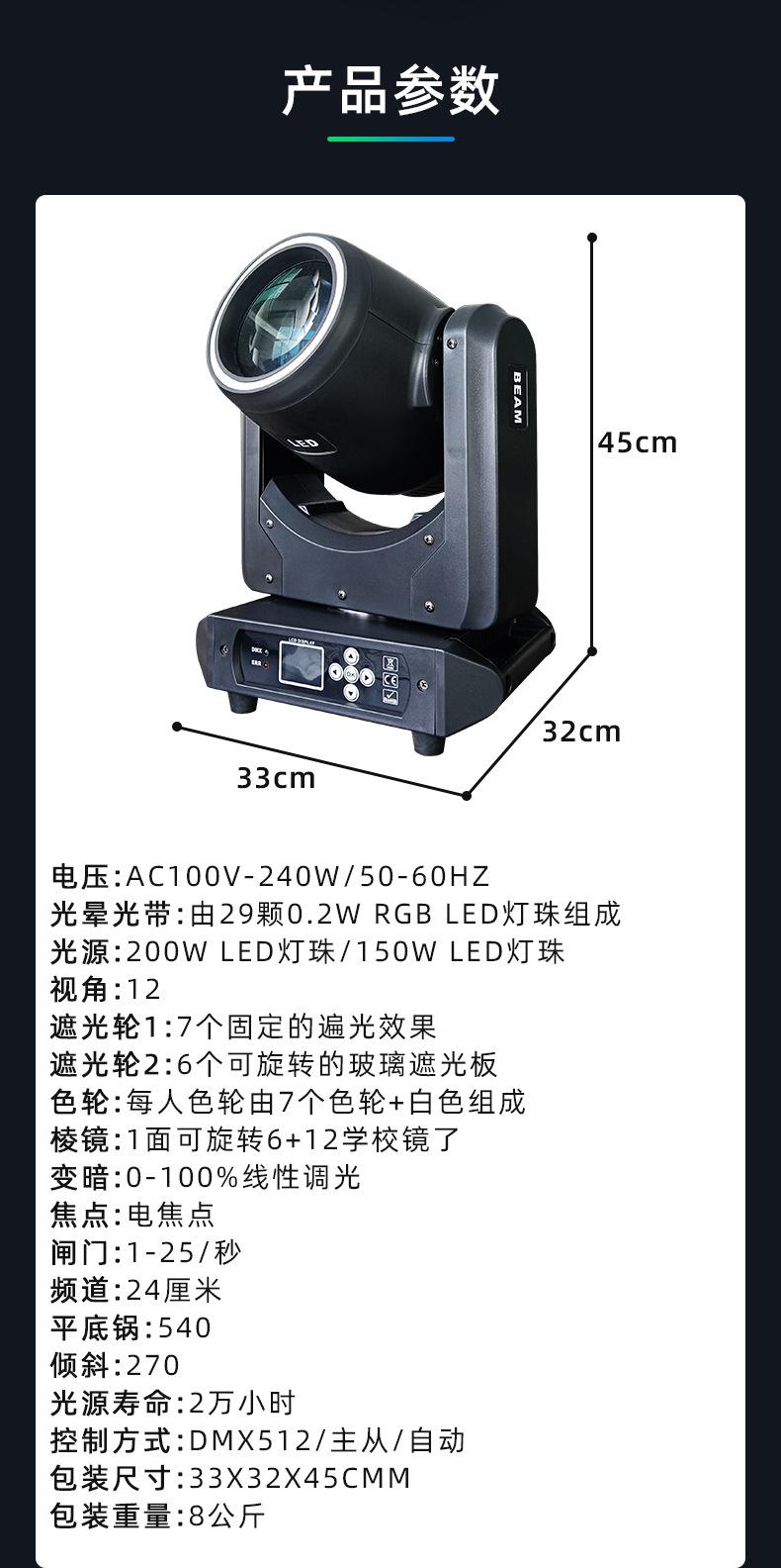 Nueva luz LED de cabeza móvil de haz de 150W con luz de ambiente de apertura, control por voz, barra de luz colorida, iluminación de escenario, ventas directas de fábrica transfronterizas