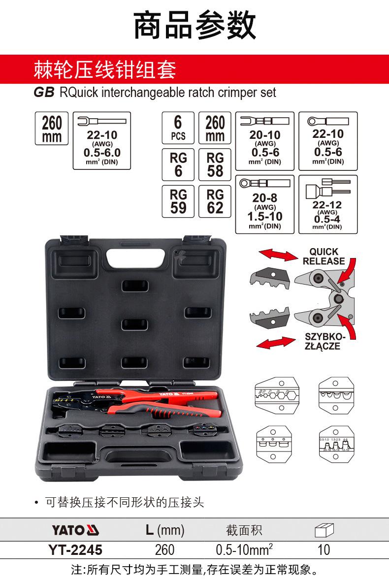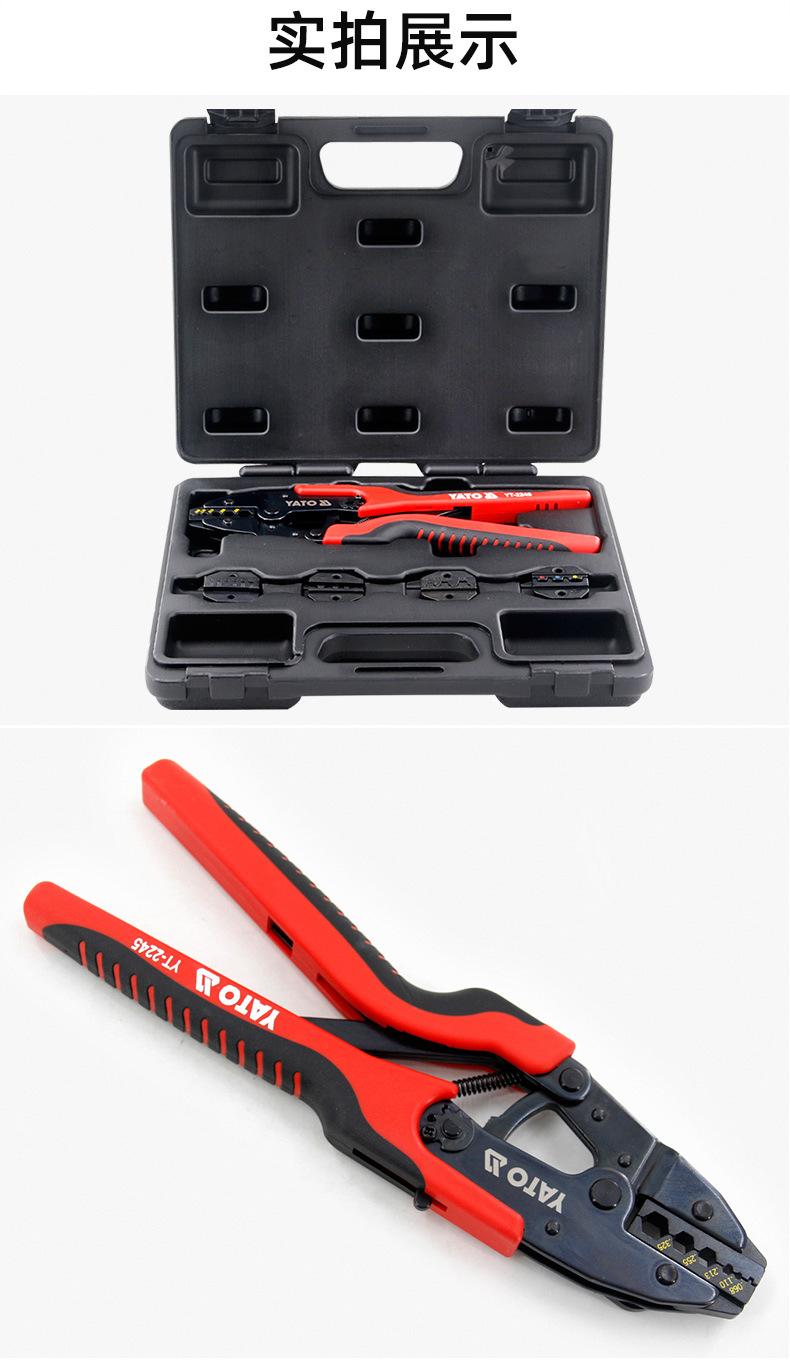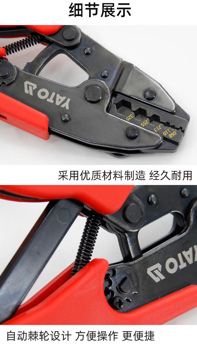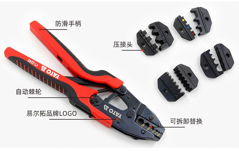 Alicates de crimpado de trinquete con cabezal intercambiable YATO, alicates de crimpado de resorte de terminal prensado en frío multifuncionales, alicates de cableado de punta de cobre