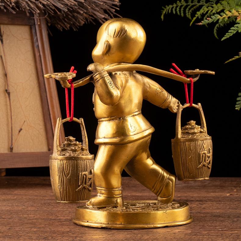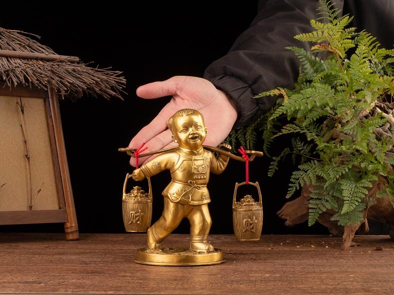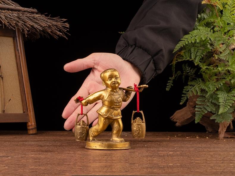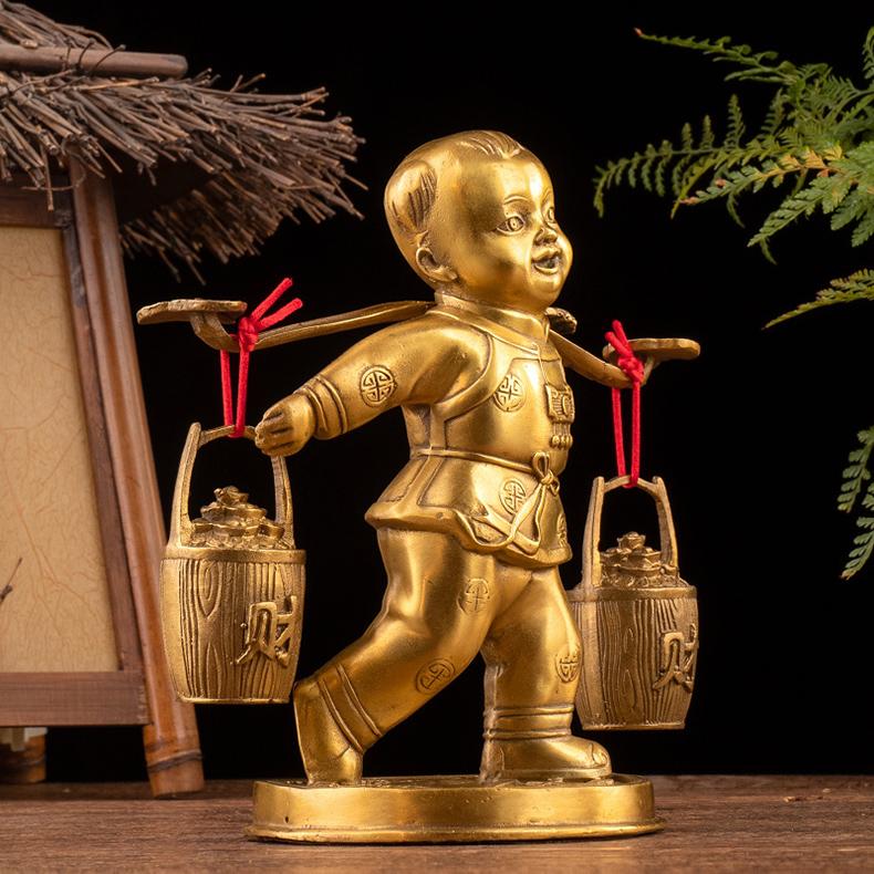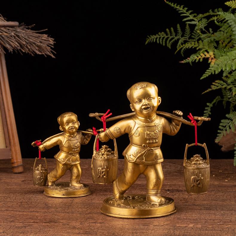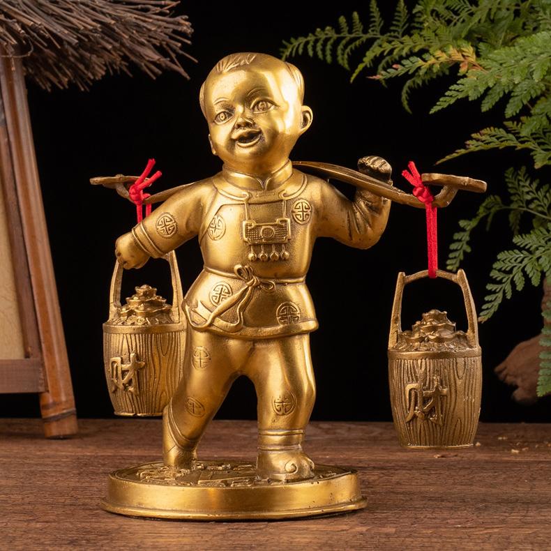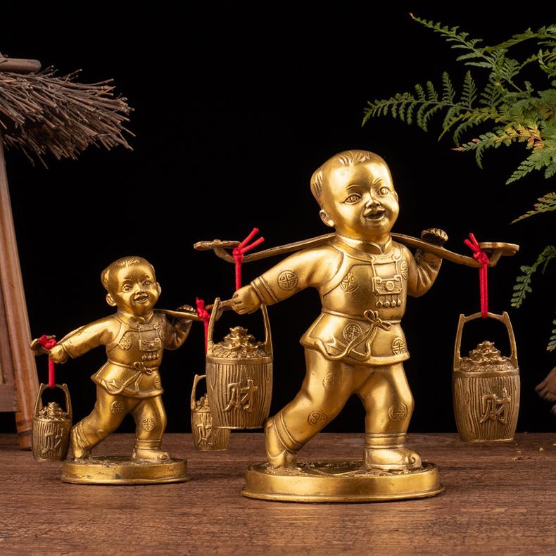 Figura de Niño Atractora de Fortuna de Latón, Figura de Niño Dadora de Riqueza y Benevolente, Tienda, Sala de Estar, Decoración del Hogar, Regalo Artesanal