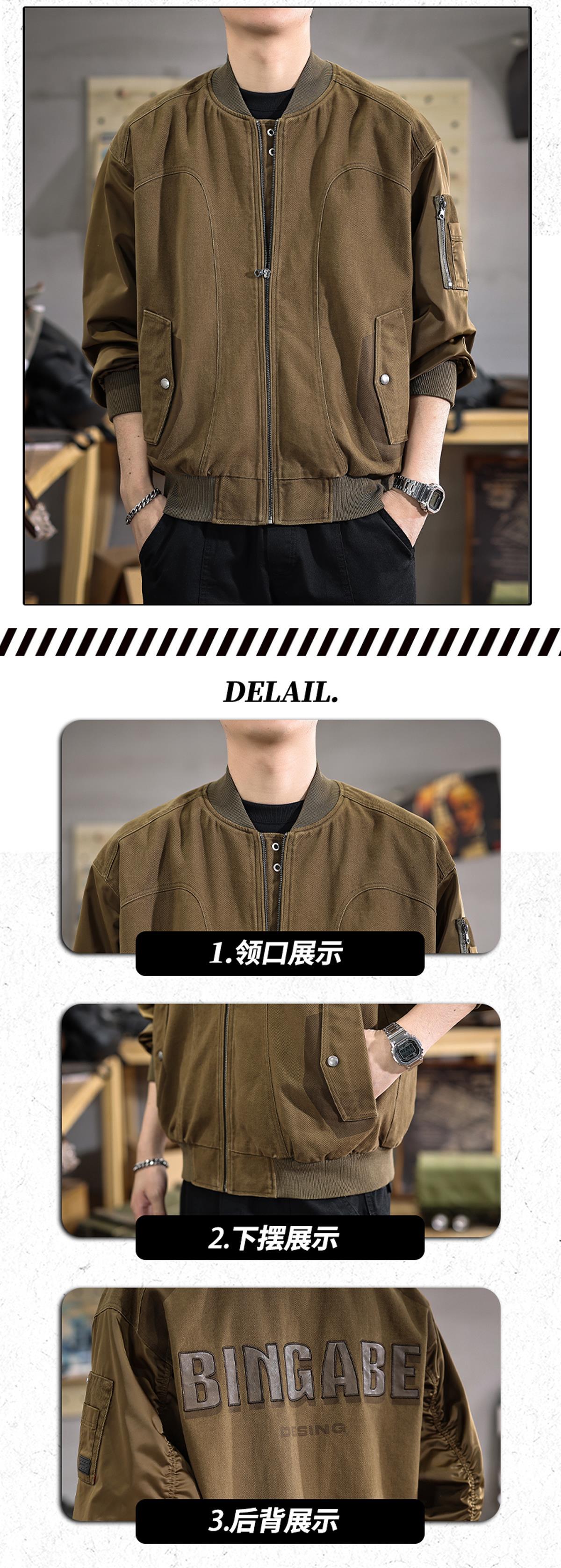 Chaqueta de cuello beisbolera lavada de estilo americano para hombre, otoño 2025 nueva holgada casual genial chaqueta de aviador