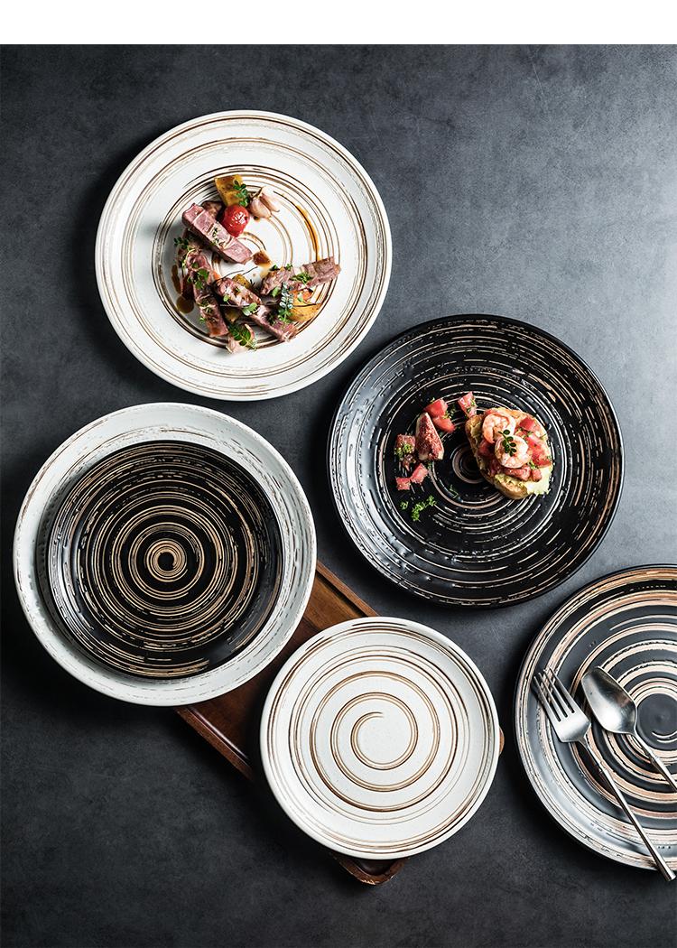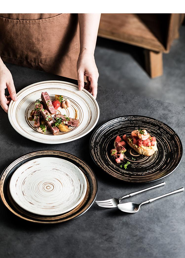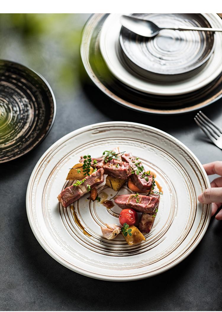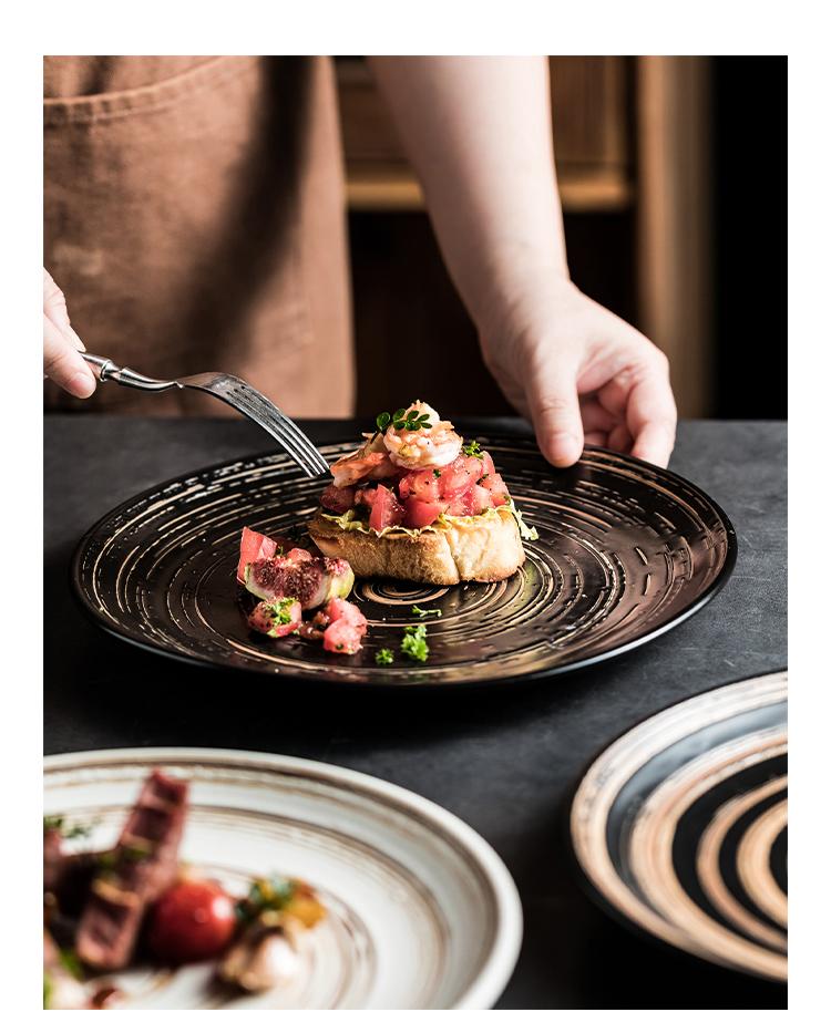 Plato hondo cepillado al por mayor plato para bistec de res plato de cerámica para restaurante occidental plato plano para pastel