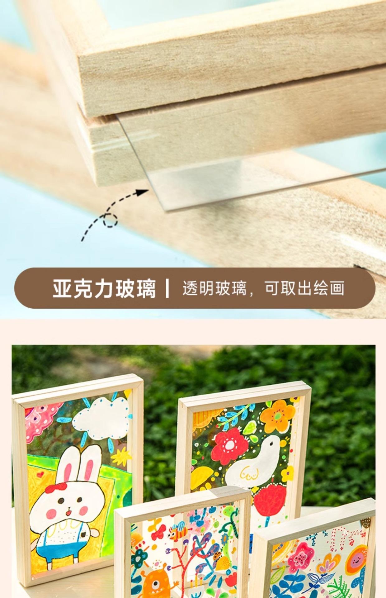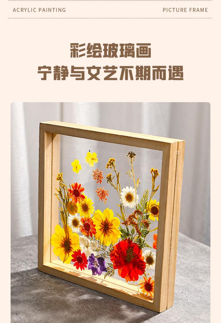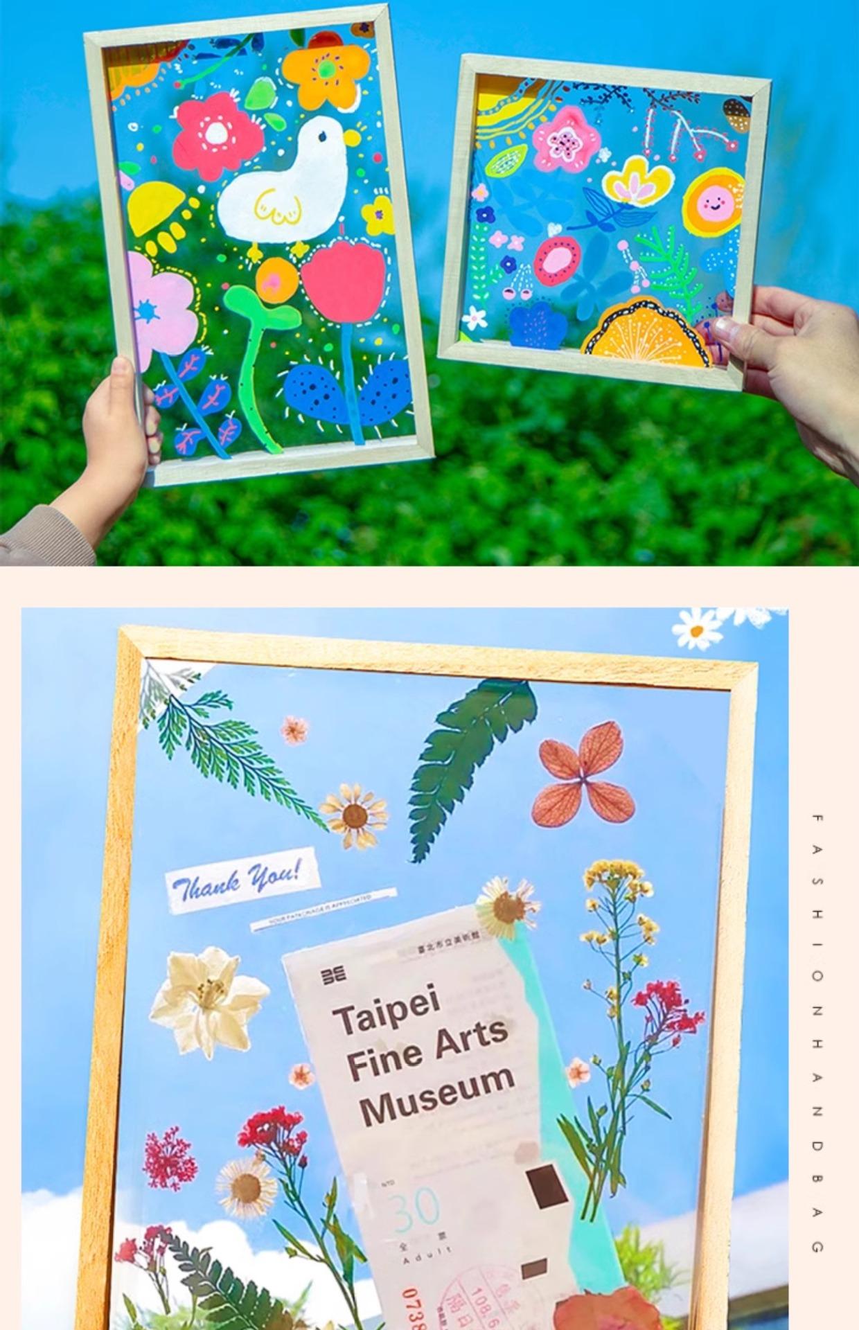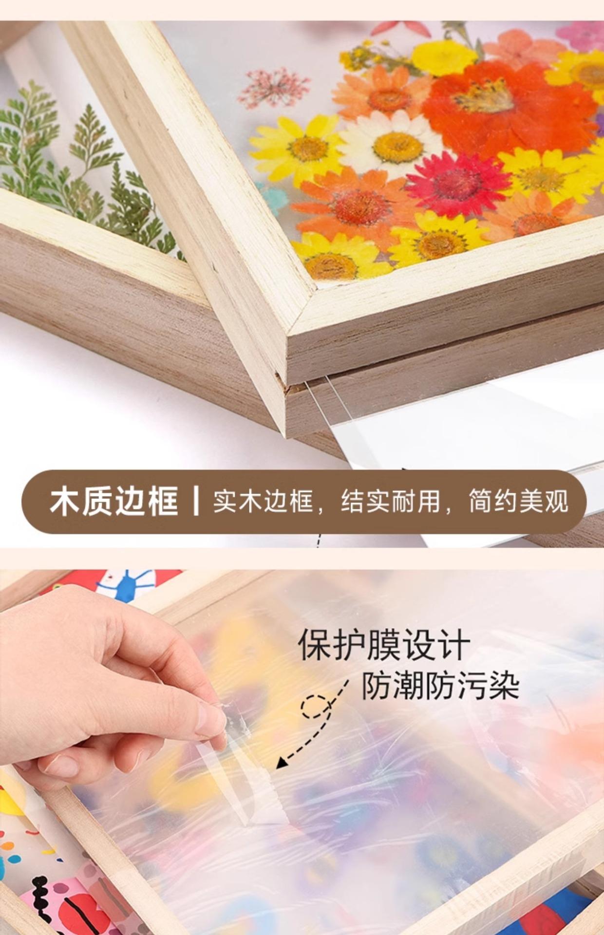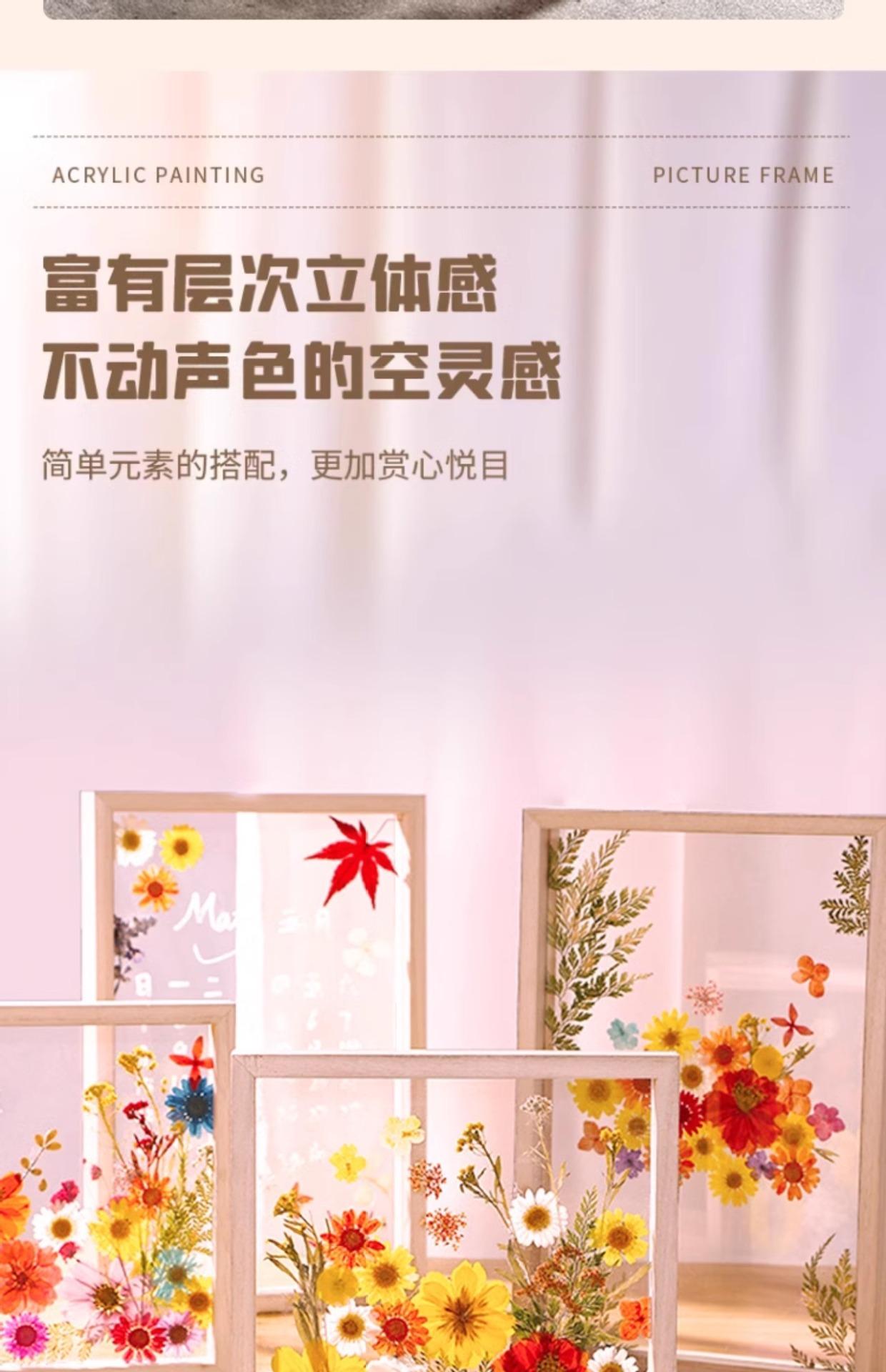 Marco de fotos acrílico transparente para niños, hecho a mano, con pintura en vidrio, espécimen de planta en relieve, marco de exhibición de madera.