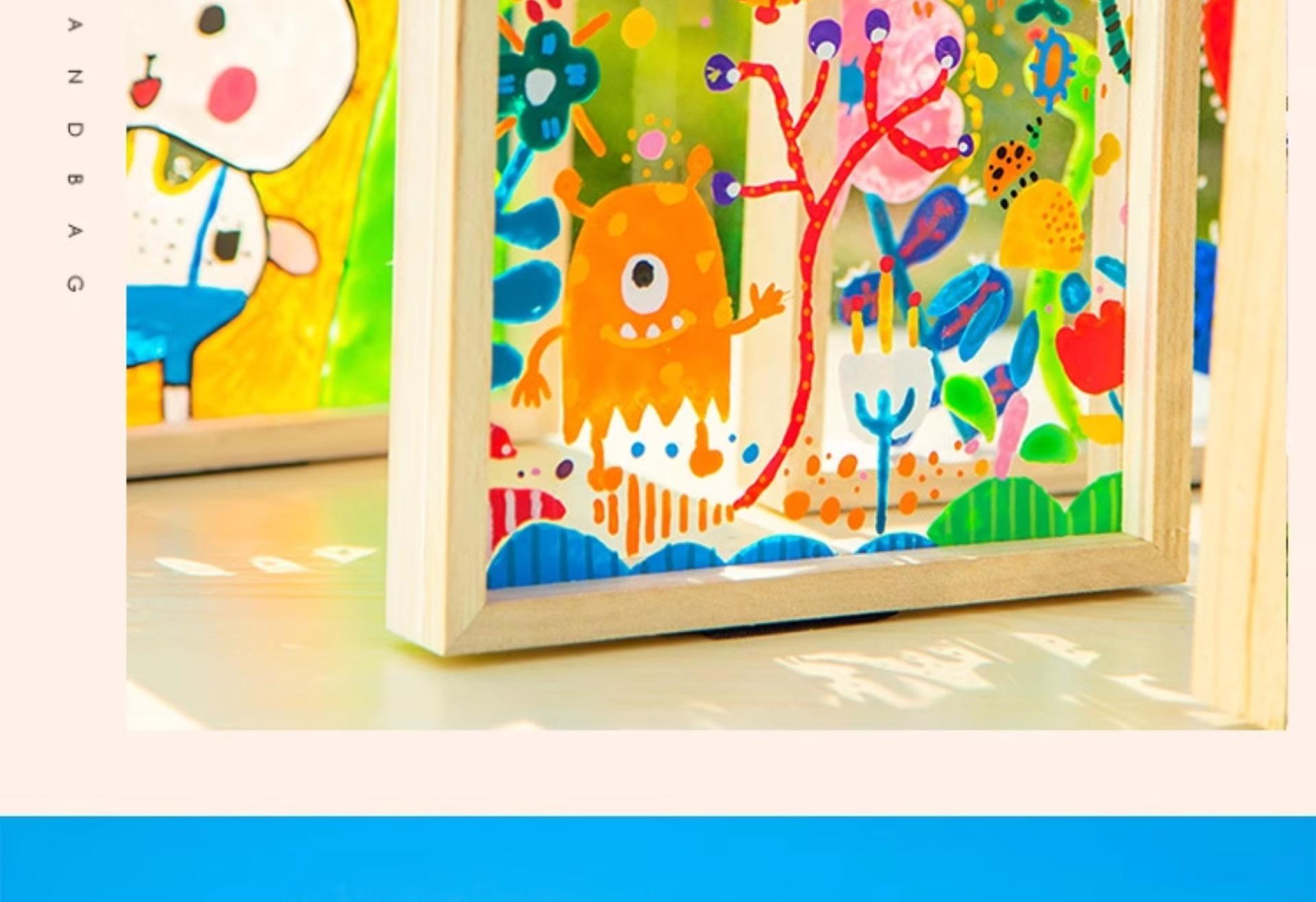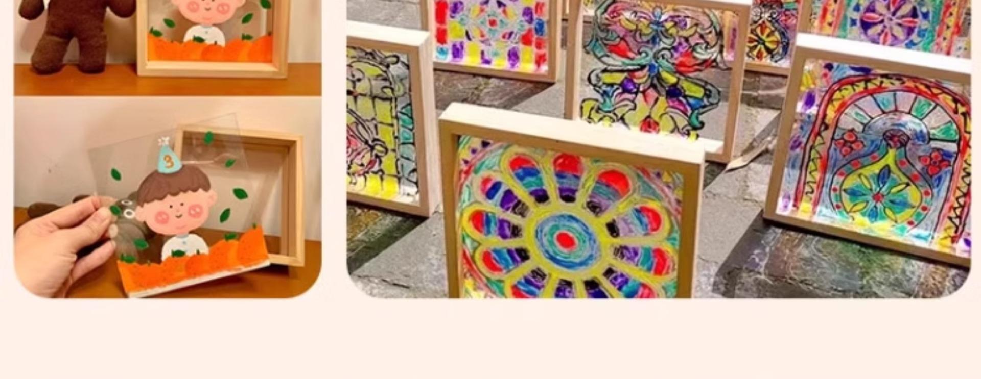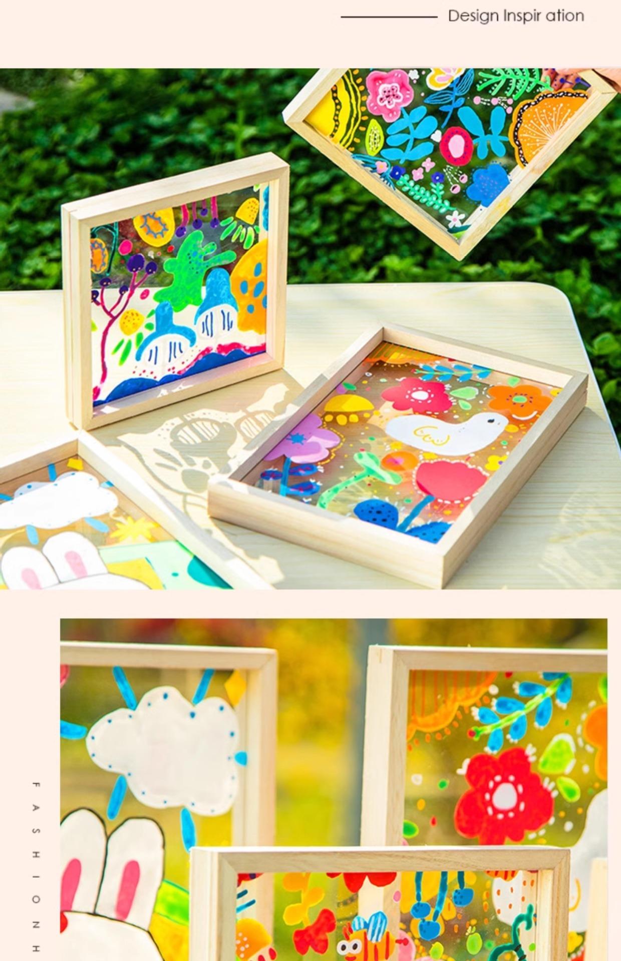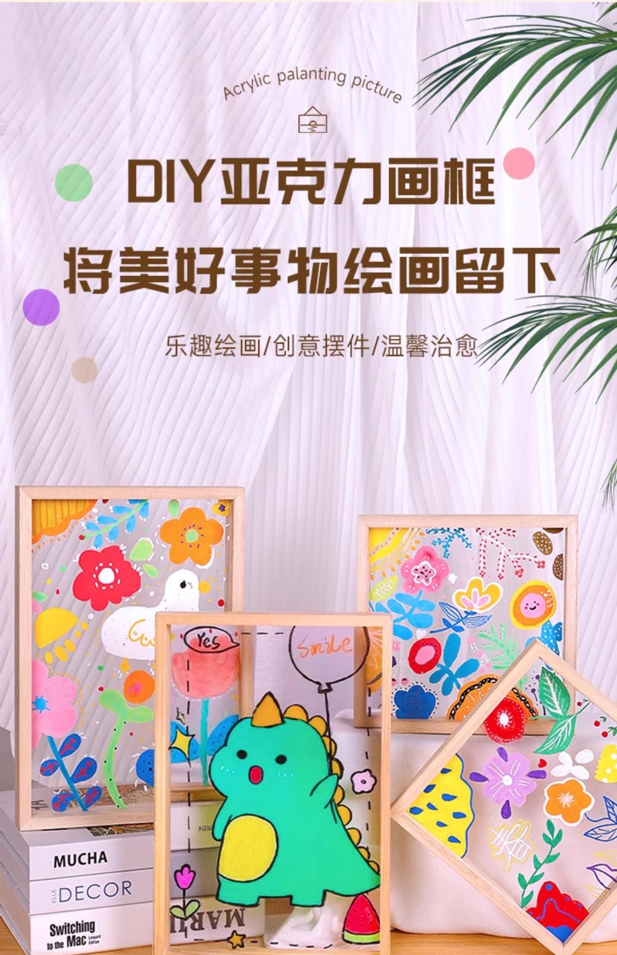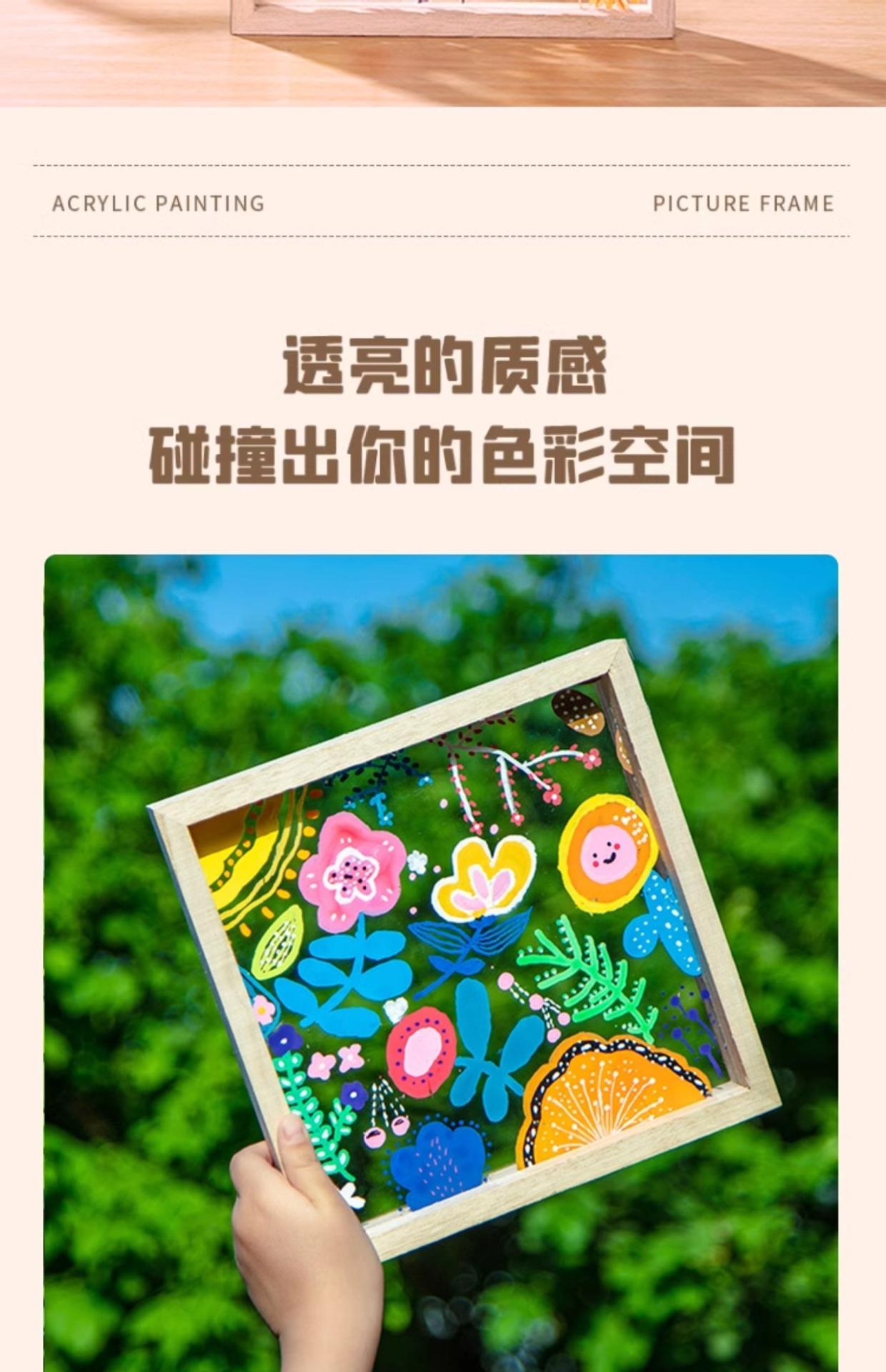 Marco de fotos acrílico transparente para niños, hecho a mano, con pintura en vidrio, espécimen de planta en relieve, marco de exhibición de madera.