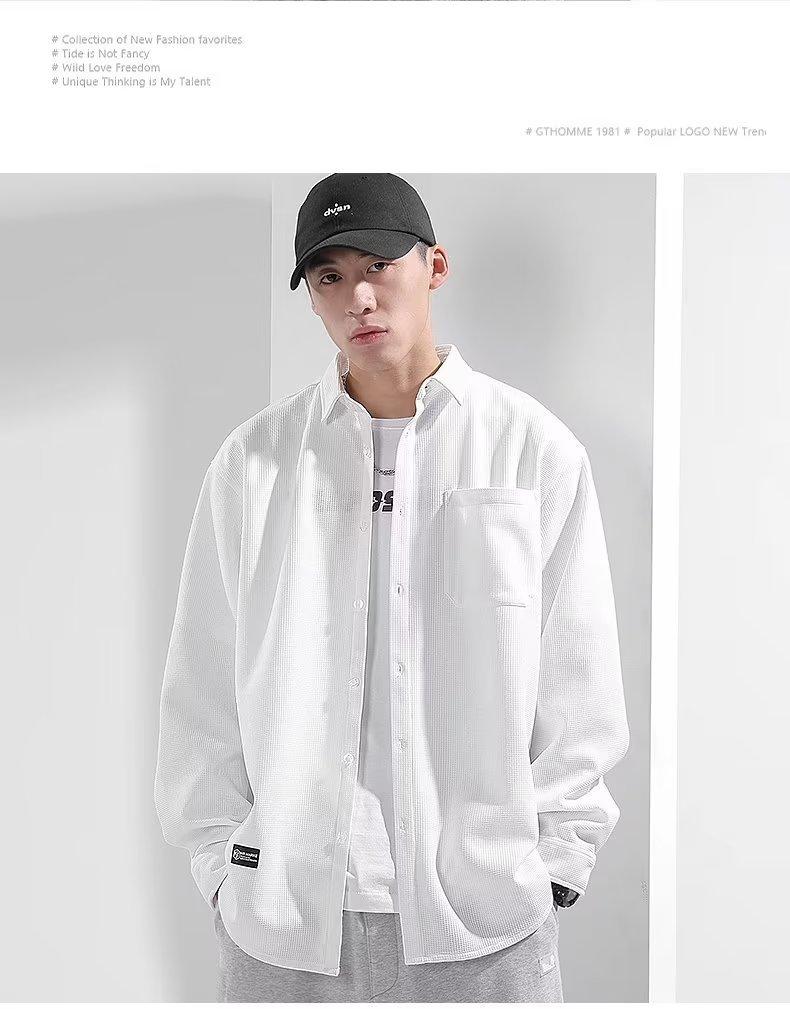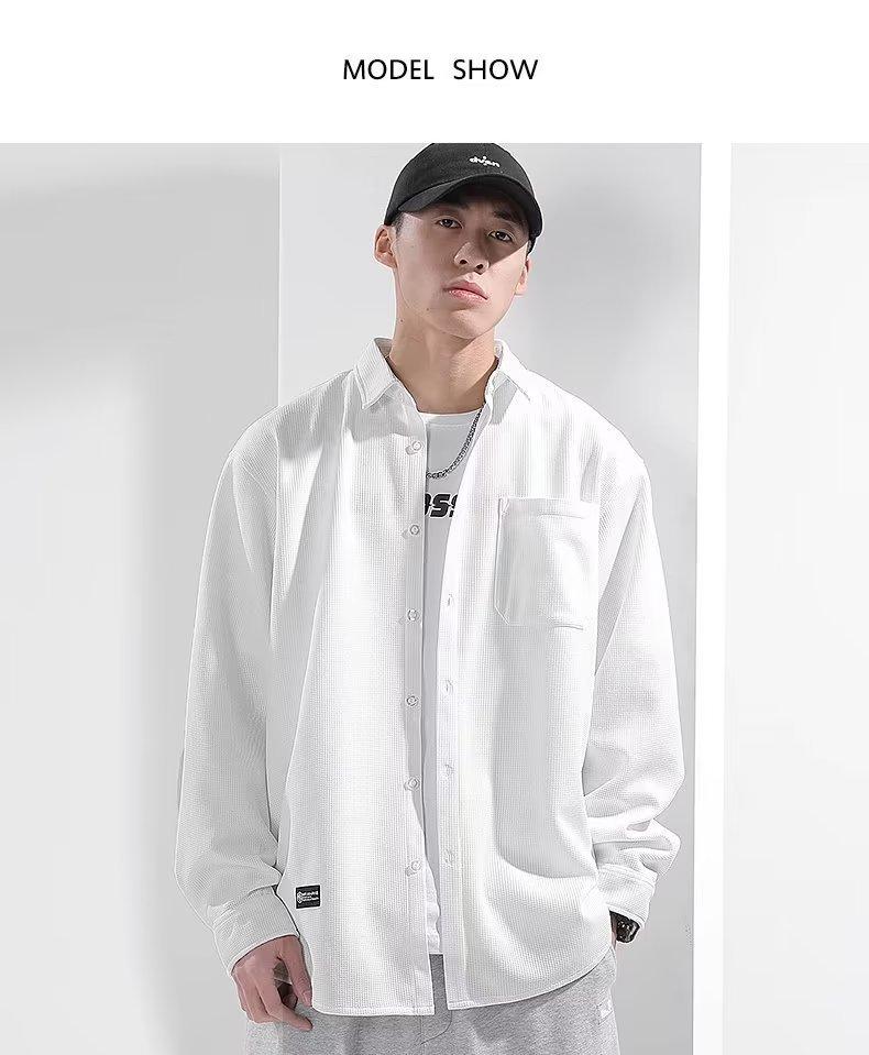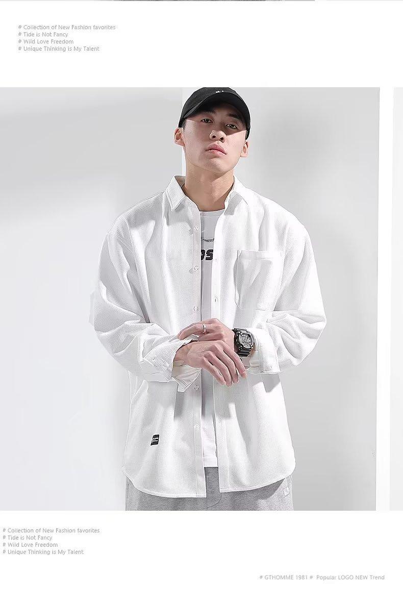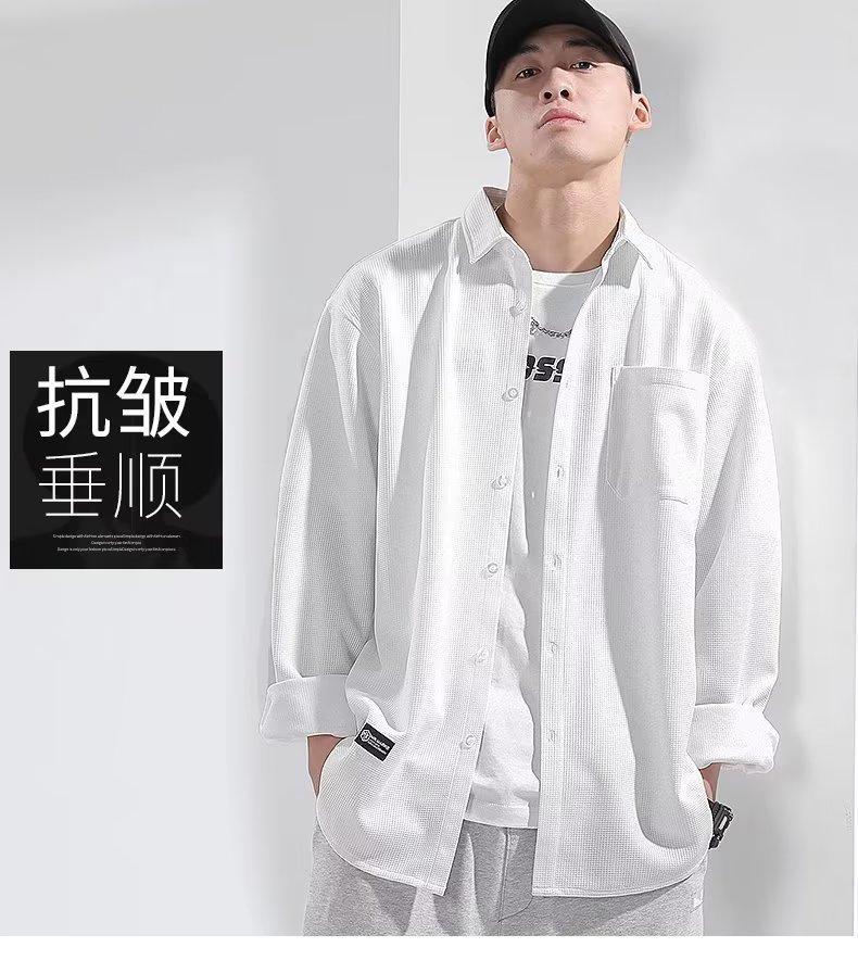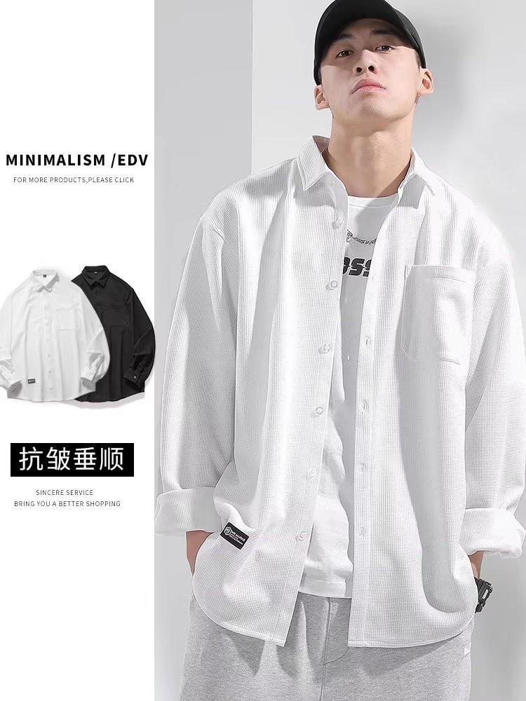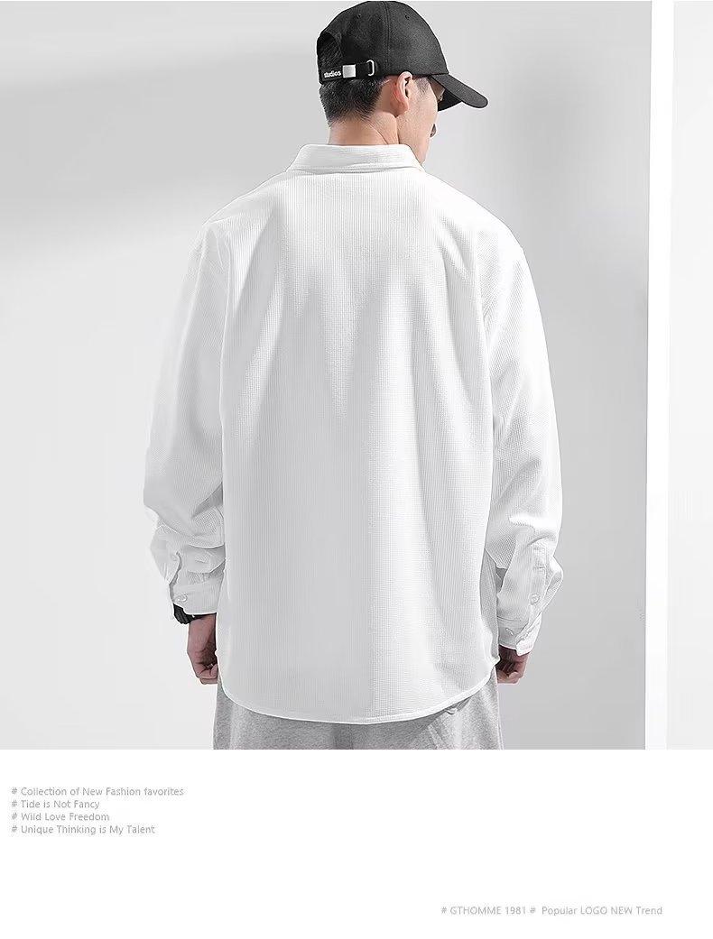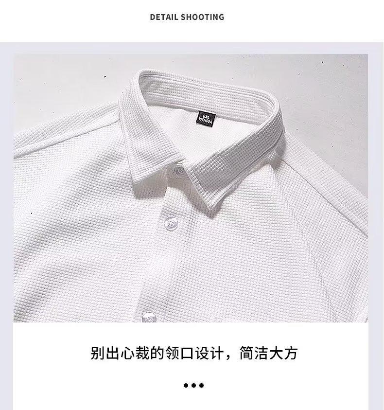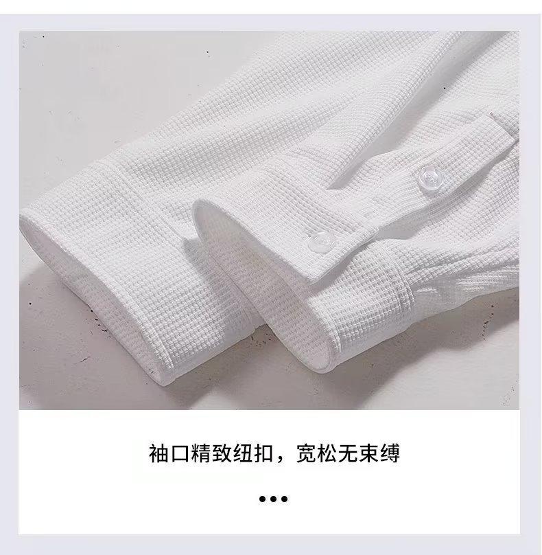 Camisa Blanca de Manga Larga para Hombre Primavera y Otoño Talla Grande Waffle Suelta Delgada Ropa Exterior Casual Camisa de Verano para Hombre Top Antiarrugas