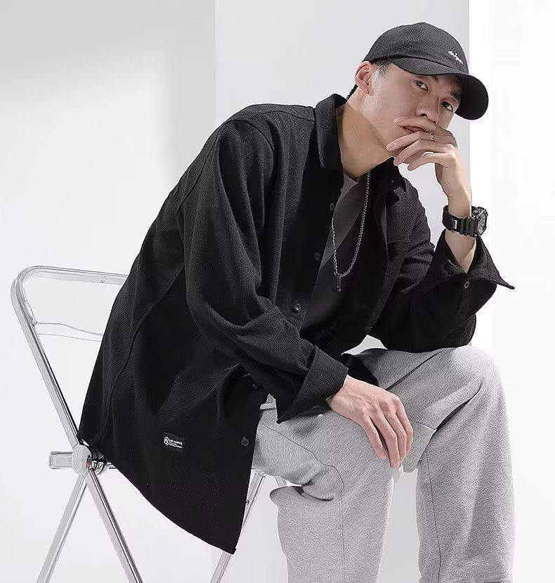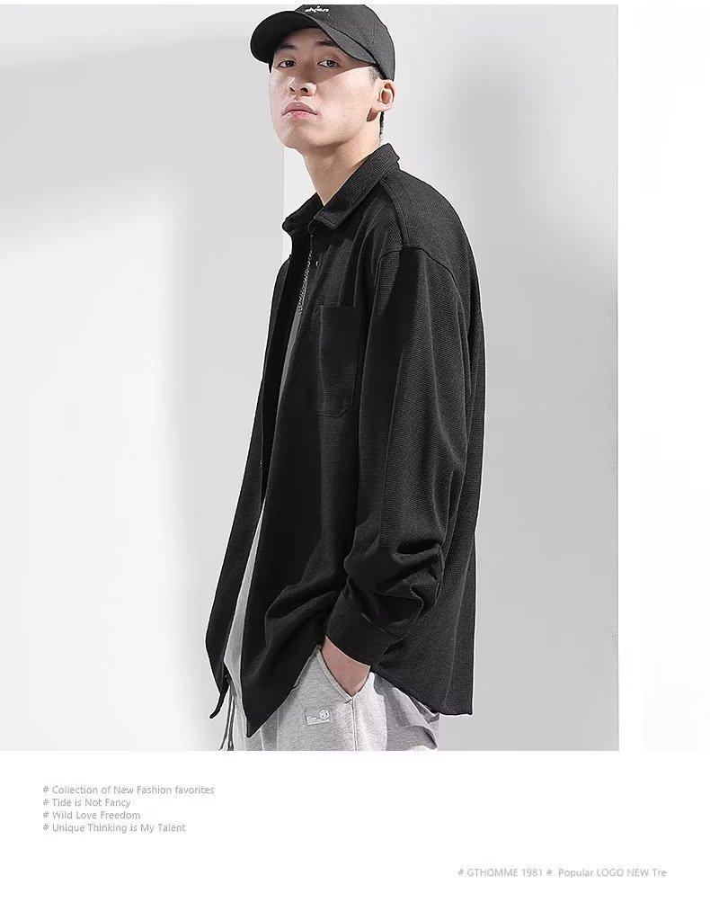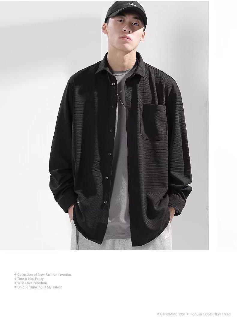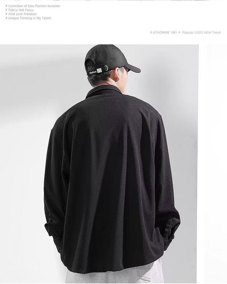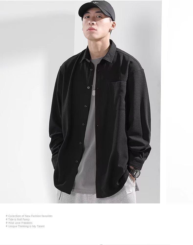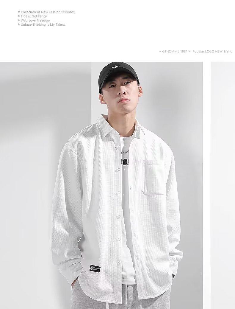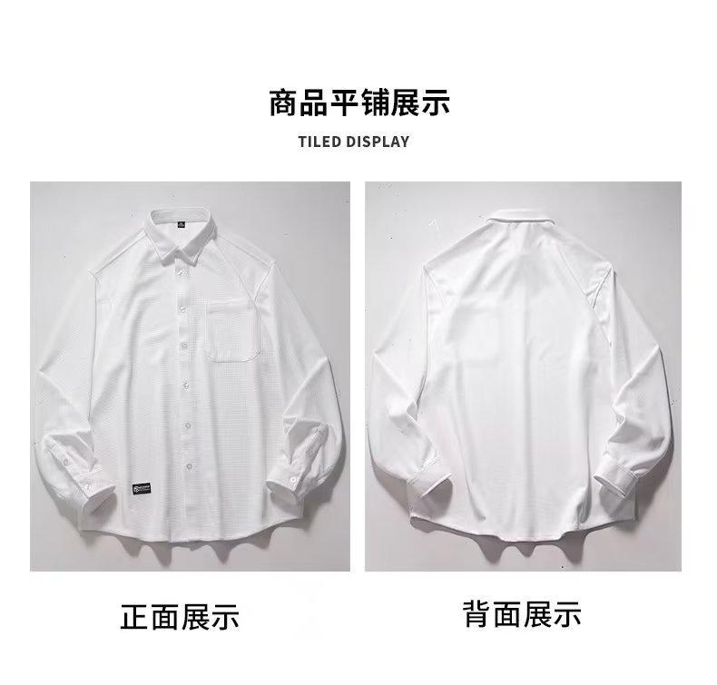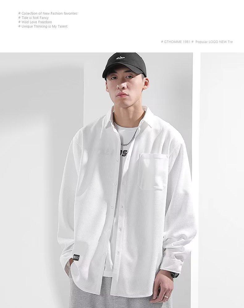 Camisa Blanca de Manga Larga para Hombre Primavera y Otoño Talla Grande Waffle Suelta Delgada Ropa Exterior Casual Camisa de Verano para Hombre Top Antiarrugas
