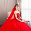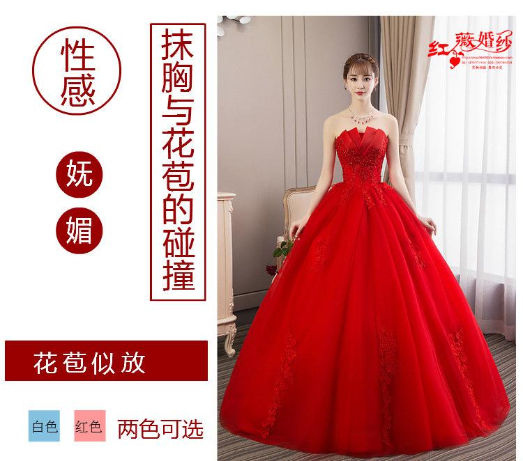 Vestido de Novia 2025 Nuevo Estilo Vestido de Novia Rojo Novia Princesa Soñador Capullo de Flor Strapless Otoño e Invierno Falda de Gasa de Cintura Alta para Mujer