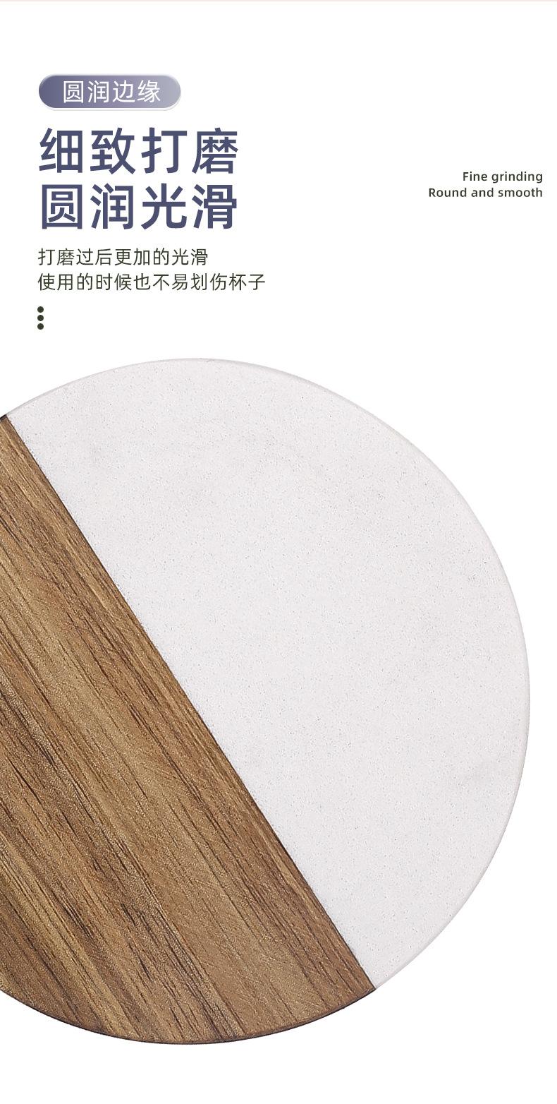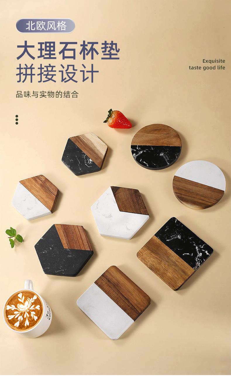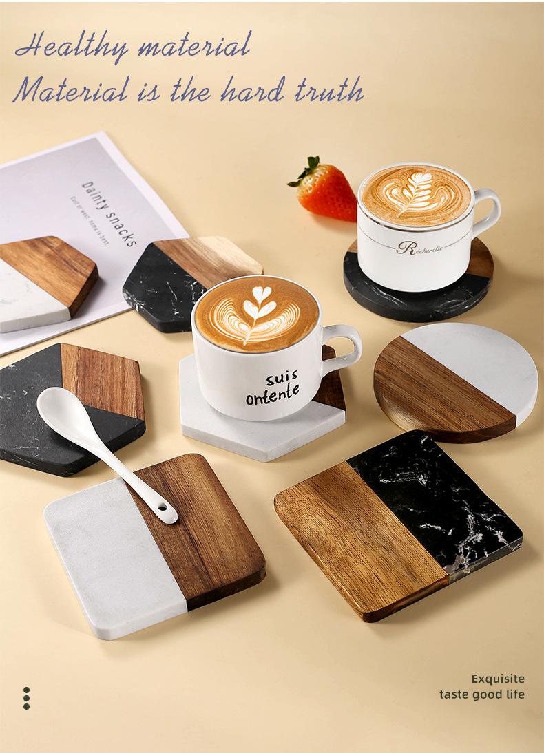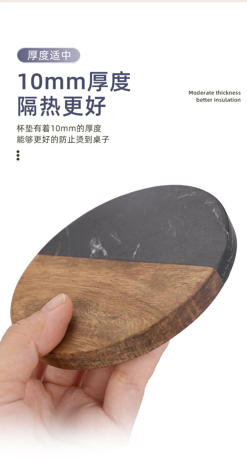 Posavasos de mármol con aislamiento térmico y costuras de madera de acacia, mantel individual redondo de madera para café, estilo europeo, ligero y lujoso, para taza de té, transfronterizo
