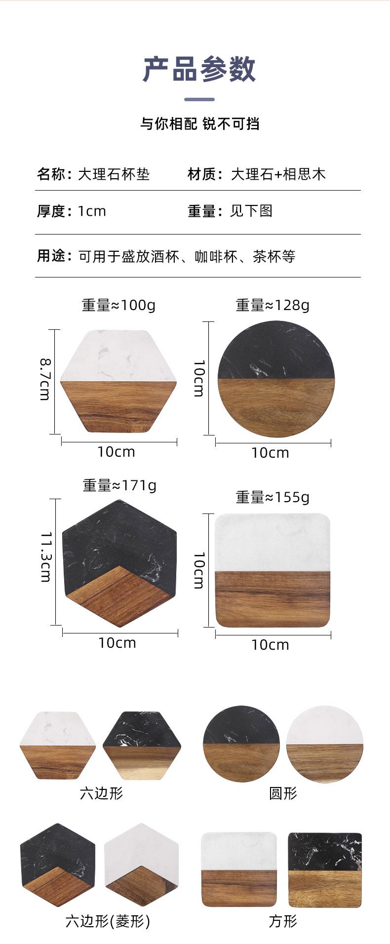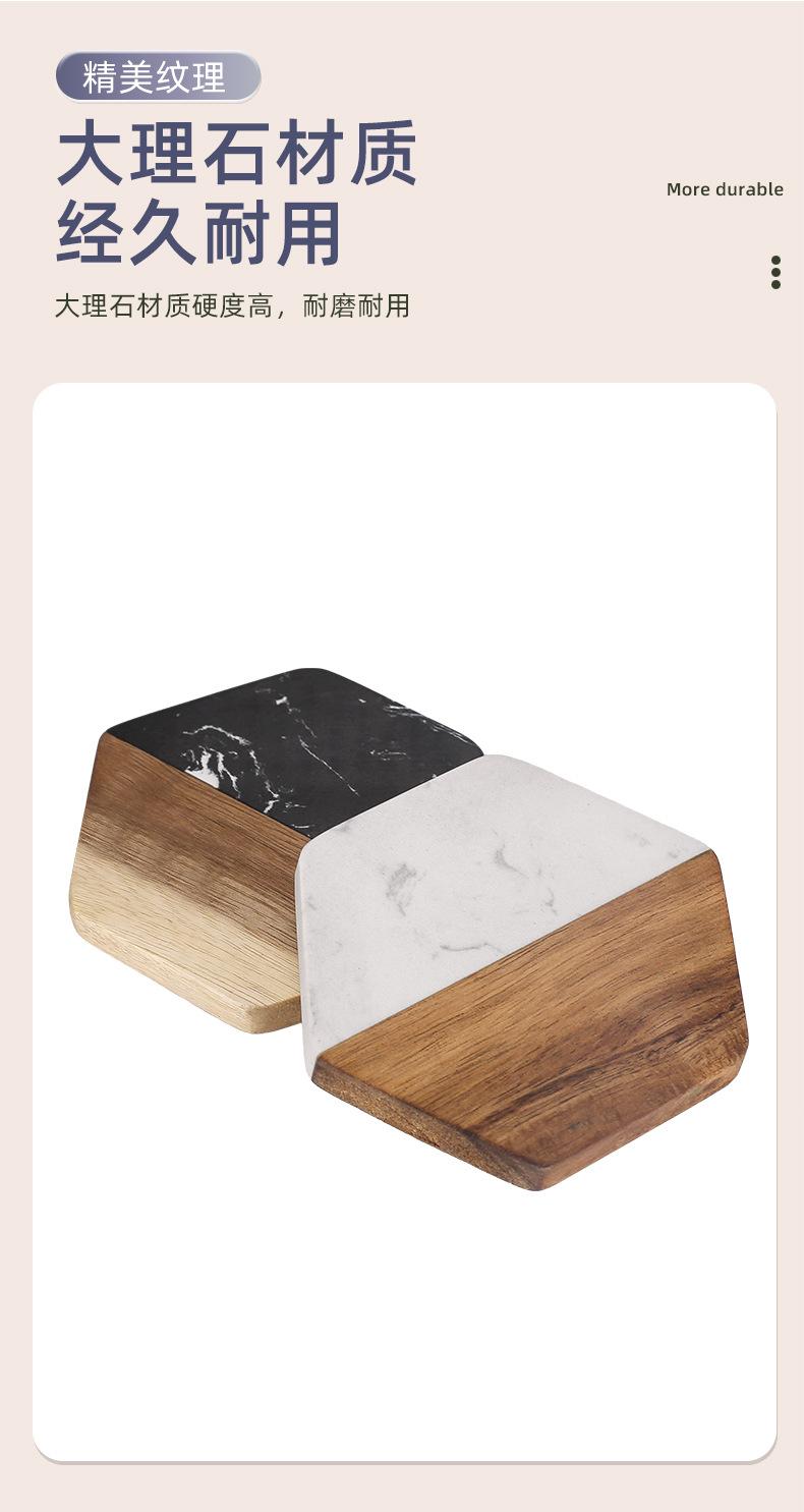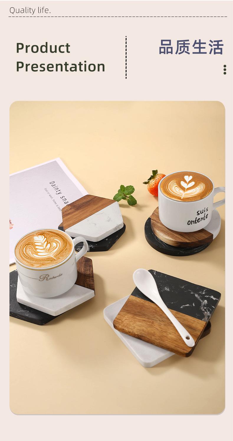 Posavasos de mármol con aislamiento térmico y costuras de madera de acacia, mantel individual redondo de madera para café, estilo europeo, ligero y lujoso, para taza de té, transfronterizo