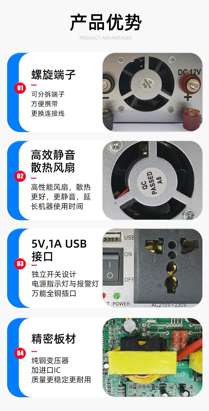Inversor solar para coche, venta directa de fábrica, inversor fotovoltaico de 12 V y 1200 W.