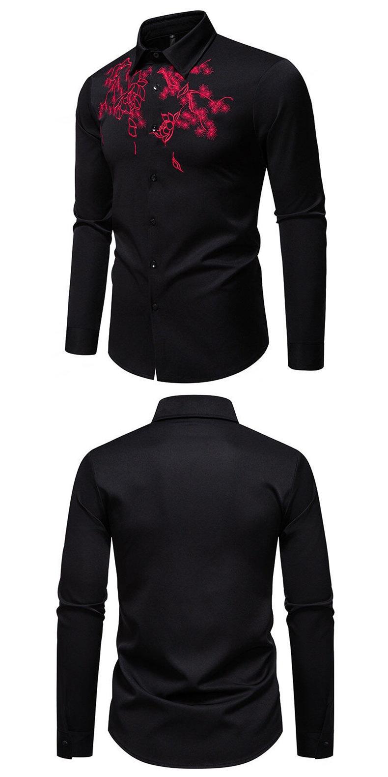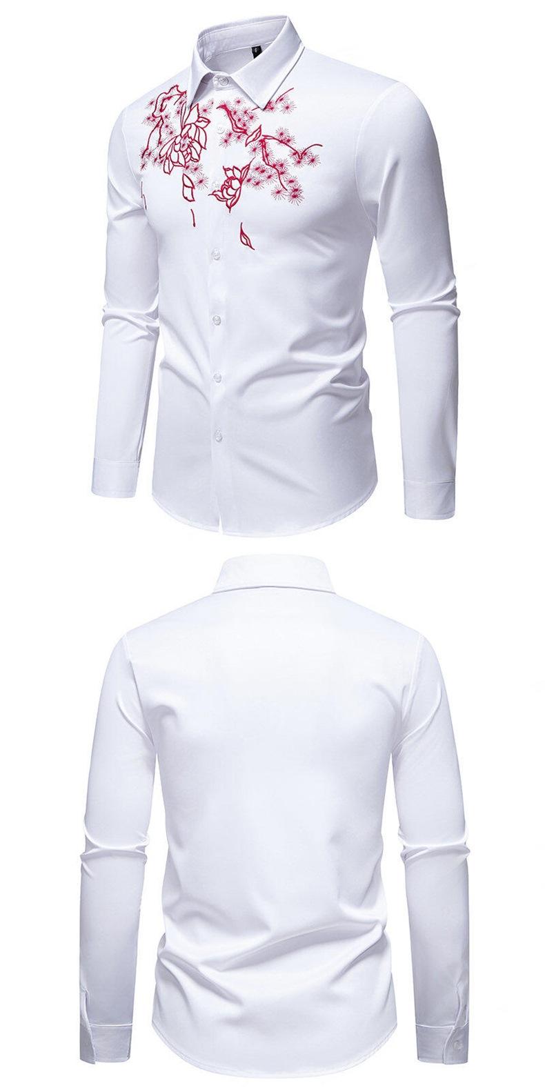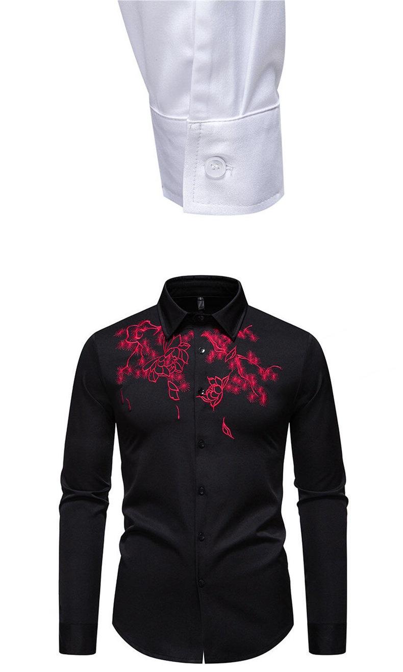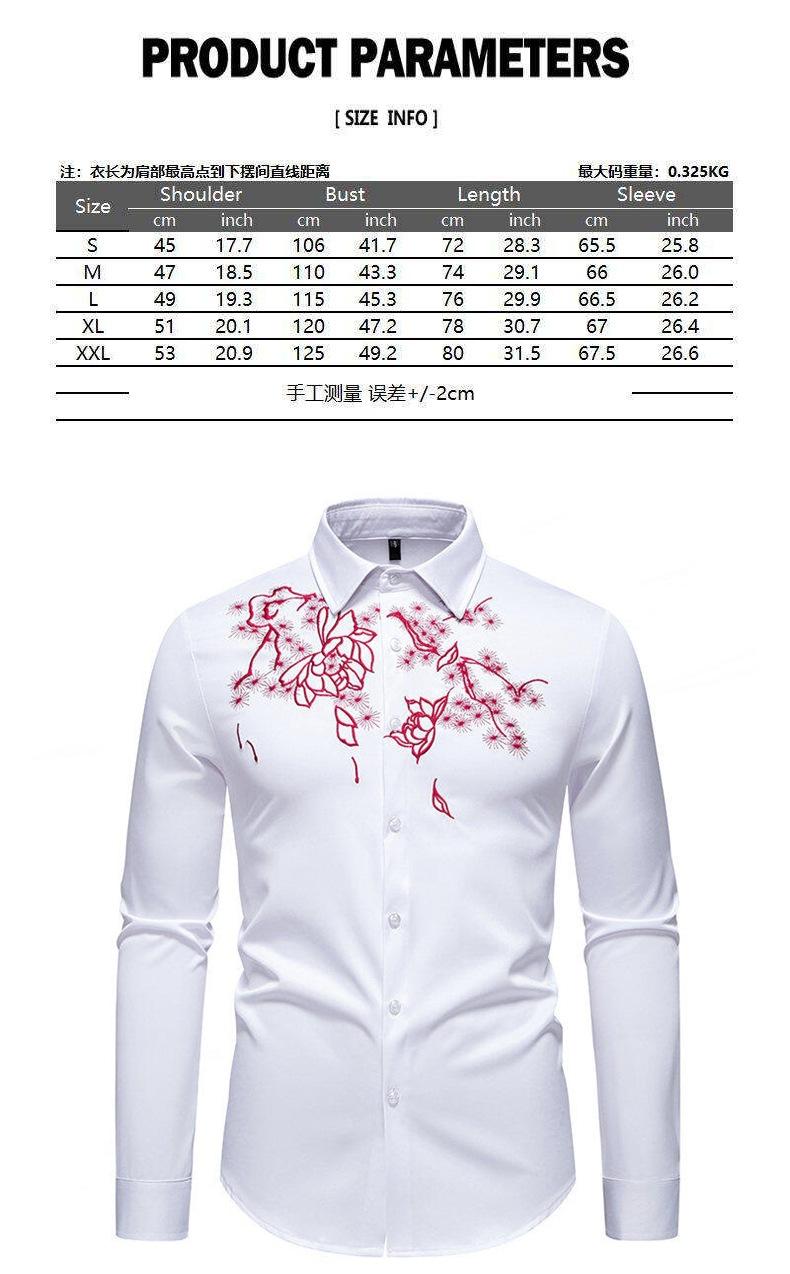 Camisa de manga larga con bordado floral para hombre, nueva camisa informal fina de Amazon para primavera y otoño de 2025, talla europea transfronteriza.