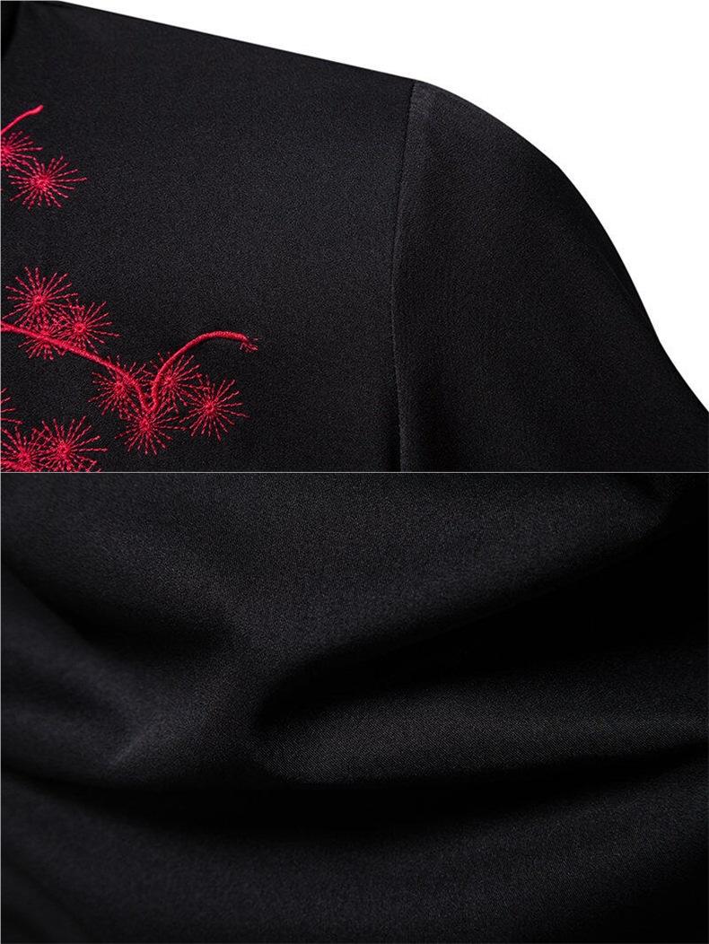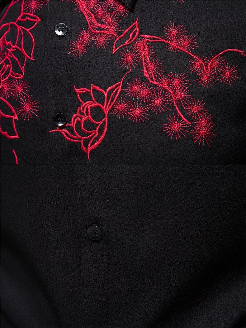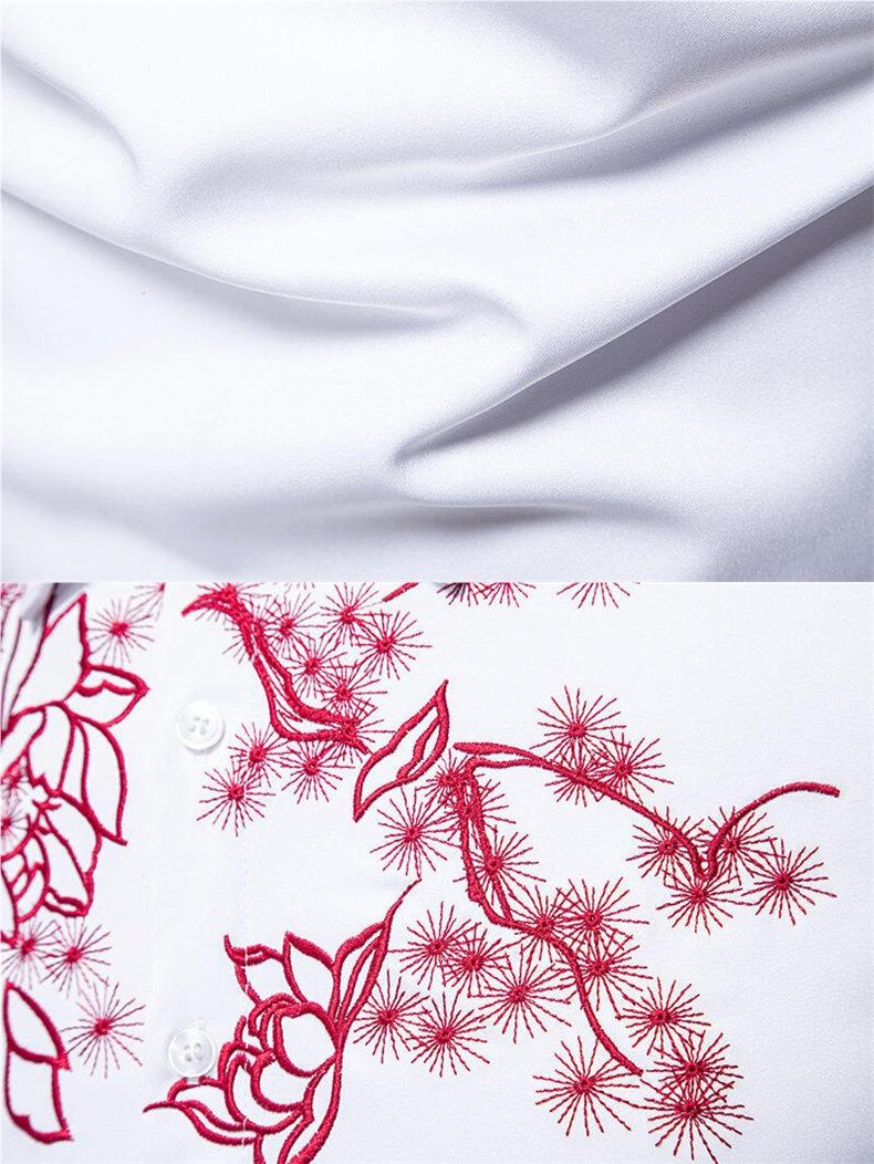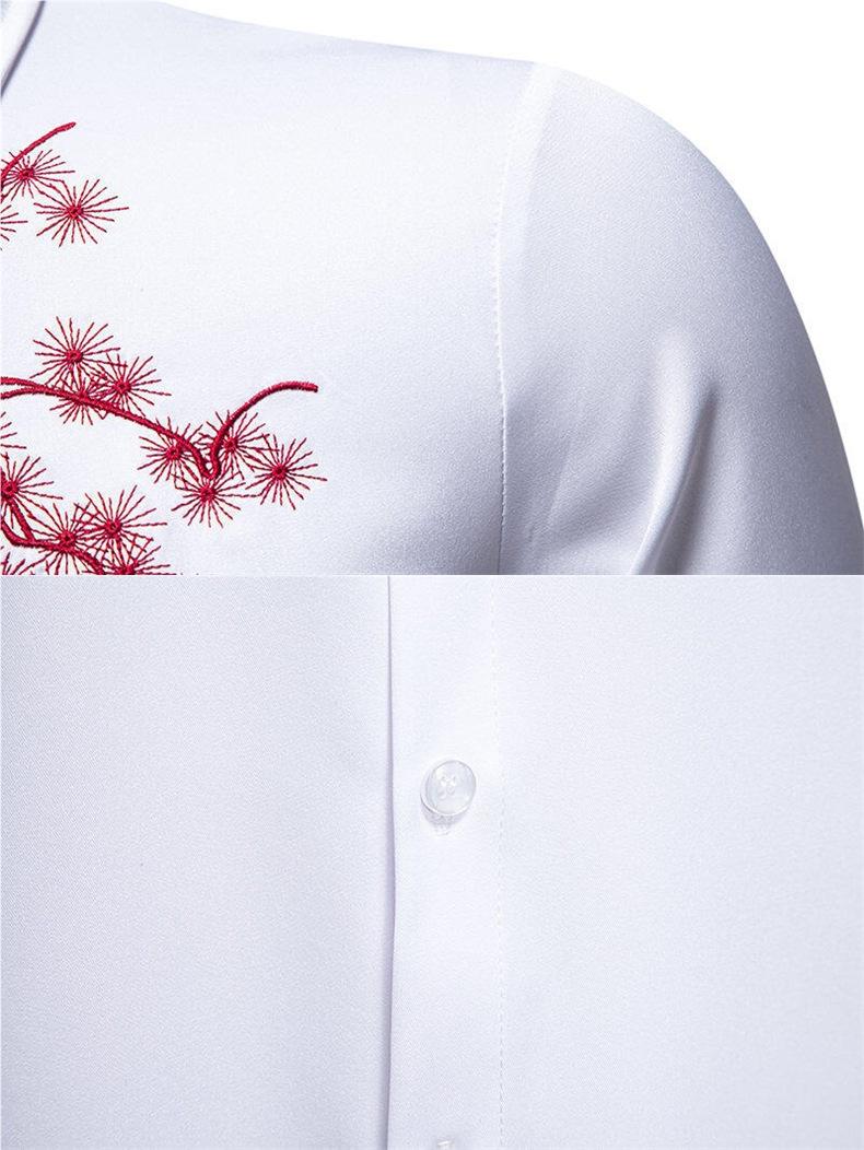 Camisa de manga larga con bordado floral para hombre, nueva camisa informal fina de Amazon para primavera y otoño de 2025, talla europea transfronteriza.
