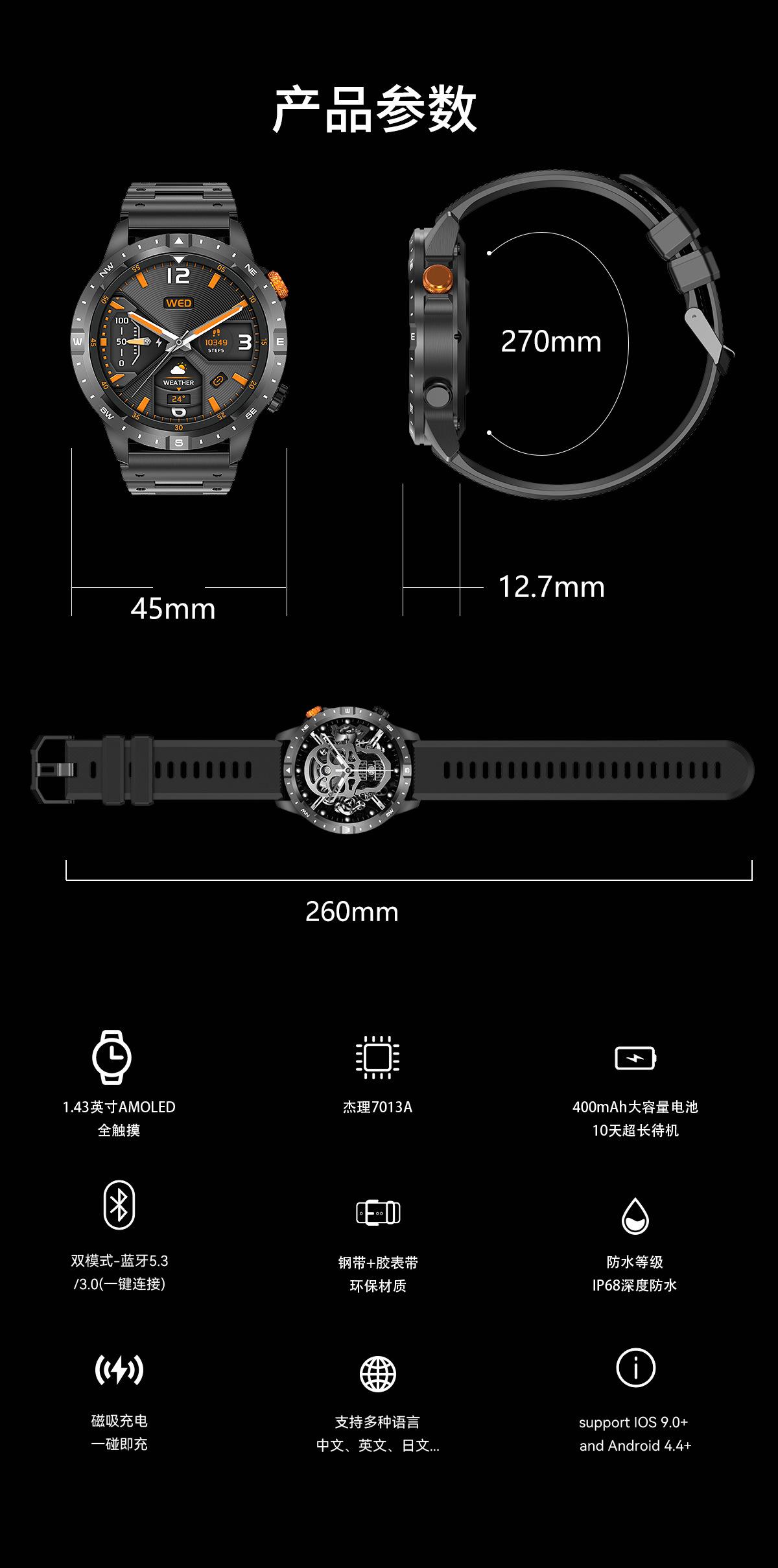 Nuevo Reloj Inteligente Amoled Transfronterizo Resistente al Agua Ip67 Llamada Bluetooth Larga Duración de Batería Reloj Deportivo Ak59