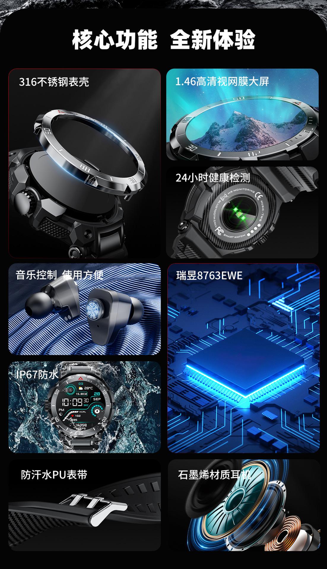 Nuevo Reloj Inteligente Gt100Pro Tws Dos-En-Uno Llamada HD NFC Monitoreo Deportivo Múltiple Reloj