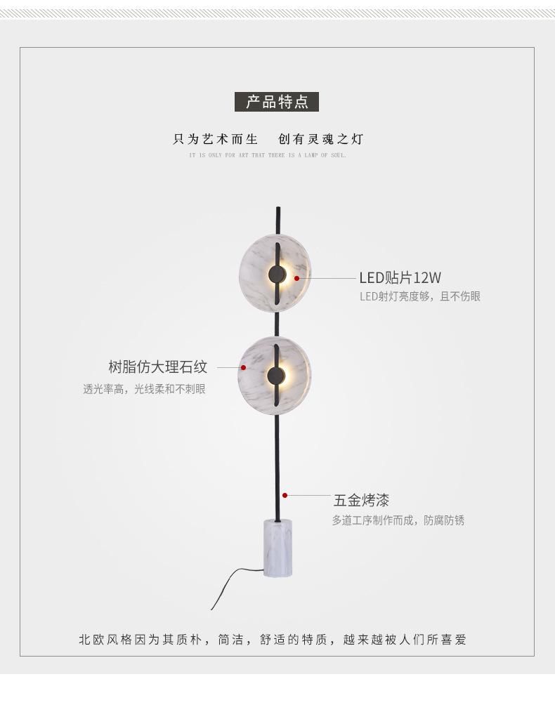 Lámpara de pie giratoria de alta gama posmoderna, modelo de diseño para dormitorio, estudio, lámpara de pared de imitación de mármol de alta gama.