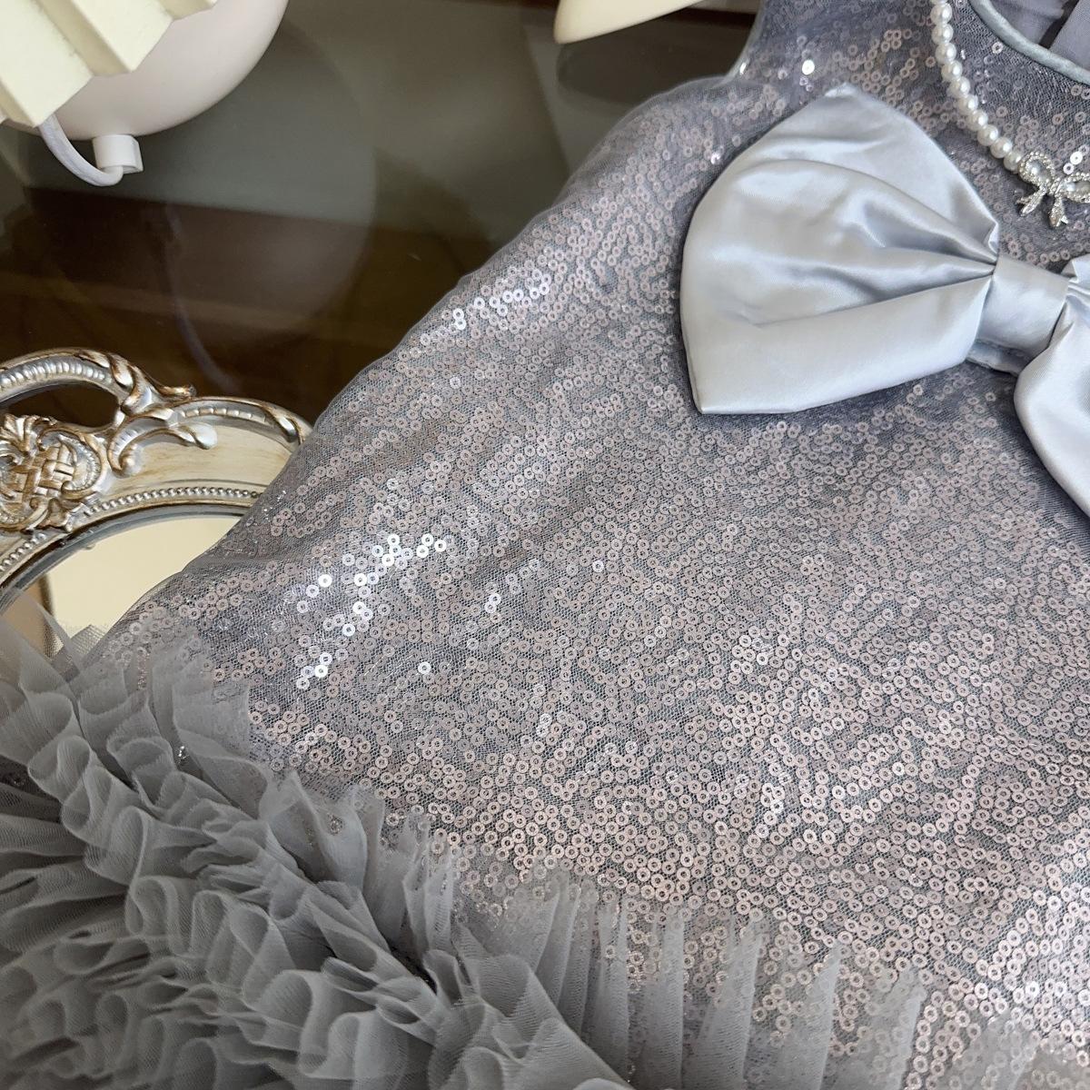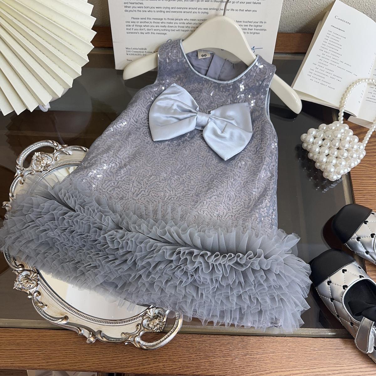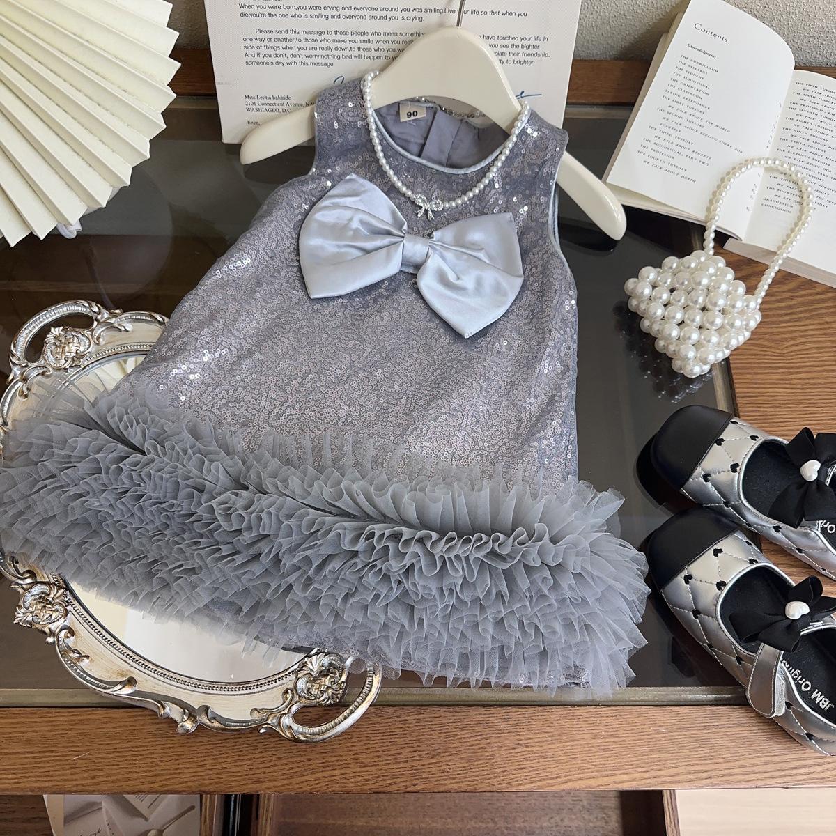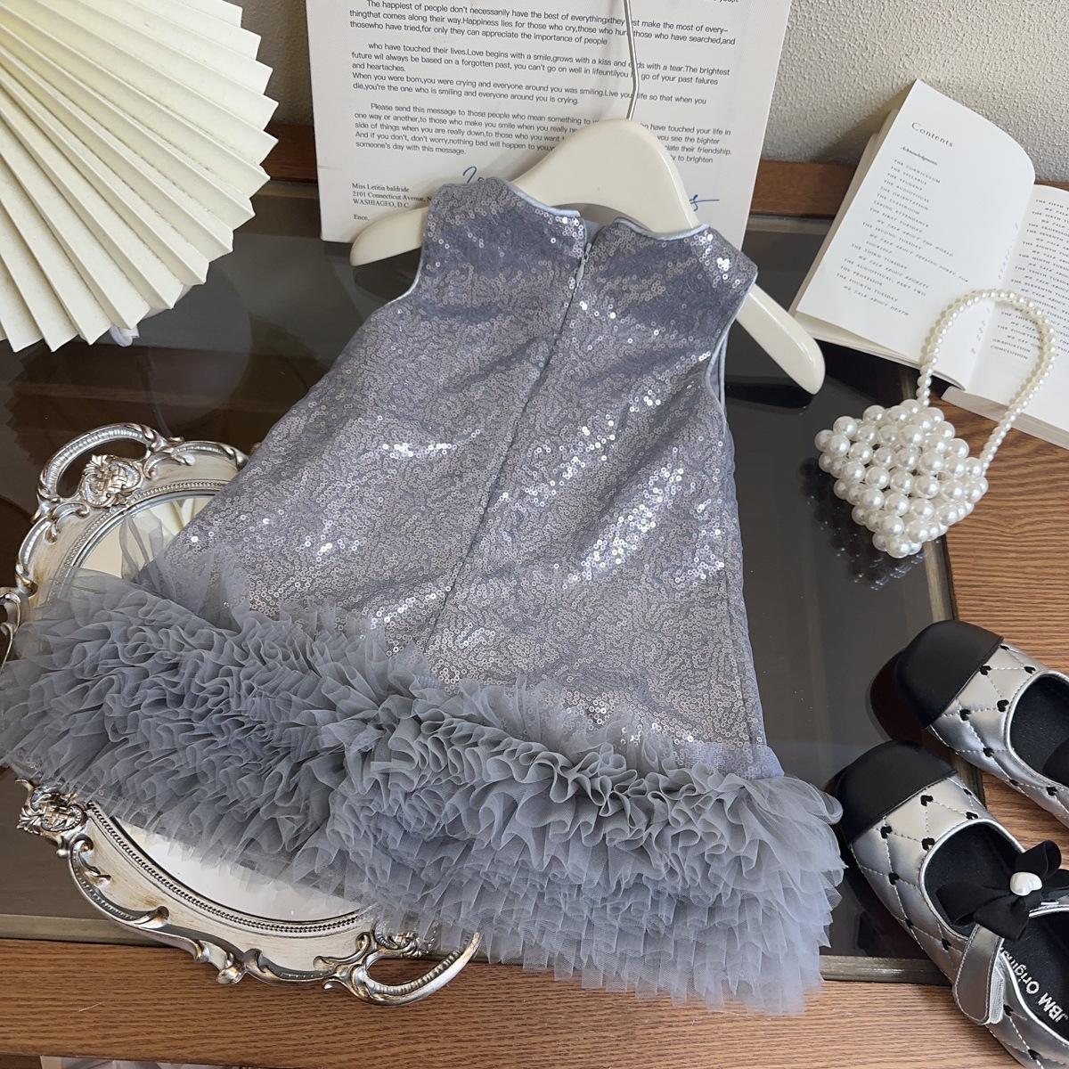 Vestido de niña 2025 Verano Nuevo Vestido Princesa Vestido Lentejuelas Chaleco Infantil Vestido Cruzado Una Pieza Cabello