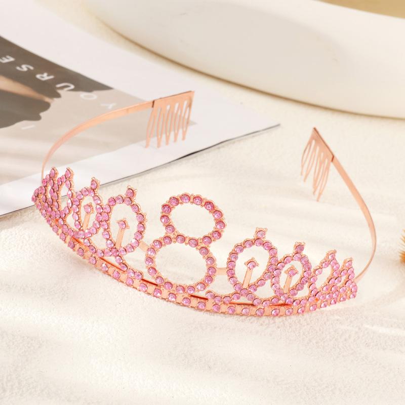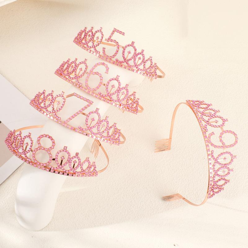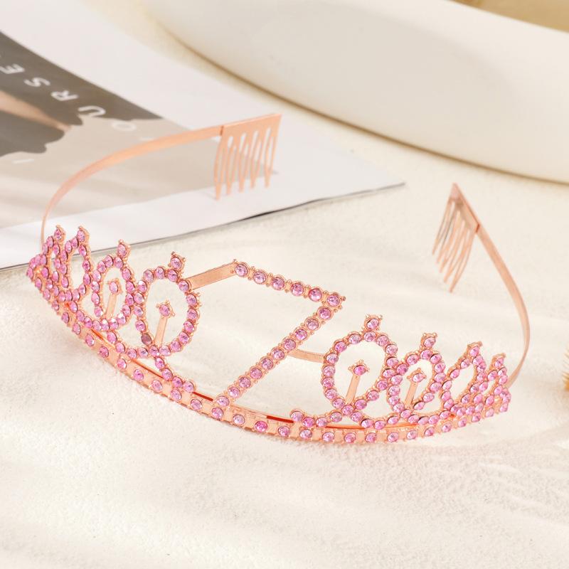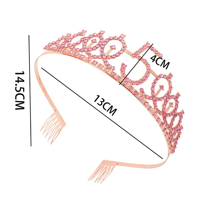 Decoración de Fiesta de Cumpleaños Transfronteriza Aleación Diamante Completo Exquisita Diadema de Corona Correa para el Hombro Etiqueta de Niña con Corona Venta al por Mayor