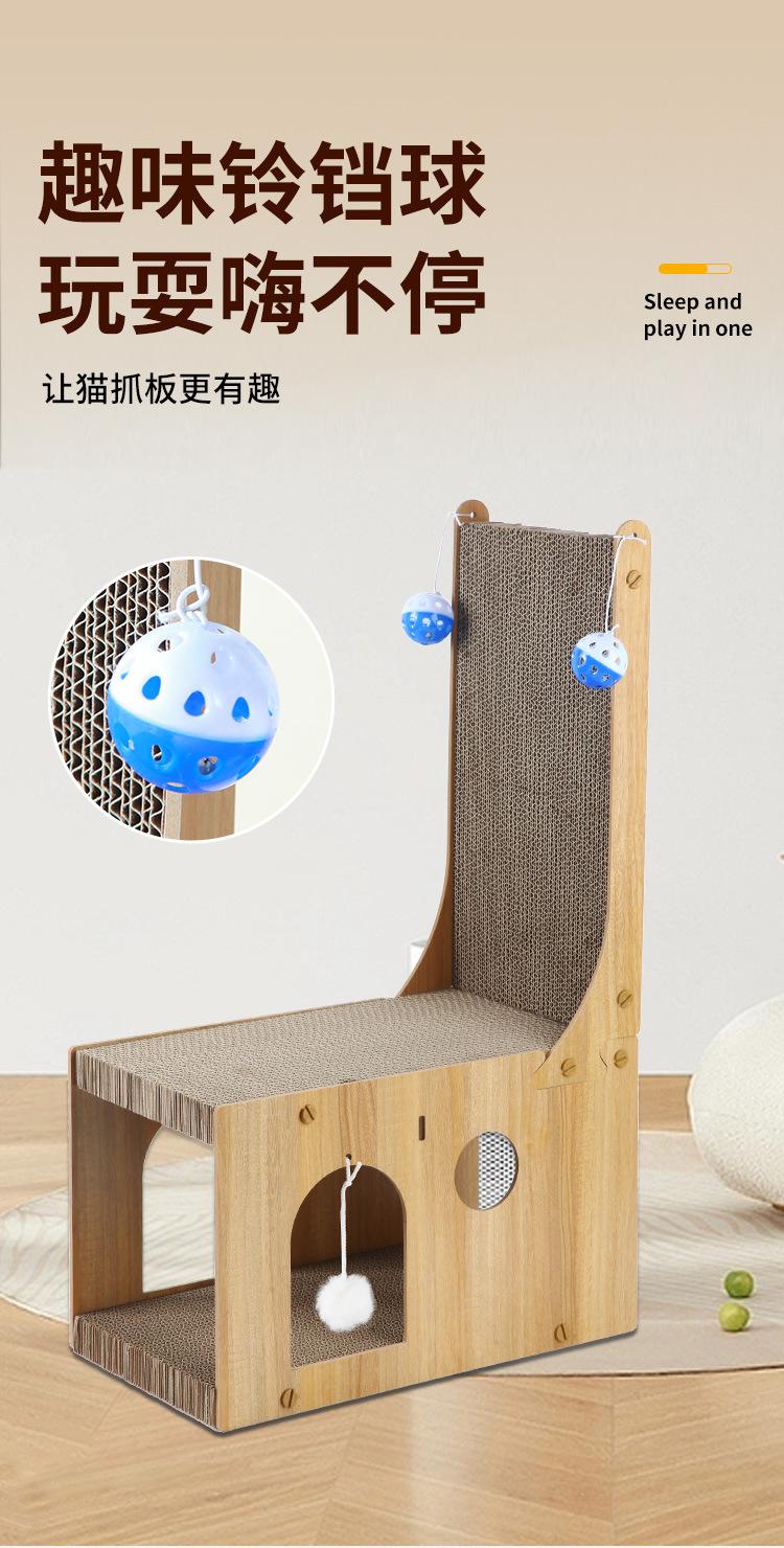 Rascador para gatos en forma de silla en forma de L con campana, juguete de peluche para gatos, desmontable, afilado de garras de gato, exclusivo transfronterizo para gatos domésticos