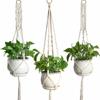 Bolsa de red para macetas sencillas, hecha de cuerda de cáñamo, cesta colgante para plantas verdes, estilo bohemio, tejida a mano con cuerda de algodón.