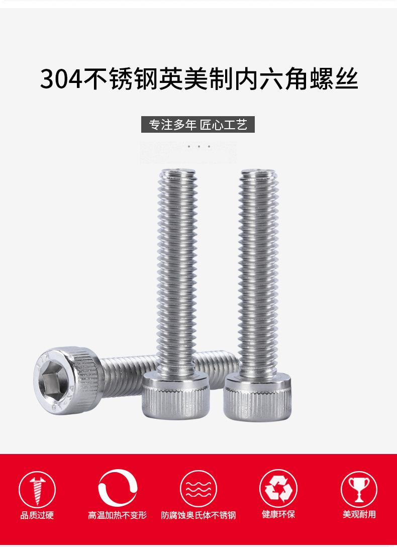 3/8 5/16 1/4 10#-32 Dientes Acero Inoxidable 304 Cabeza Cilíndrica US Tornillo de Cabeza Hexagonal Dientes Finos Imperial