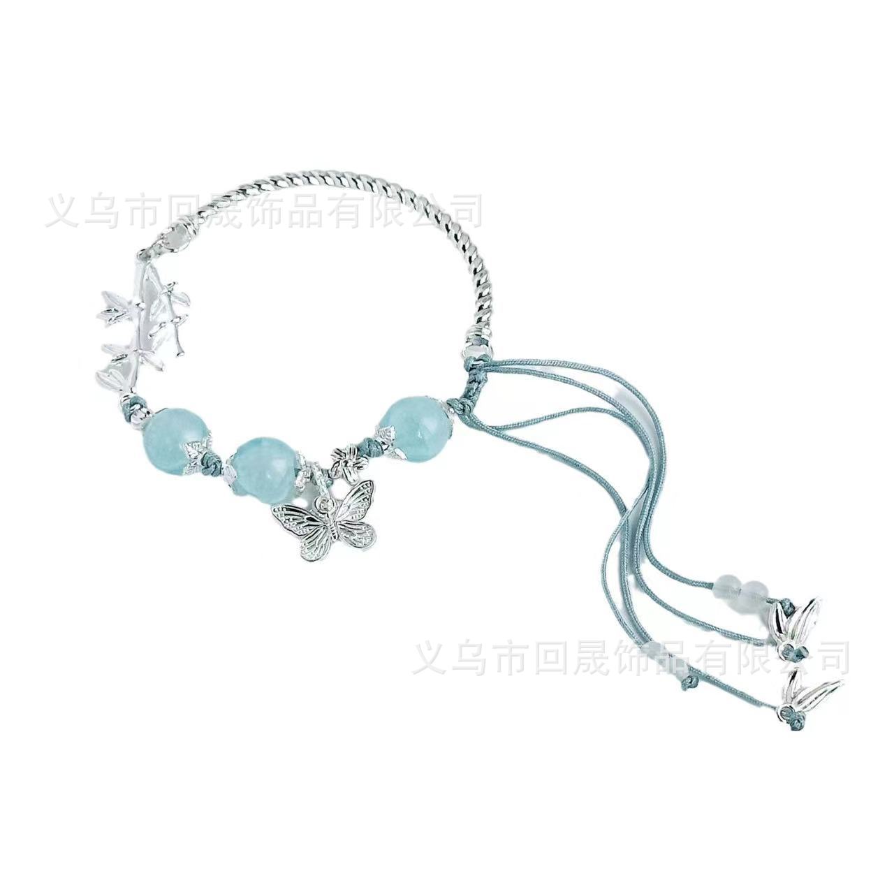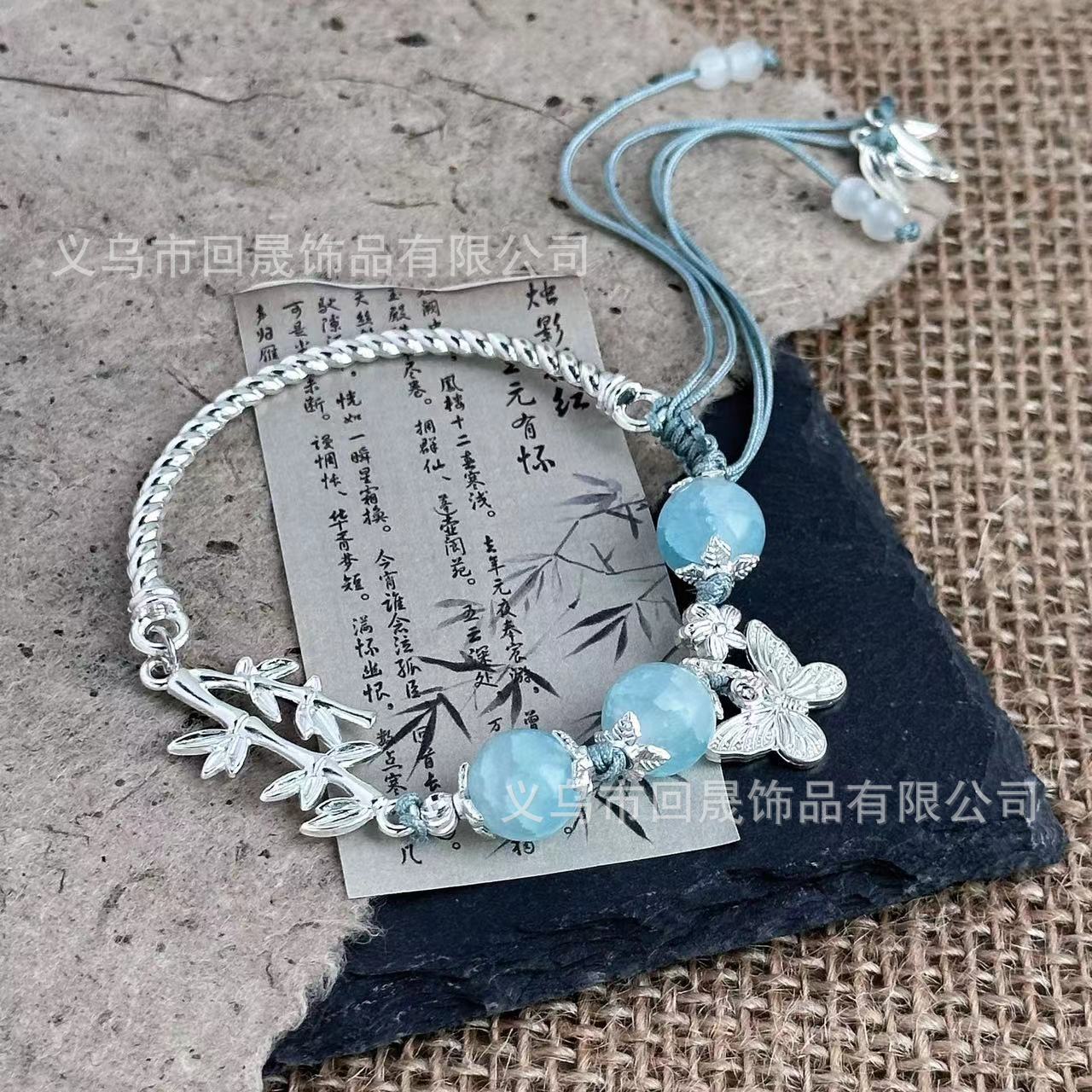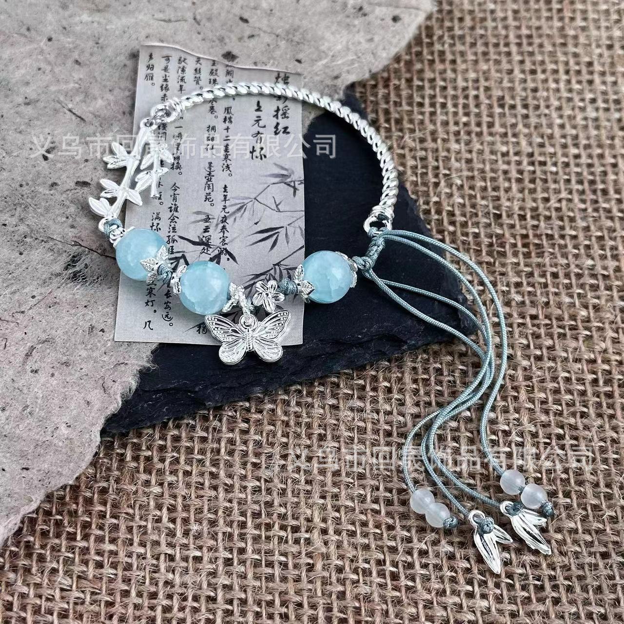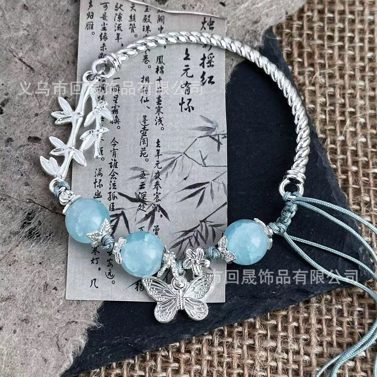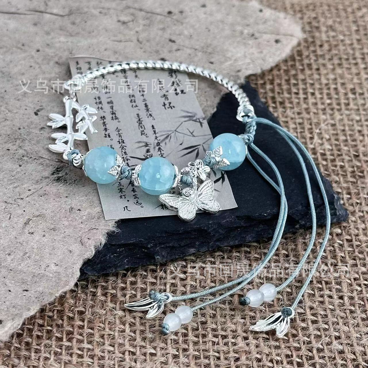 "Pluma de Mariposa Qingmeng" Azul Media Pulsera Pulsera de Cuerda de Mariposa Estilo Nacional Cuerda de Mano de Alta Gama Diseño Nicho Pulsera China