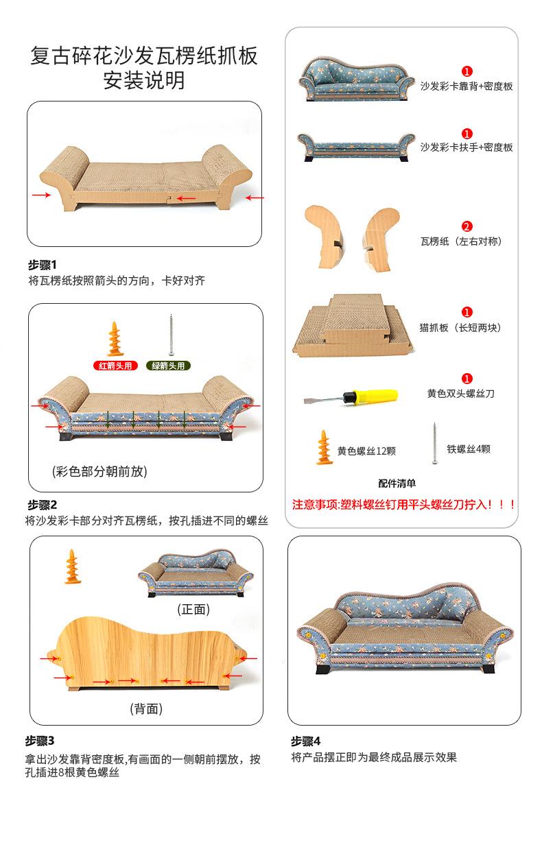 Tabla Rascadora para Gatos Sofá para Gatos Sin Rasguños Chaise Silla Cama Nido para Gatos Sofá Anti-Arañazos para Gatos Rascador Vertical Juguete para Gatos