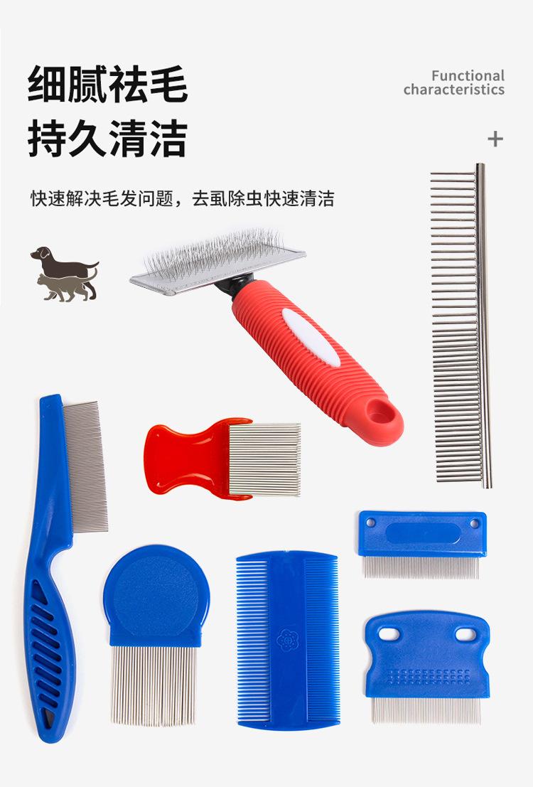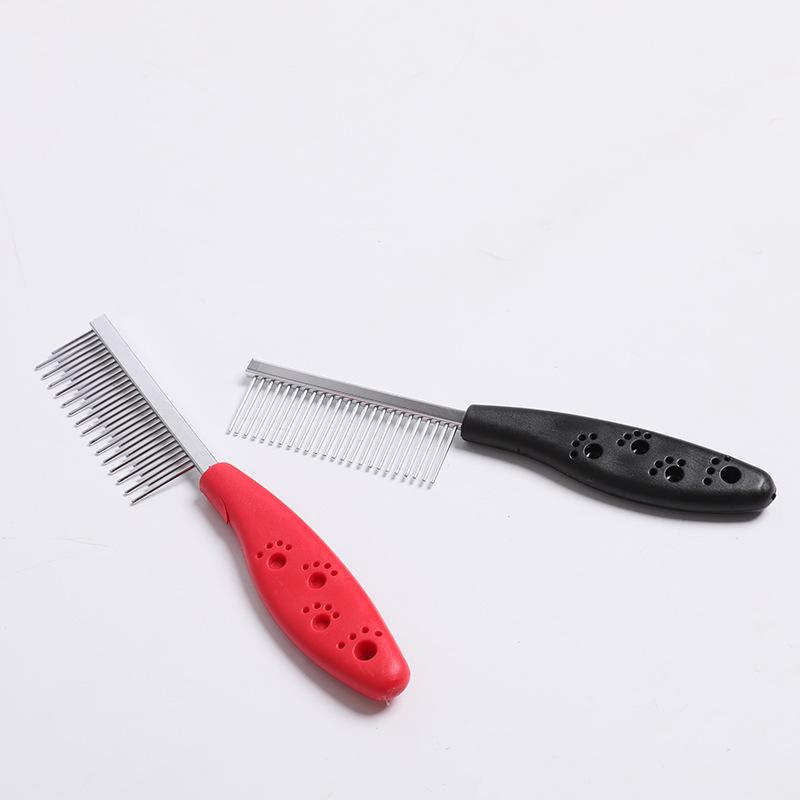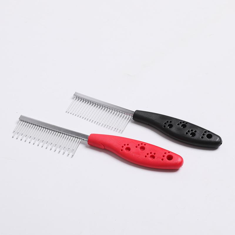 Peine para mascotas al por mayor de fábrica, con mango de plástico, de acero inoxidable, para depilación de gatos y perros, para limpieza de mascotas, de belleza, para perros.