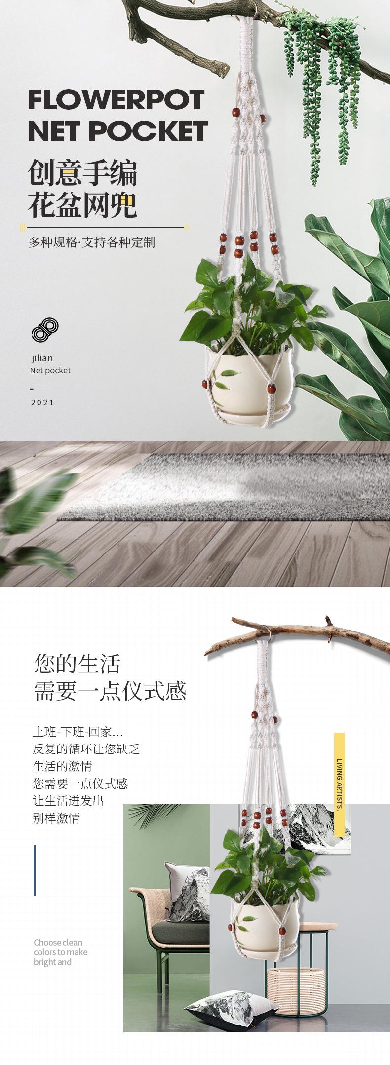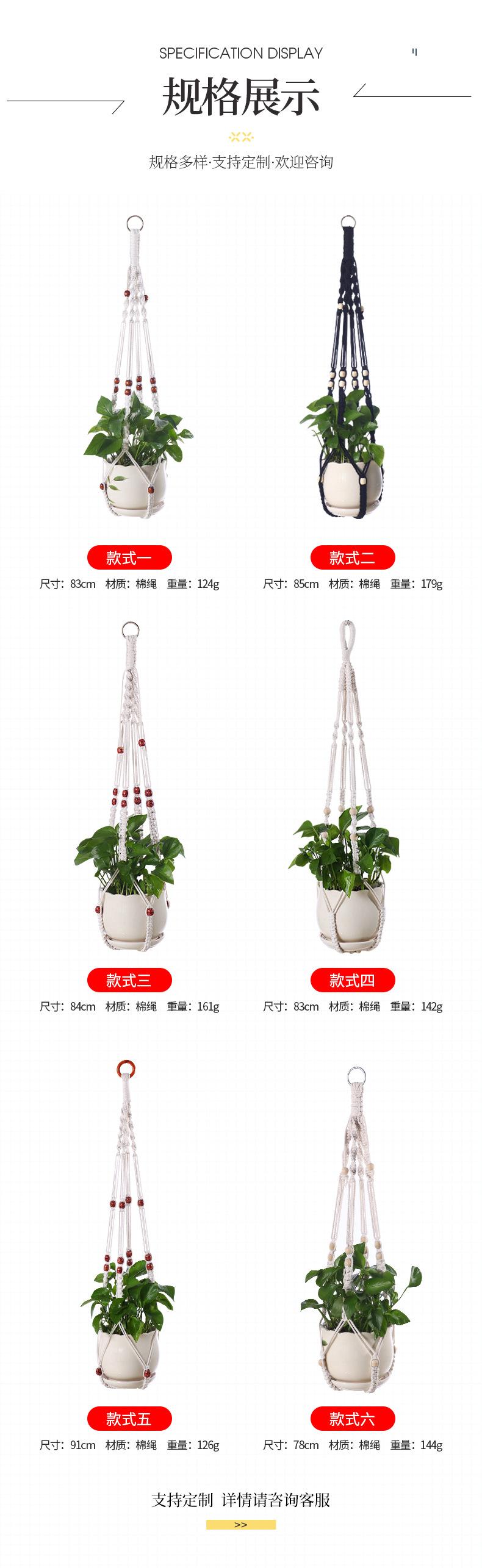 Venta al por Mayor del Fabricante Exportación Transfronteriza Bolsa de Red para Maceta Tejido de Cuerda de Algodón Hecho a Mano Cesta Colgante de Ratan para Plantas Verdes