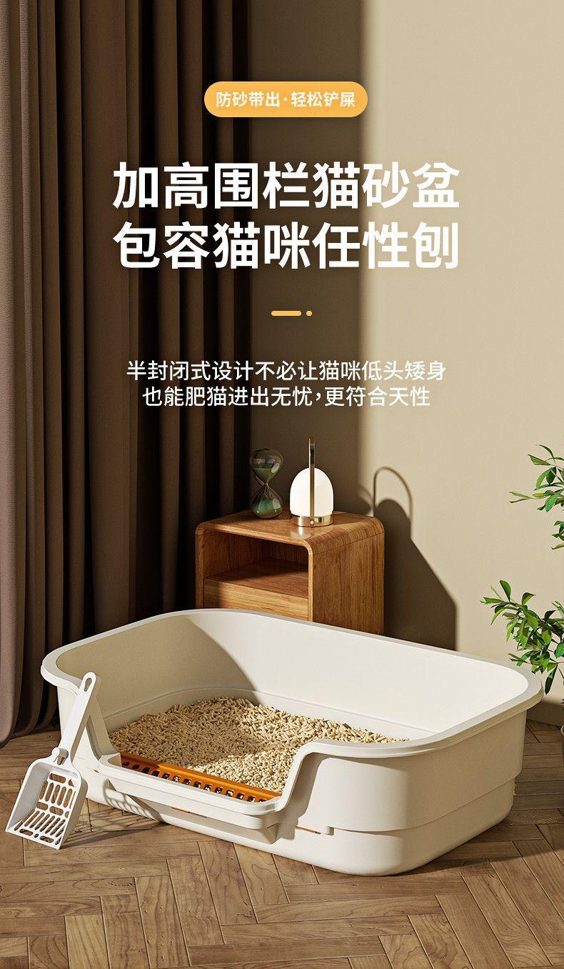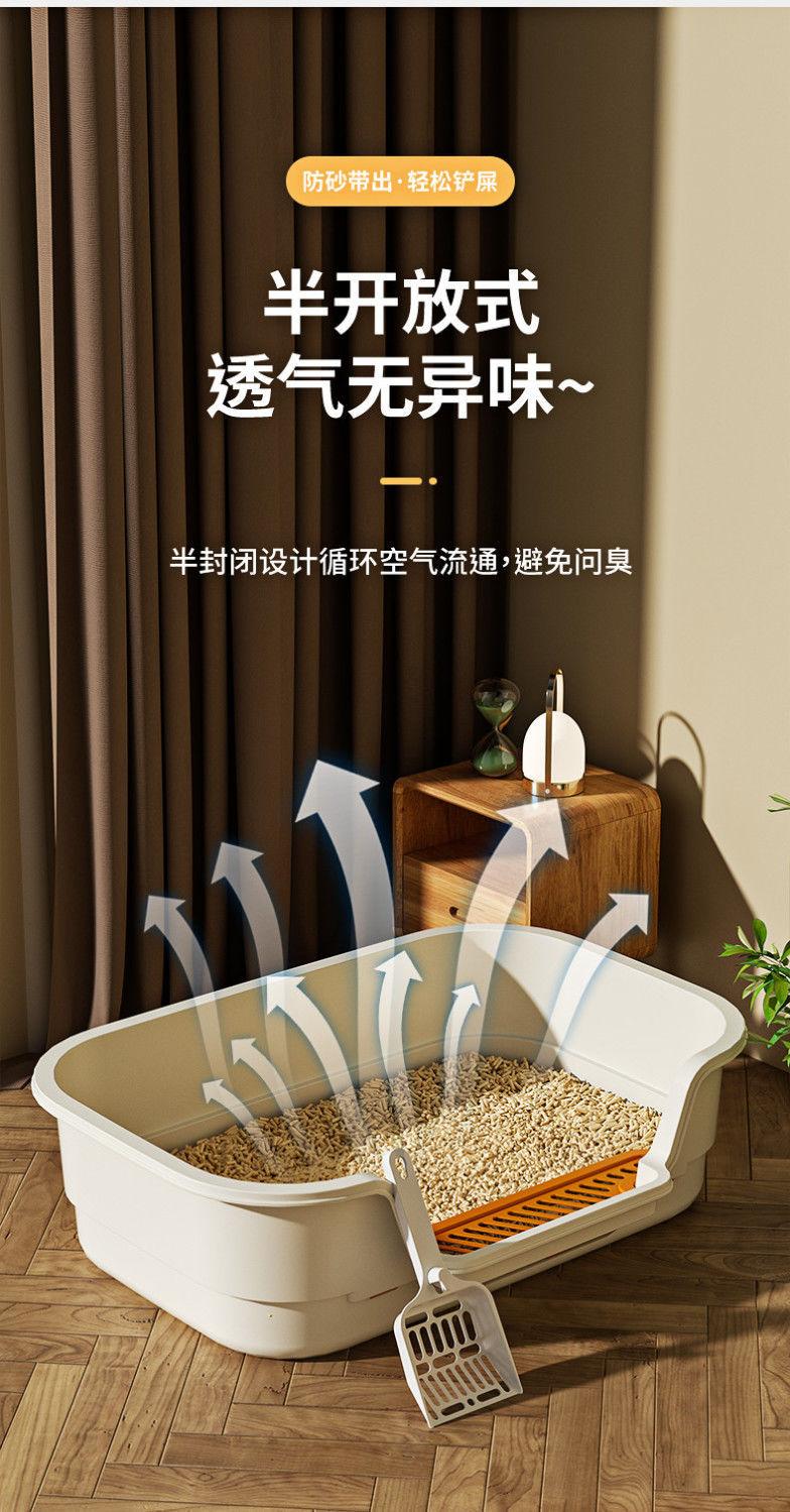 Caja de arena para gatos semi-cerrada abierta transpirable sin olor inodoro para gatos espacio grande anti-salpicaduras caja de arena para gatos