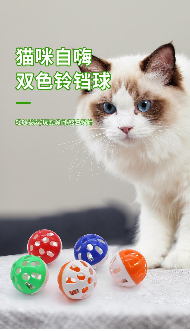 Juguete para Gato Autoconsuelo Bicolor Calado Pelota para Gato Juguete para Gato Campana de Plástico DIY Incorporada Suministros para Gato