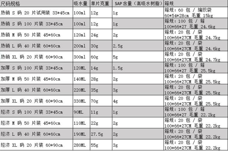 Si tiene requisitos de grosor o absorbencia, no se recomienda comprar la versión económica (versión delgada)