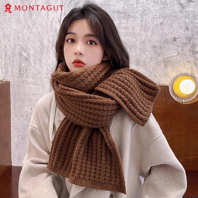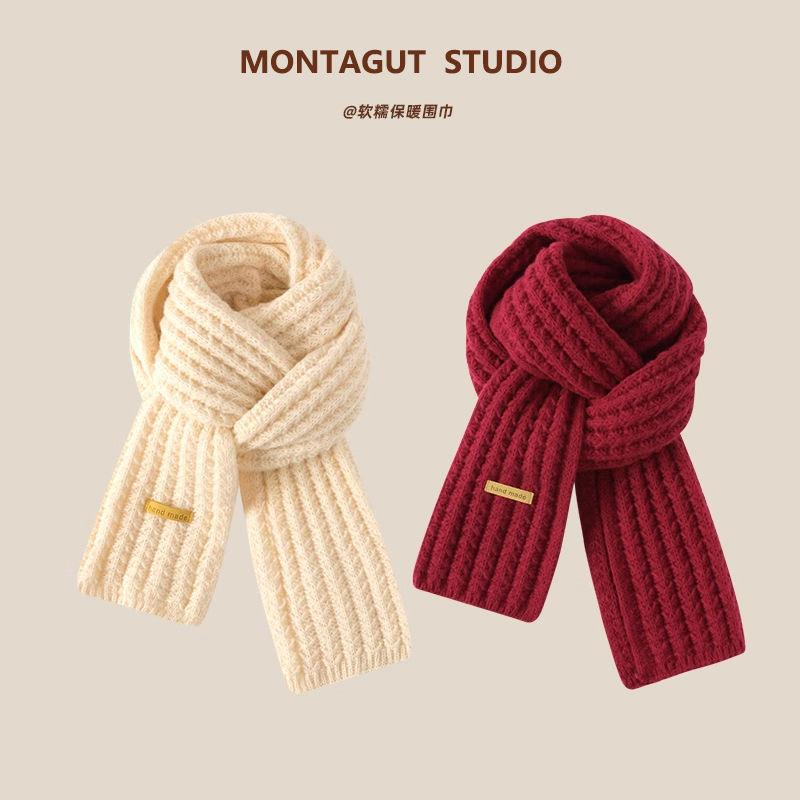 Bufanda Roja de Lana Tejida Versátil Estilo Coreano para Mujer 2023 Nueva Invierno Sentido Avanzado Chal de Estudiante Bufanda Cálida