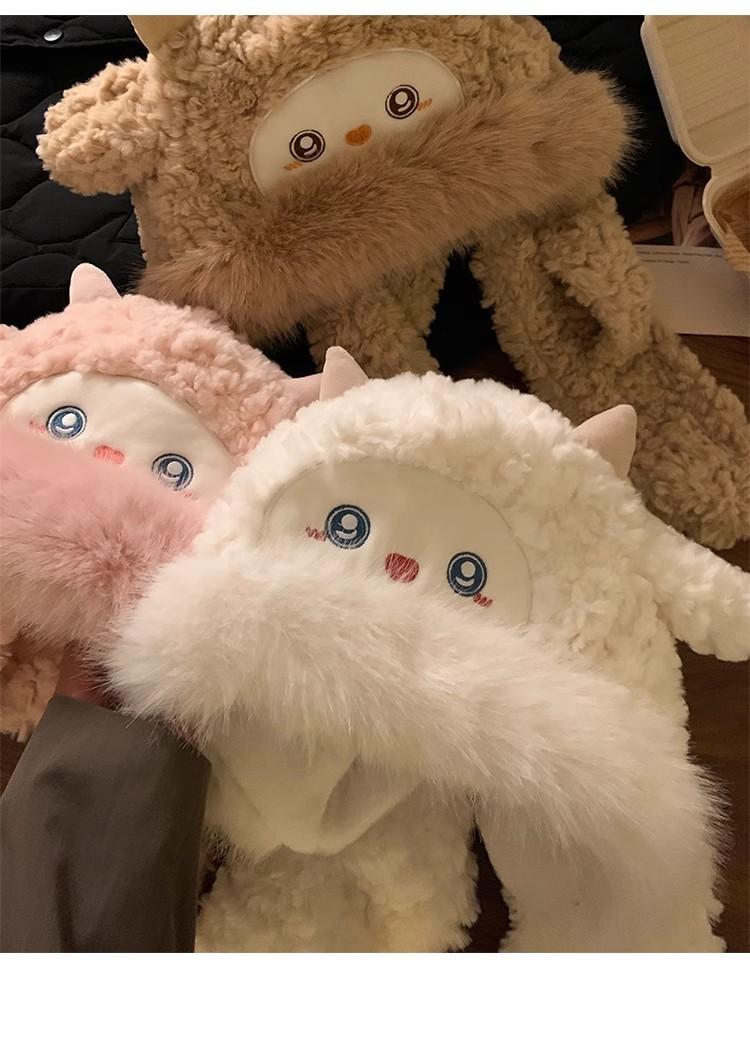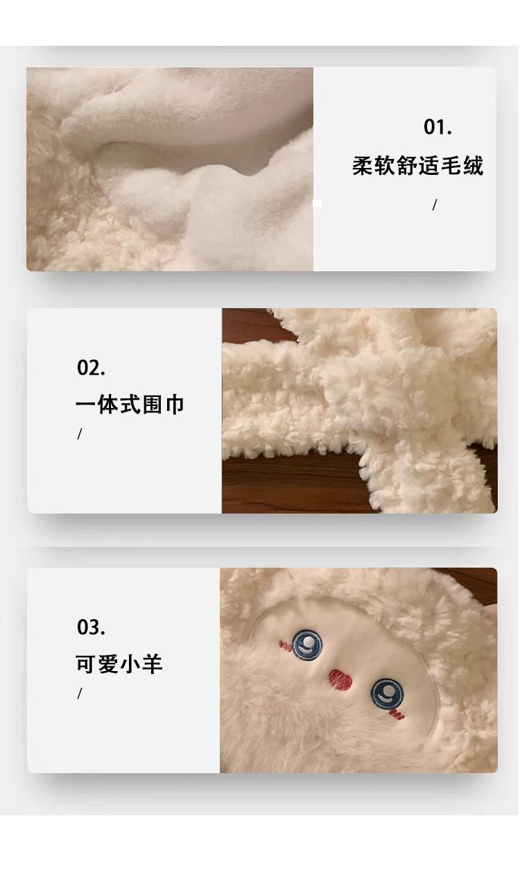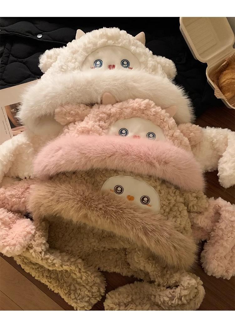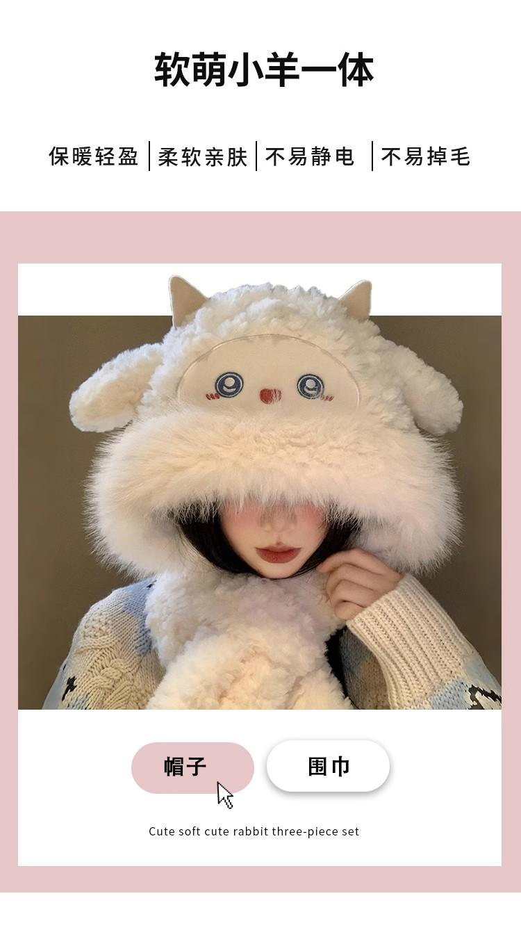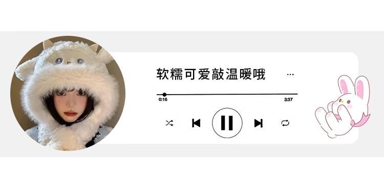 Gorro de oveja esponjoso para mujer, bonito gorro de invierno, cálido, resistente al frío, bufanda de una pieza, grueso, con protección para las orejas, gorro Lei Feng.