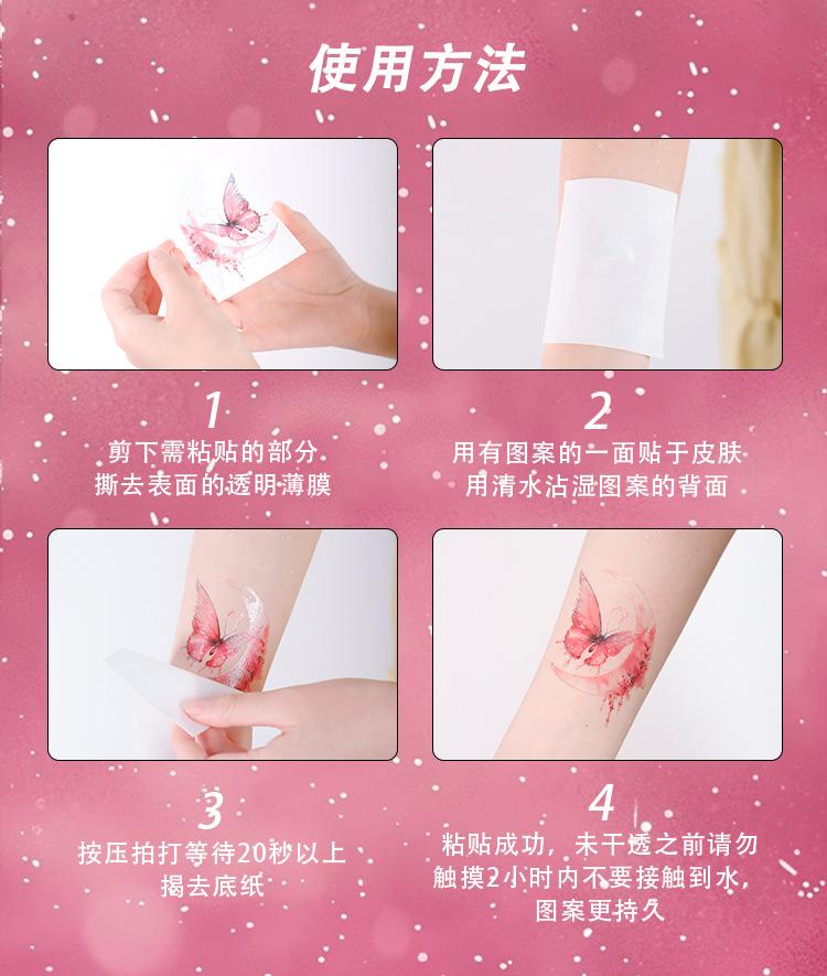 Tatuaje Adhesivo de Color Fresco Pequeño para Mujer Impermeable Larga Duración Hermoso Personalidad Mariposa Flor Alto Valor Brazo Muñeca Lavable