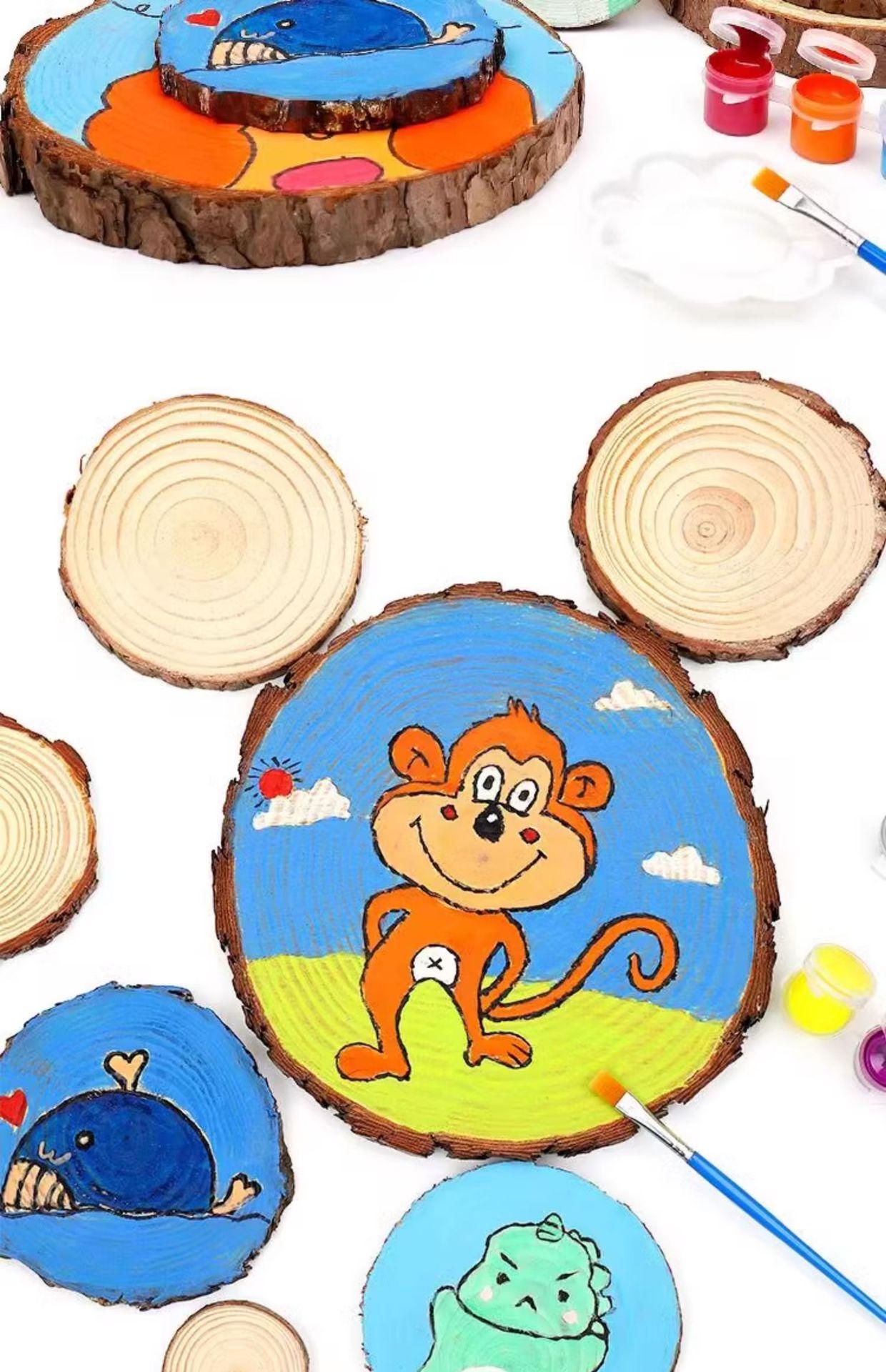 Compra Piezas redondas de madera, material para pintar a mano, piezas de madera originales hechas a mano, piezas de madera, decoración de jardín de infantes, pequeñas pilas de madera, anillos anuales, piezas de madera al por mayor en Joom.pro