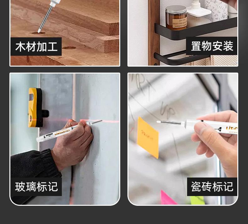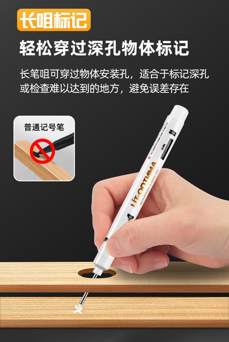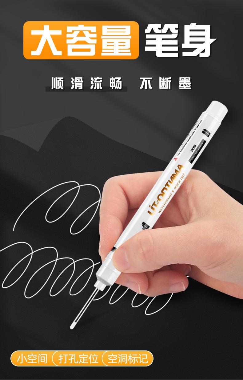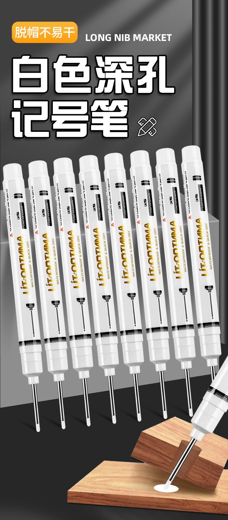 Rotulador de cabeza larga con orificio profundo blanco, especial para carpintería, resistente al agua, con aceite, para herrajes, accesorios de baño multiusos.
