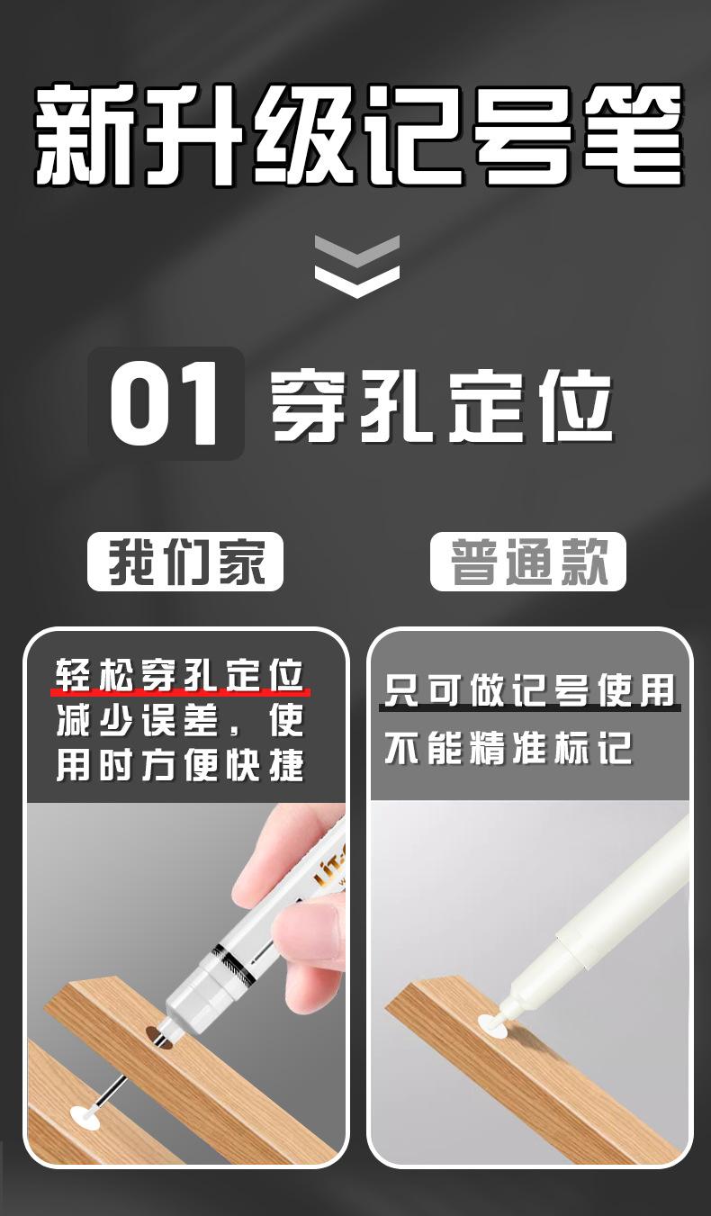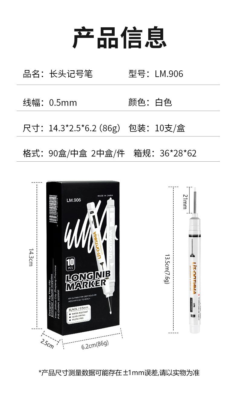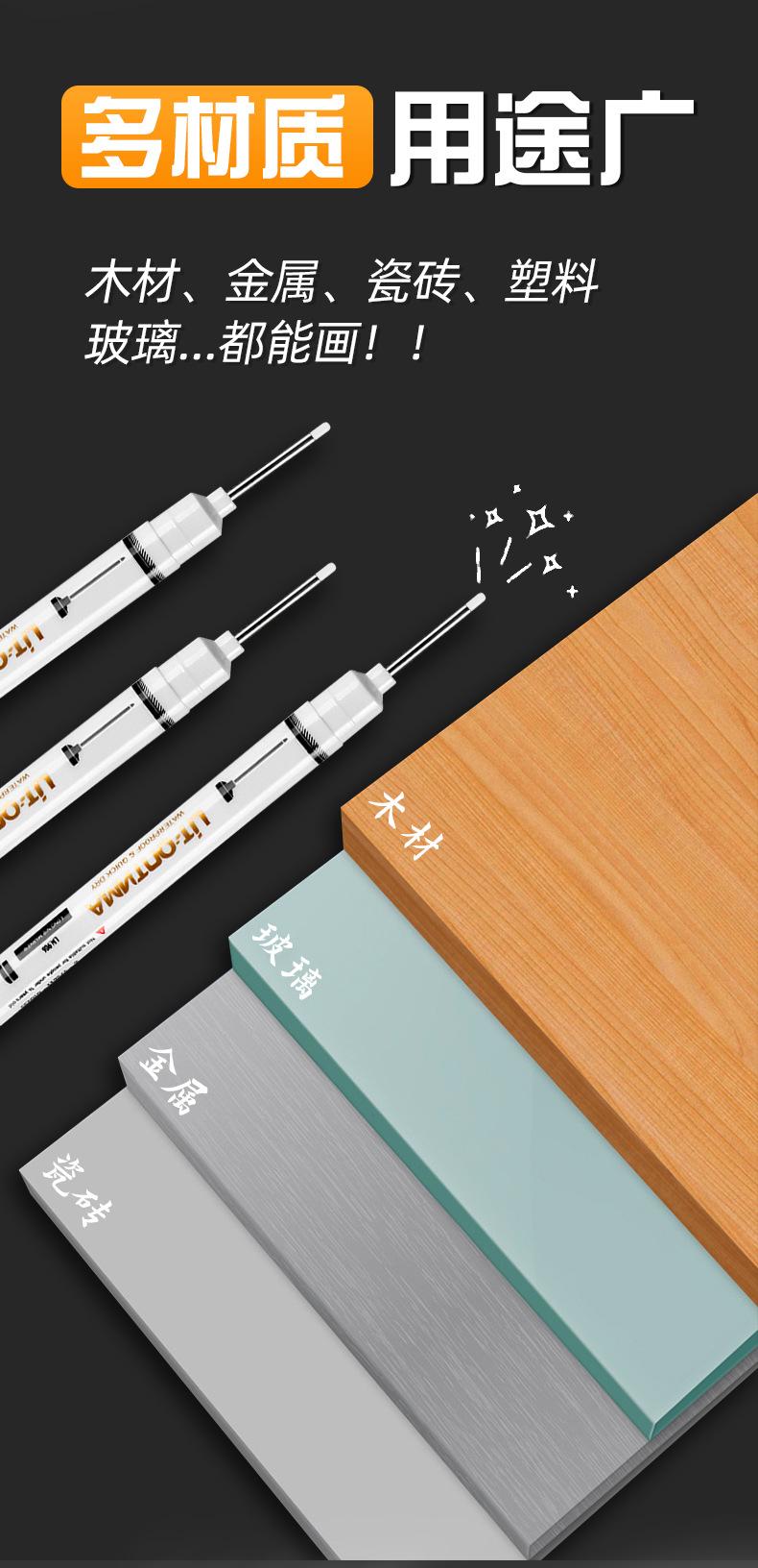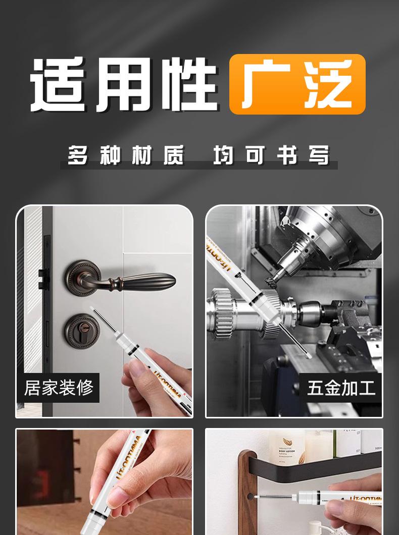 Rotulador de cabeza larga con orificio profundo blanco, especial para carpintería, resistente al agua, con aceite, para herrajes, accesorios de baño multiusos.