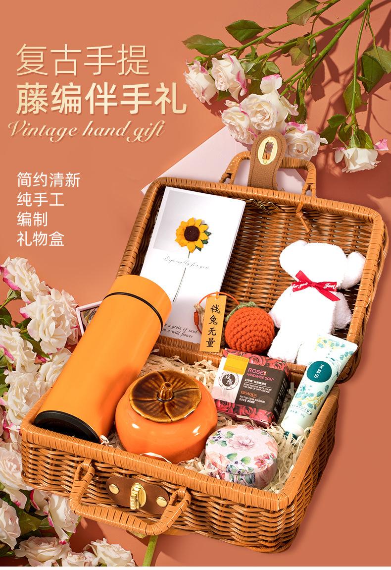 Set de Regalo Empresarial, Souvenir Creativo y Práctico, Caja de Regalo de Ratán, Regalo para Evento de Inauguración, Regalo con Logo Personalizado