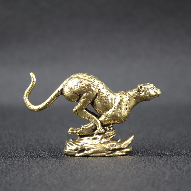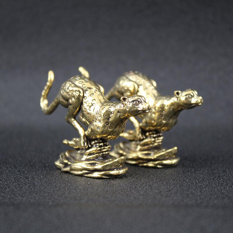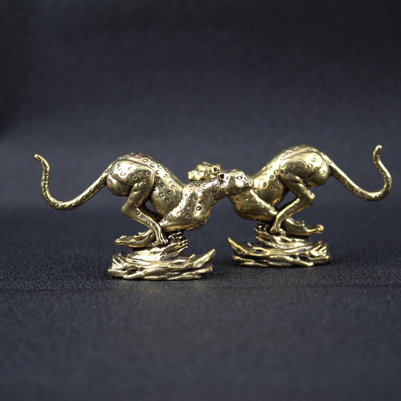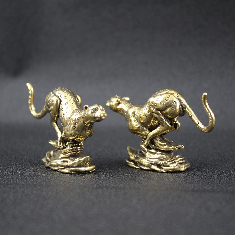 Adornos de leopardo antiguos de latón puro, adornos creativos de leopardo para escritorio de oficina en casa, artesanías de bronce al por mayor
