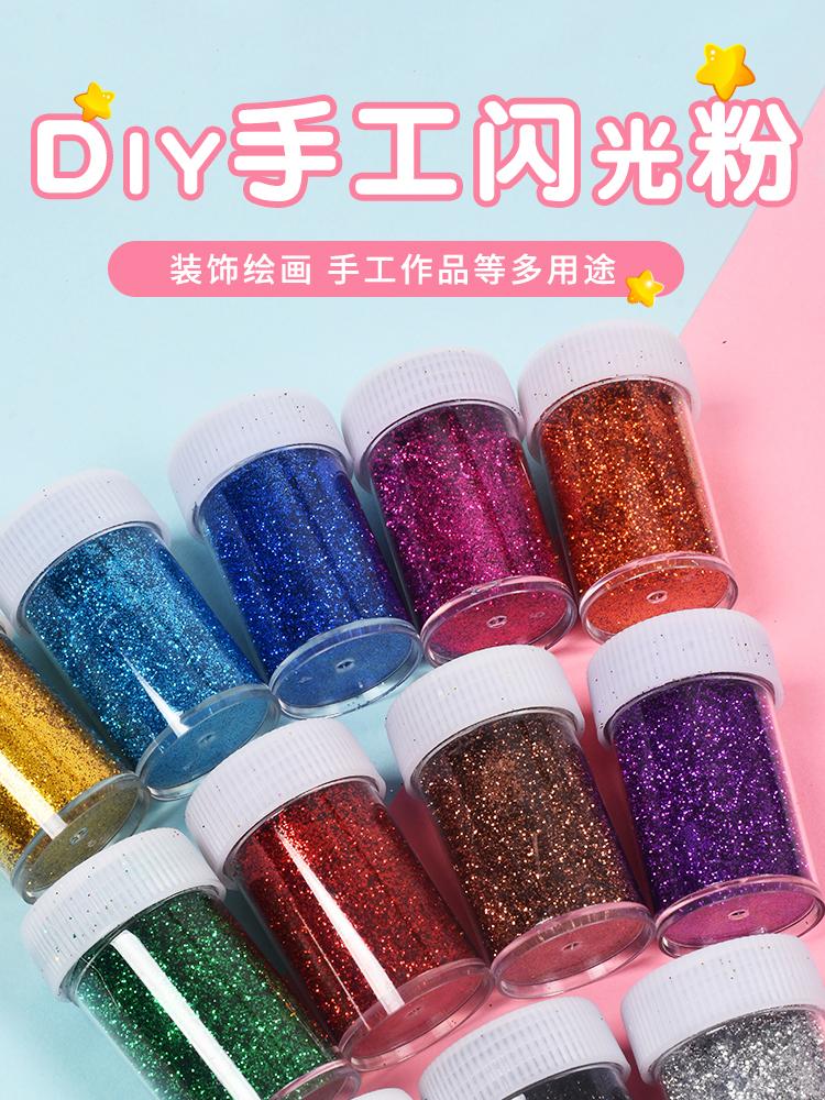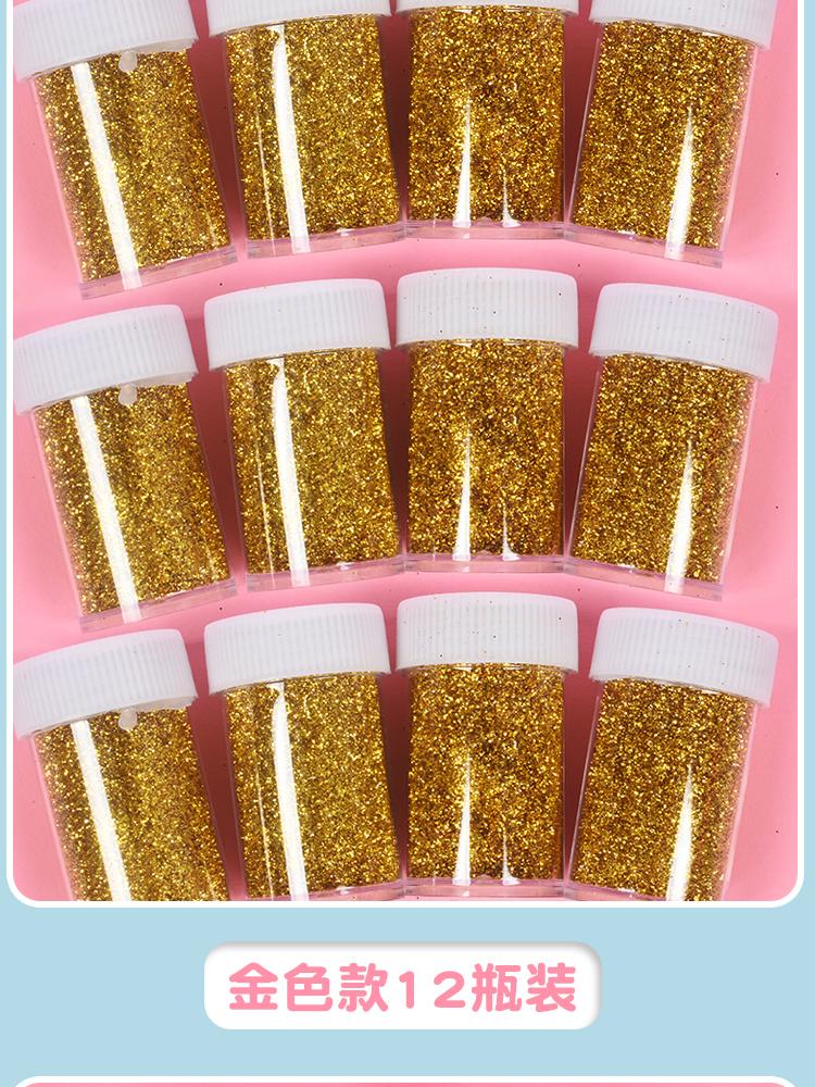 12 colors [laser color glitter powder] 1 bottle each, free glue + brush, A box of 12 bottles of golden glitter...