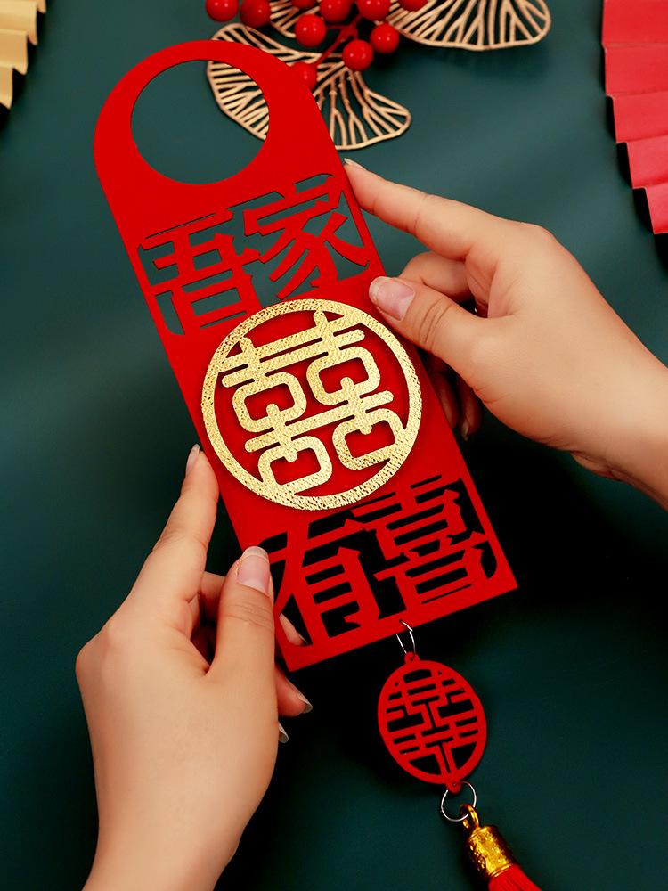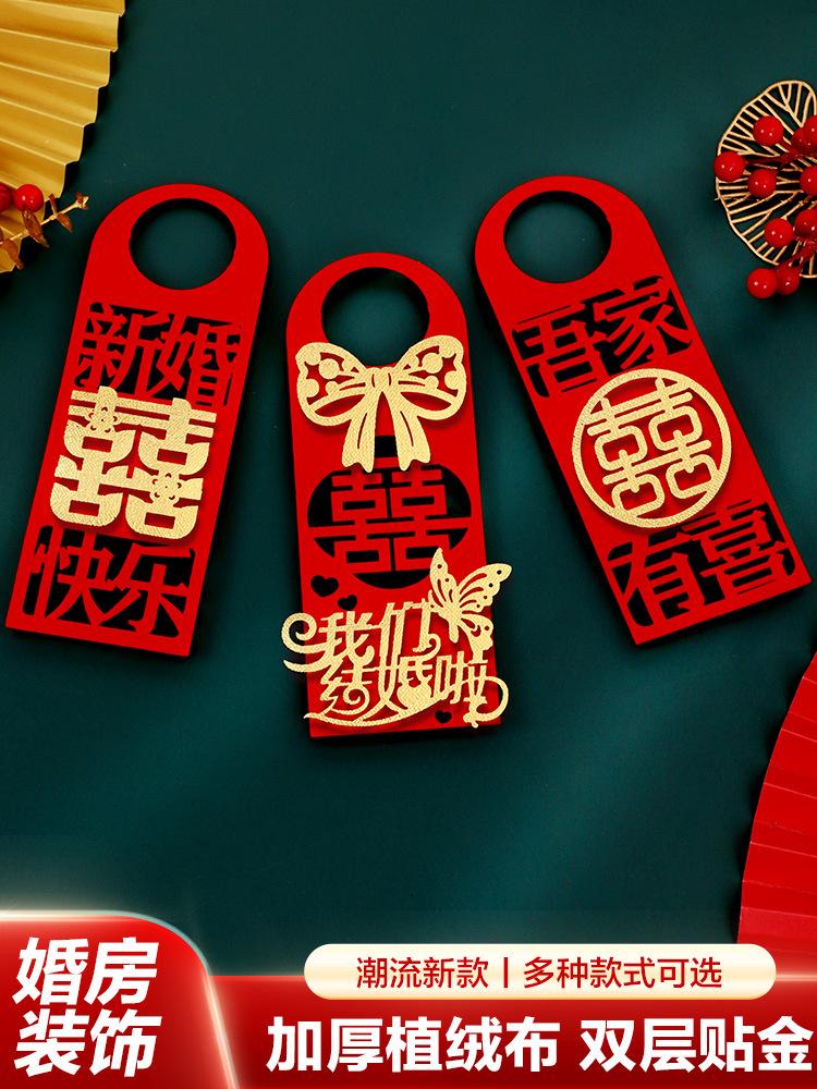 Manija de Puerta de Habitación de Boda Colgante Pequeño Suministros de Decoración de Boda Boda Estéreo Palabra Feliz Creativa Festiva Decoración Colgante para Manija de Puerta