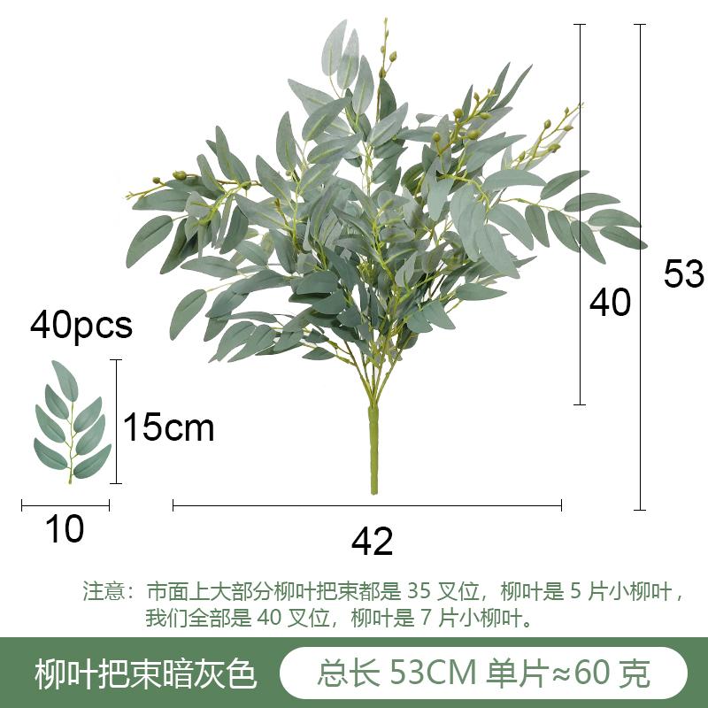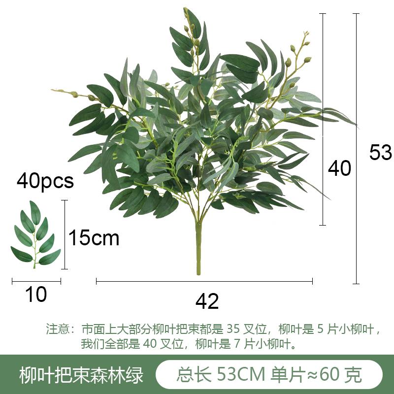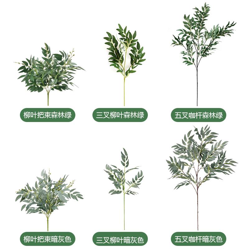 3 forks 77cm willow forest green, 3 forks 77cm willow leaves dark gray, 5-forked willow leaf bunch forest gree...