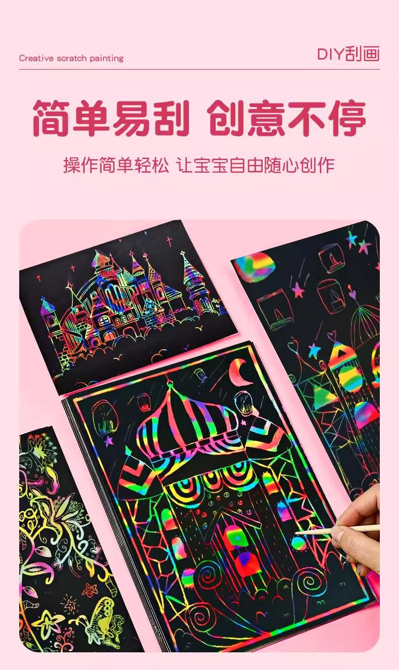Papel para Rascar Niños de 6 a 12 Años Papeles para Rascar Juguetes Hecho a Mano Creativo Pintura con Arena de Colores Patrones para Niñas