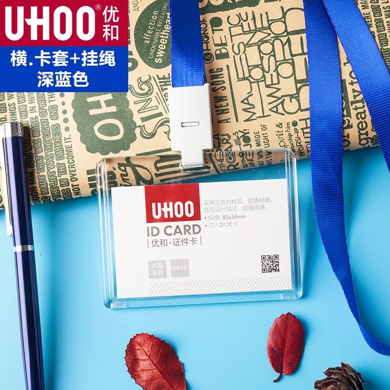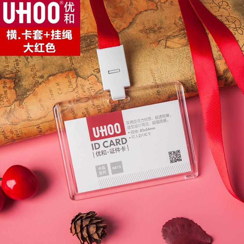 Youhe 6616 - Tarjeta de identificación de empleado de acrílico transparente para trabajo duro, tarjeta de acceso, juego de tarjetas con cordón