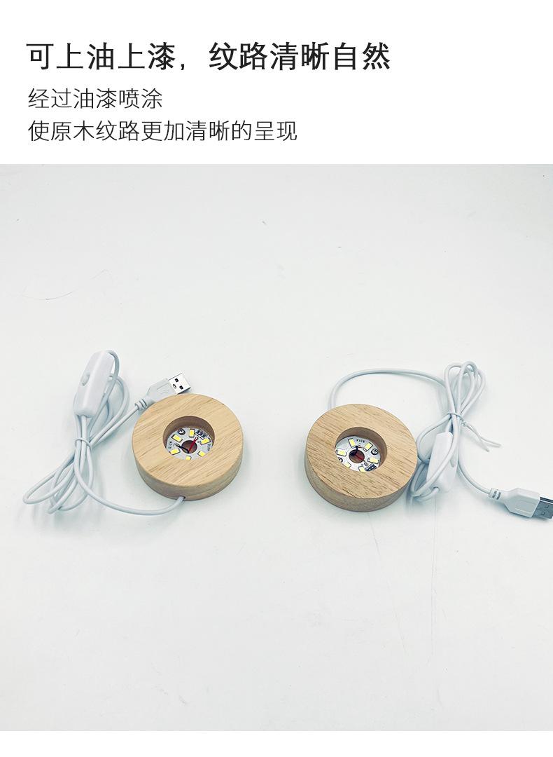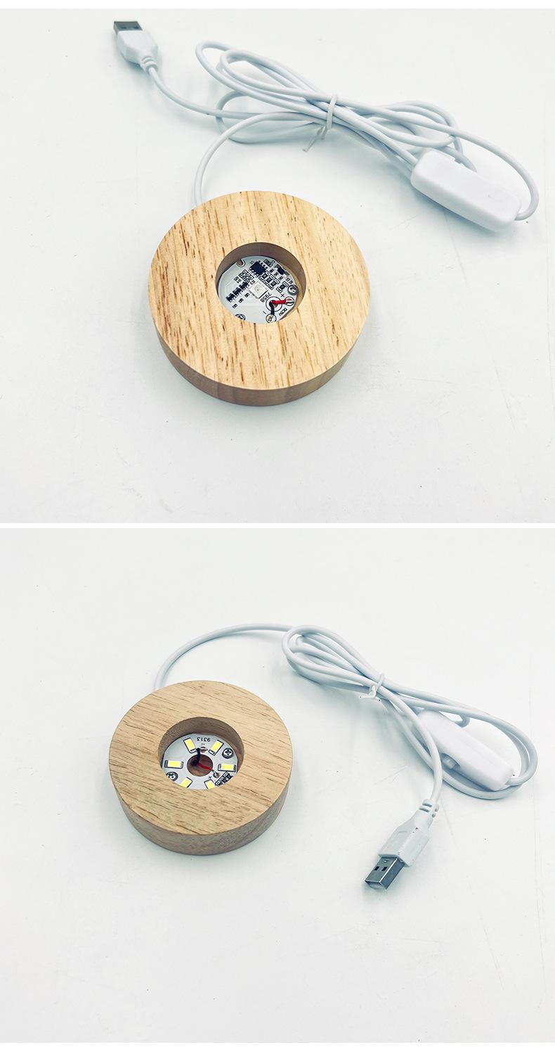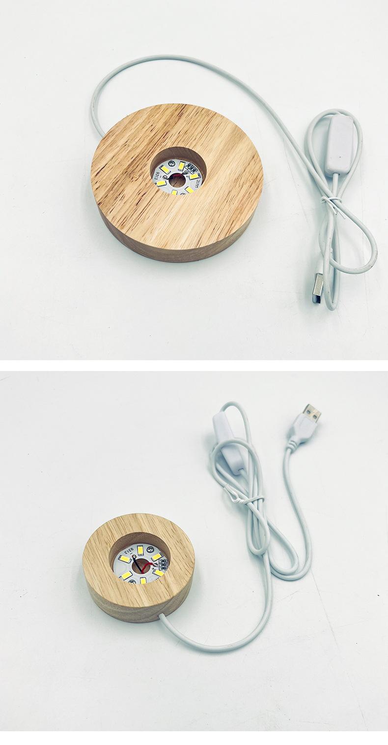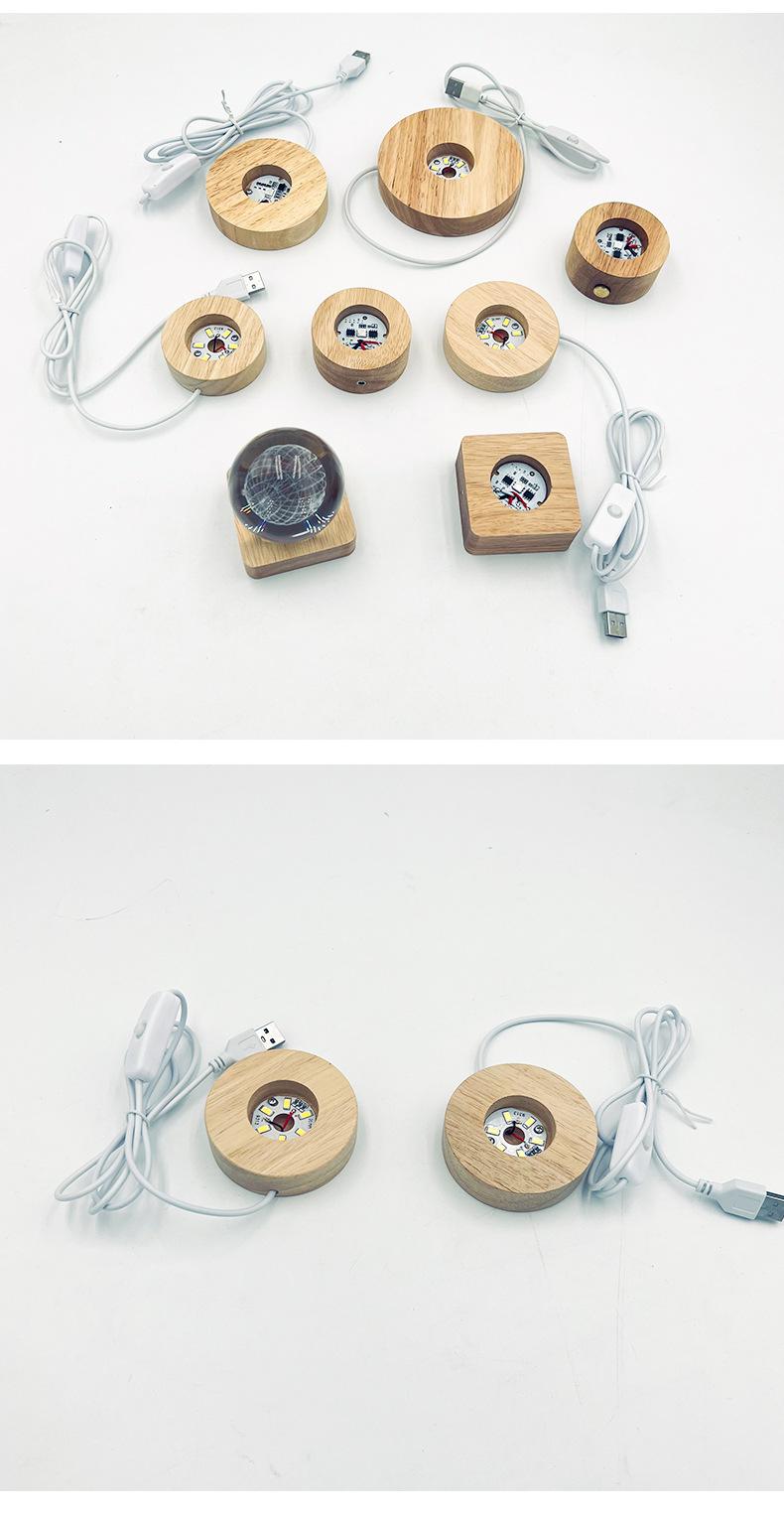 Base luminosa redonda cuadrada de madera maciza, luz de noche LED, bola de cristal, portalámparas de madera, artesanías, interruptor de interfaz USB