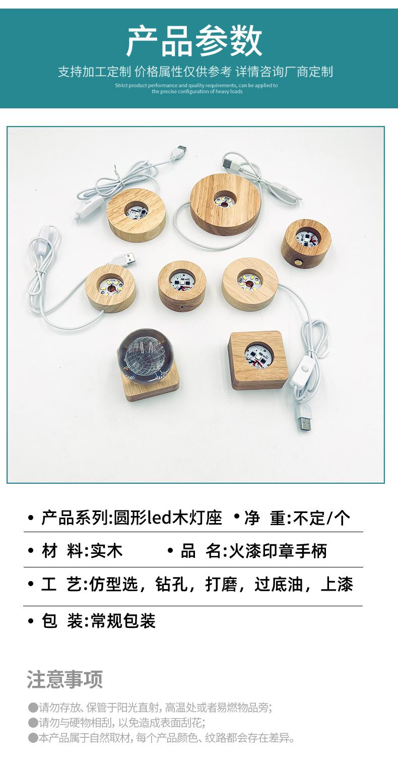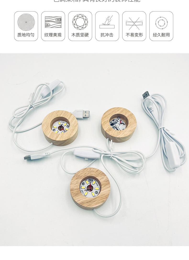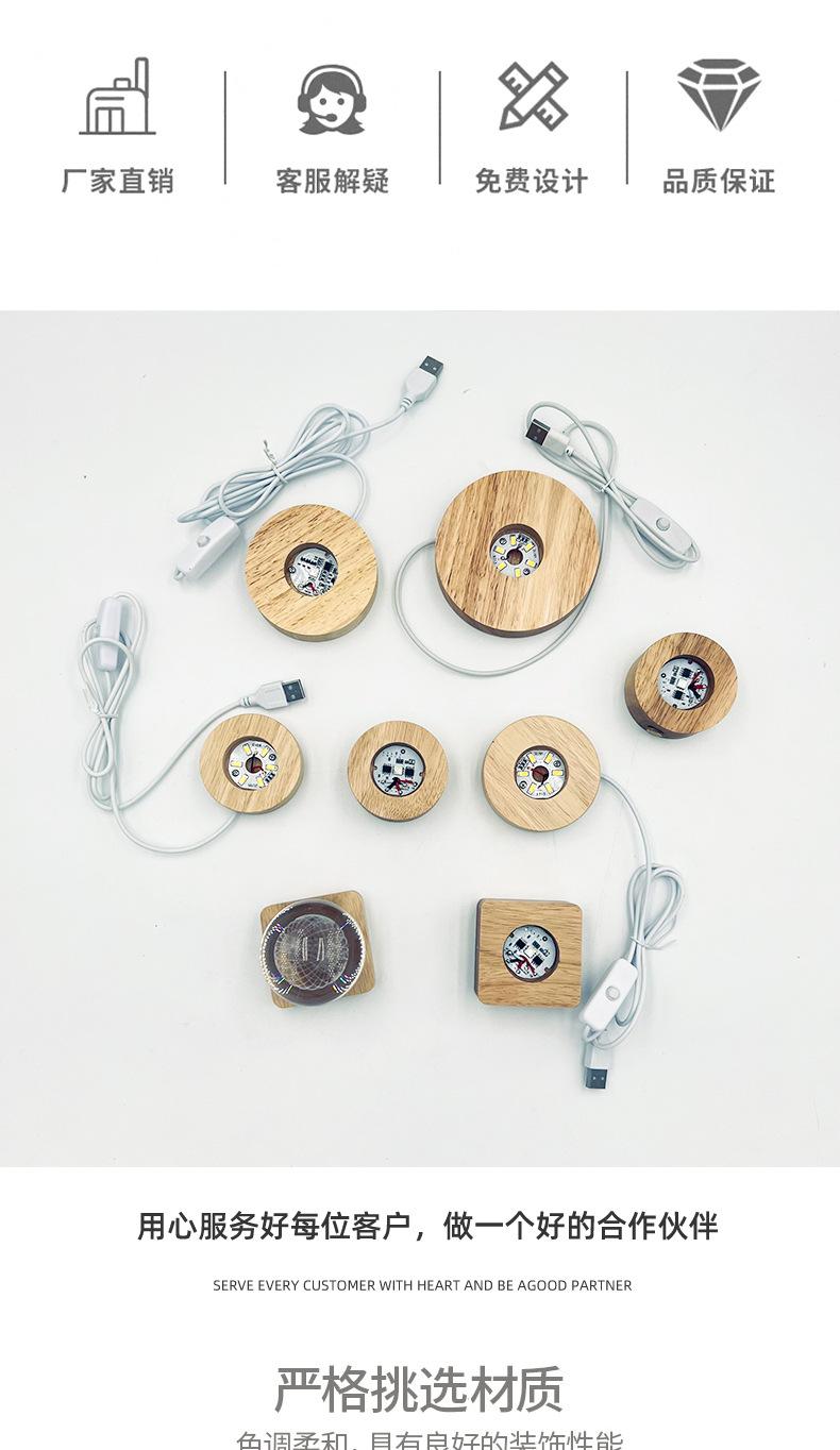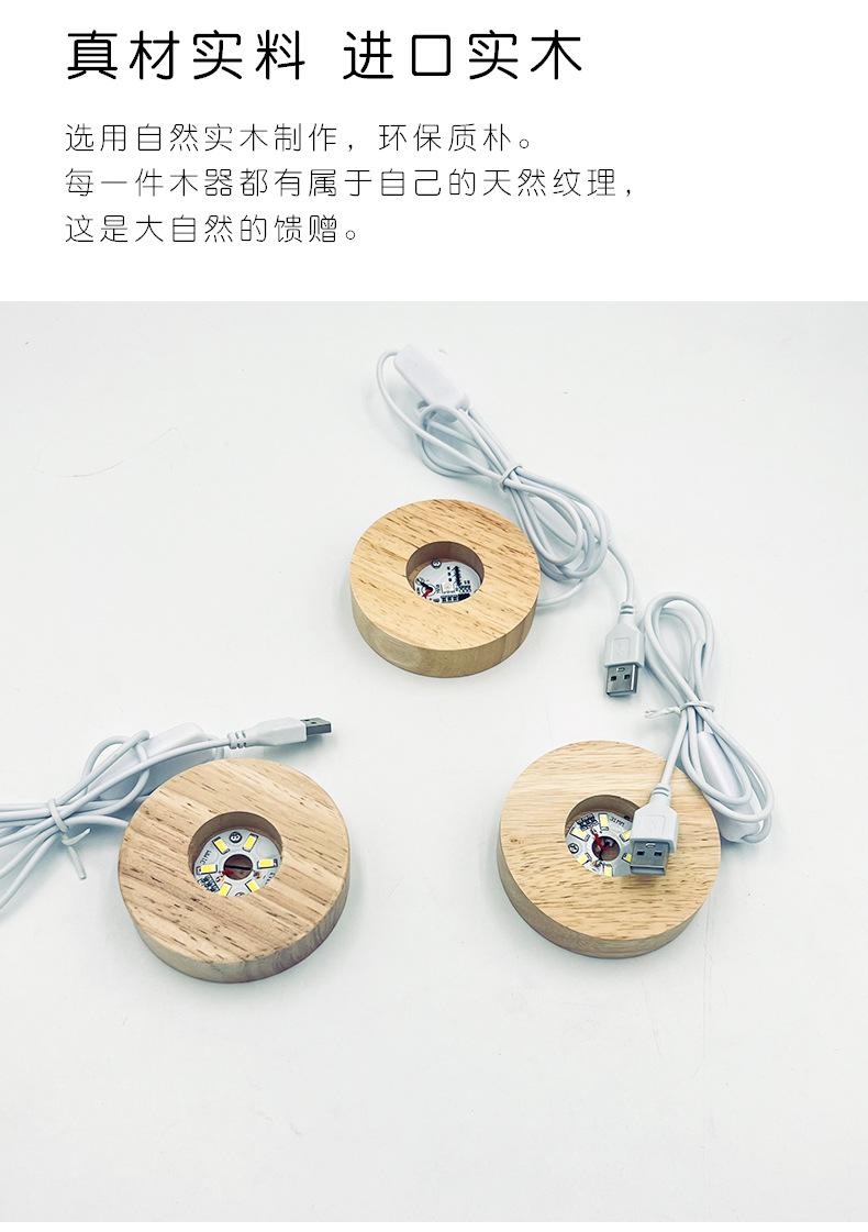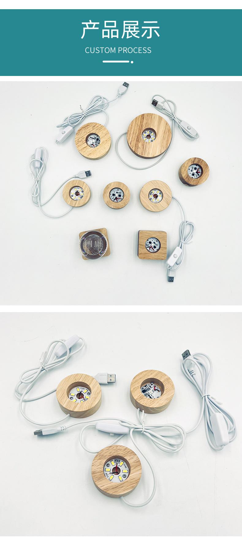 Base luminosa redonda cuadrada de madera maciza, luz de noche LED, bola de cristal, portalámparas de madera, artesanías, interruptor de interfaz USB